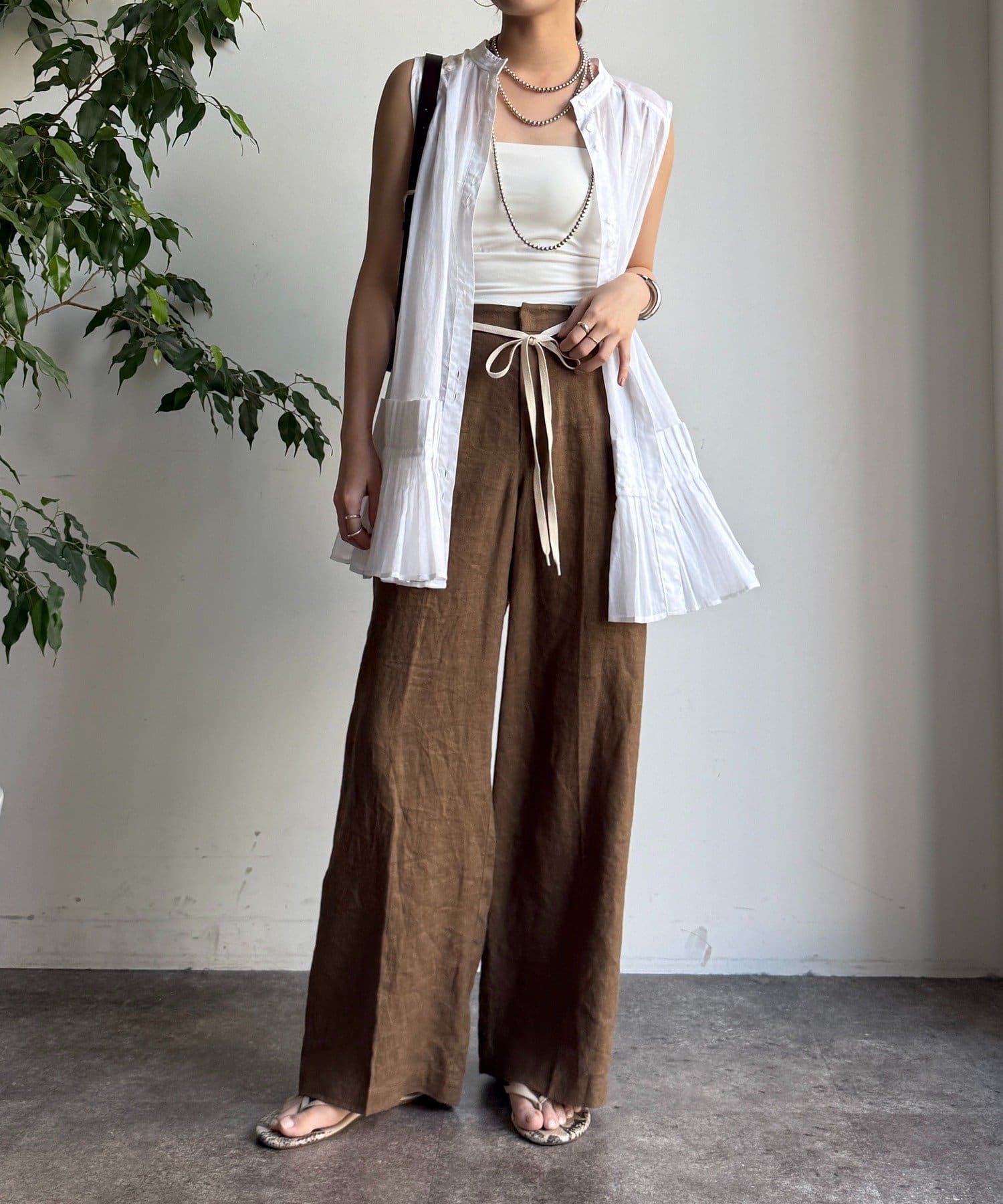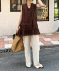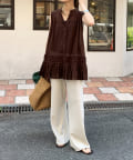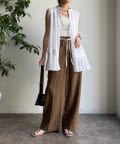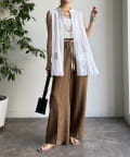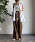腰回りやヒップの気になる部分もカバーしてくれるため、パンツスタイルにぴったり。