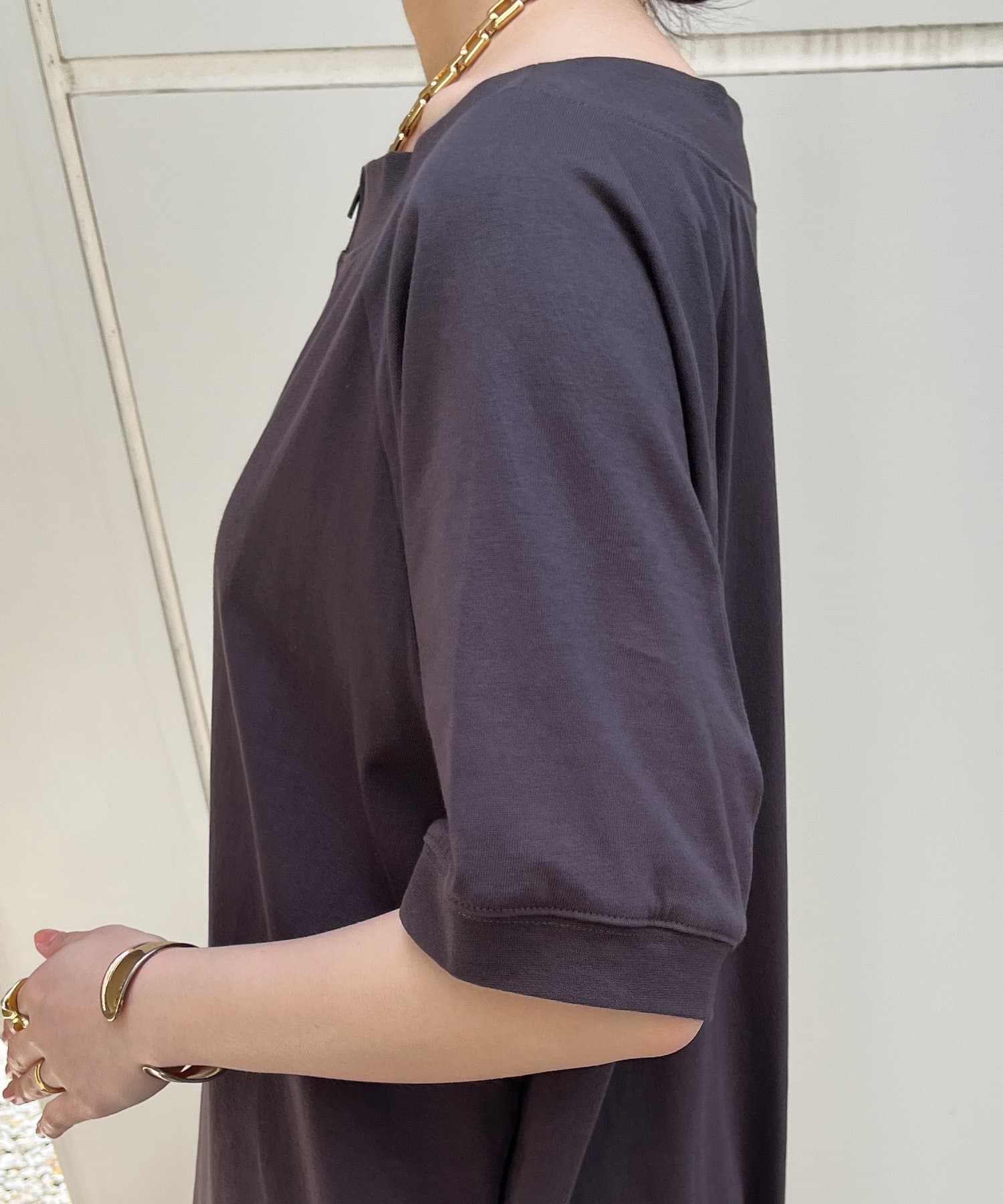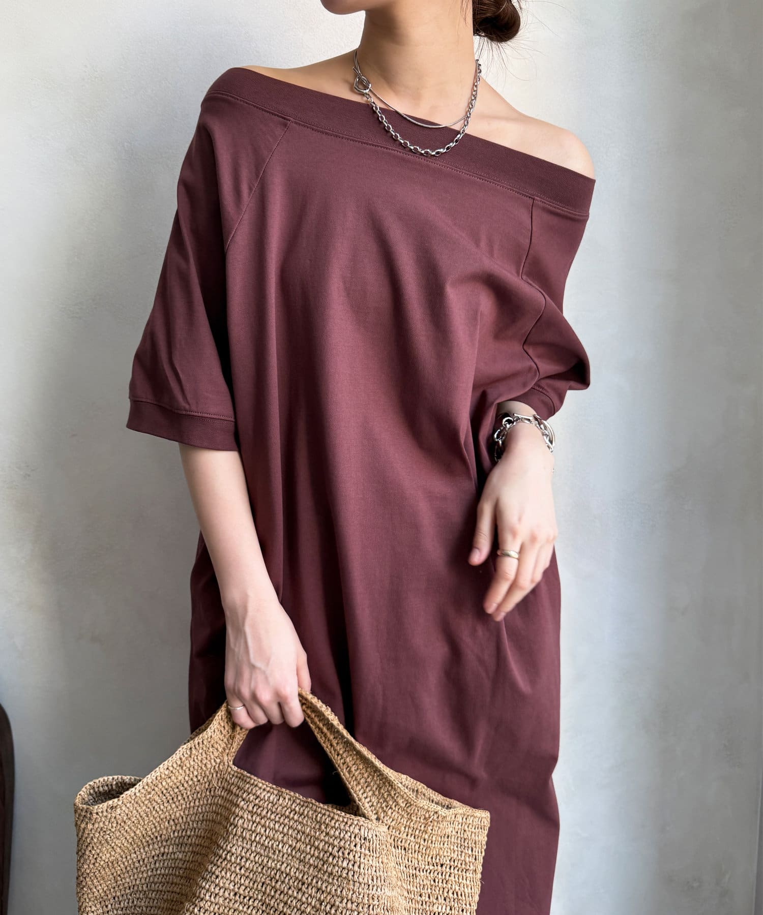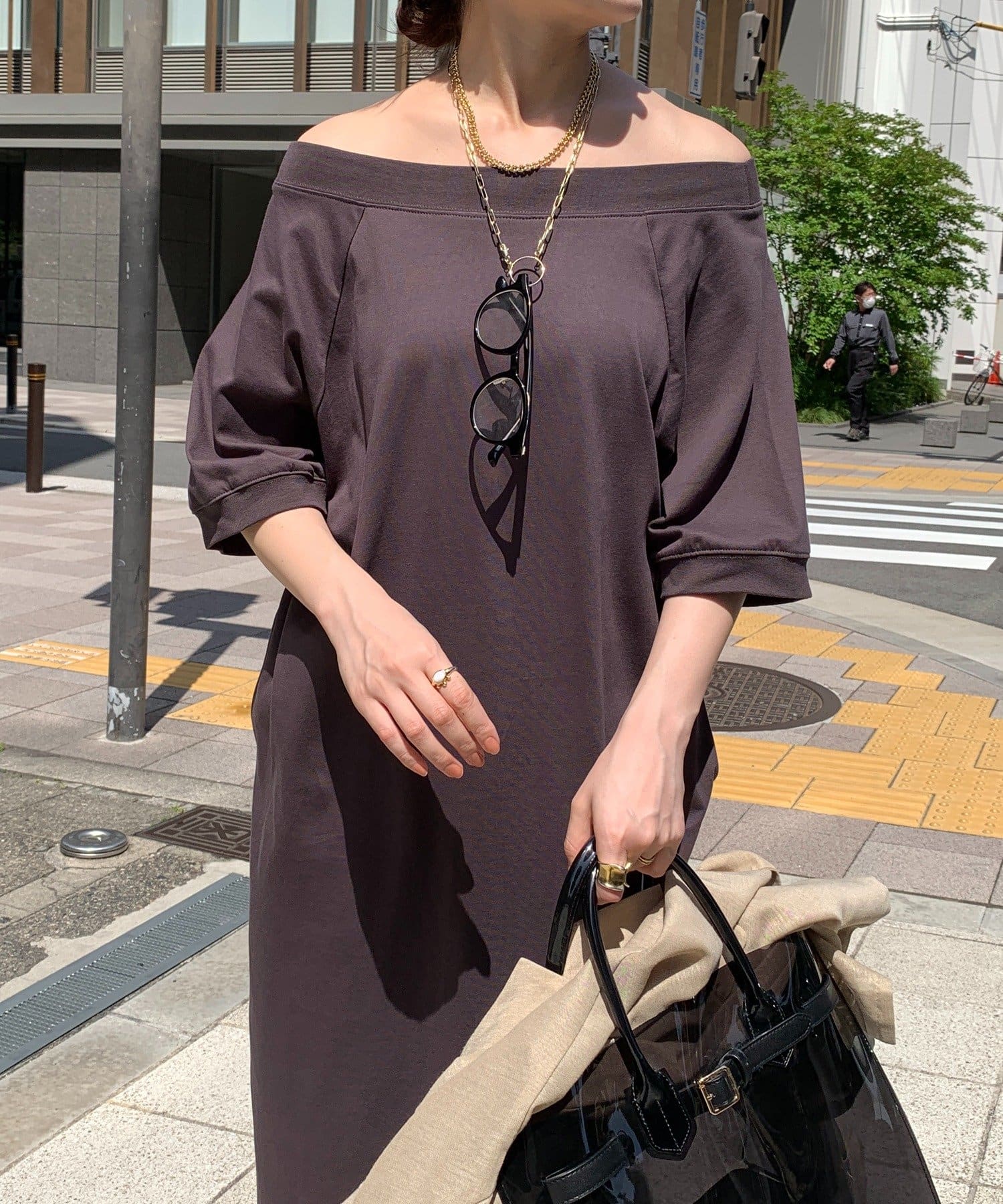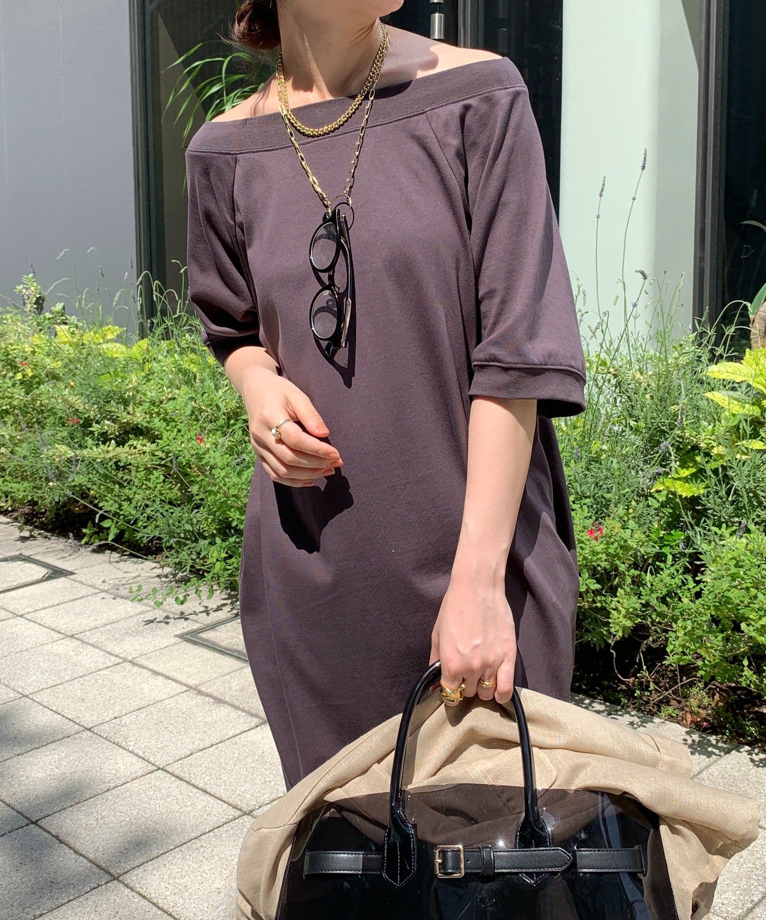 ネックラインに余裕感を与え、広く取っているためオフショルとしても着用が可能。