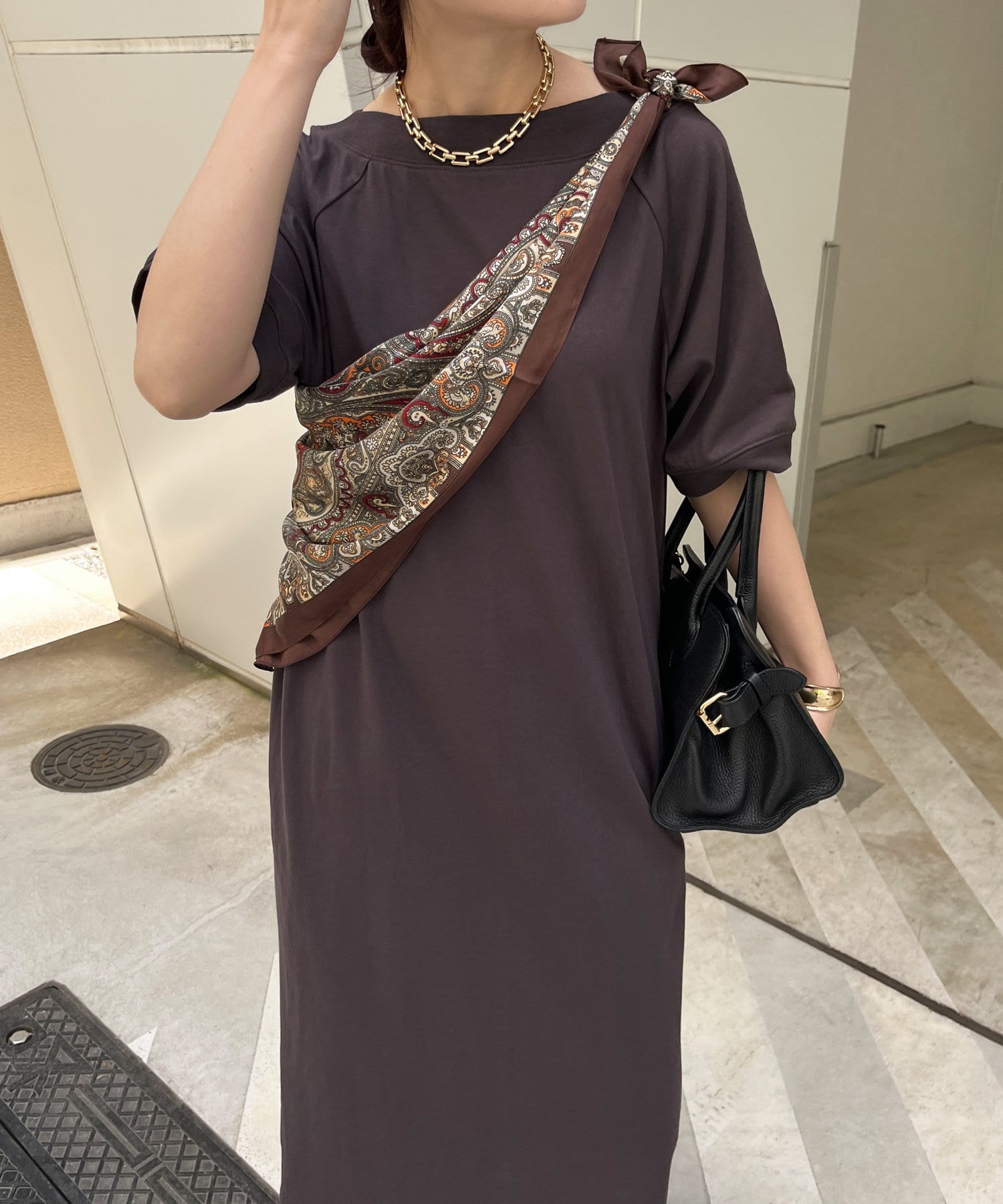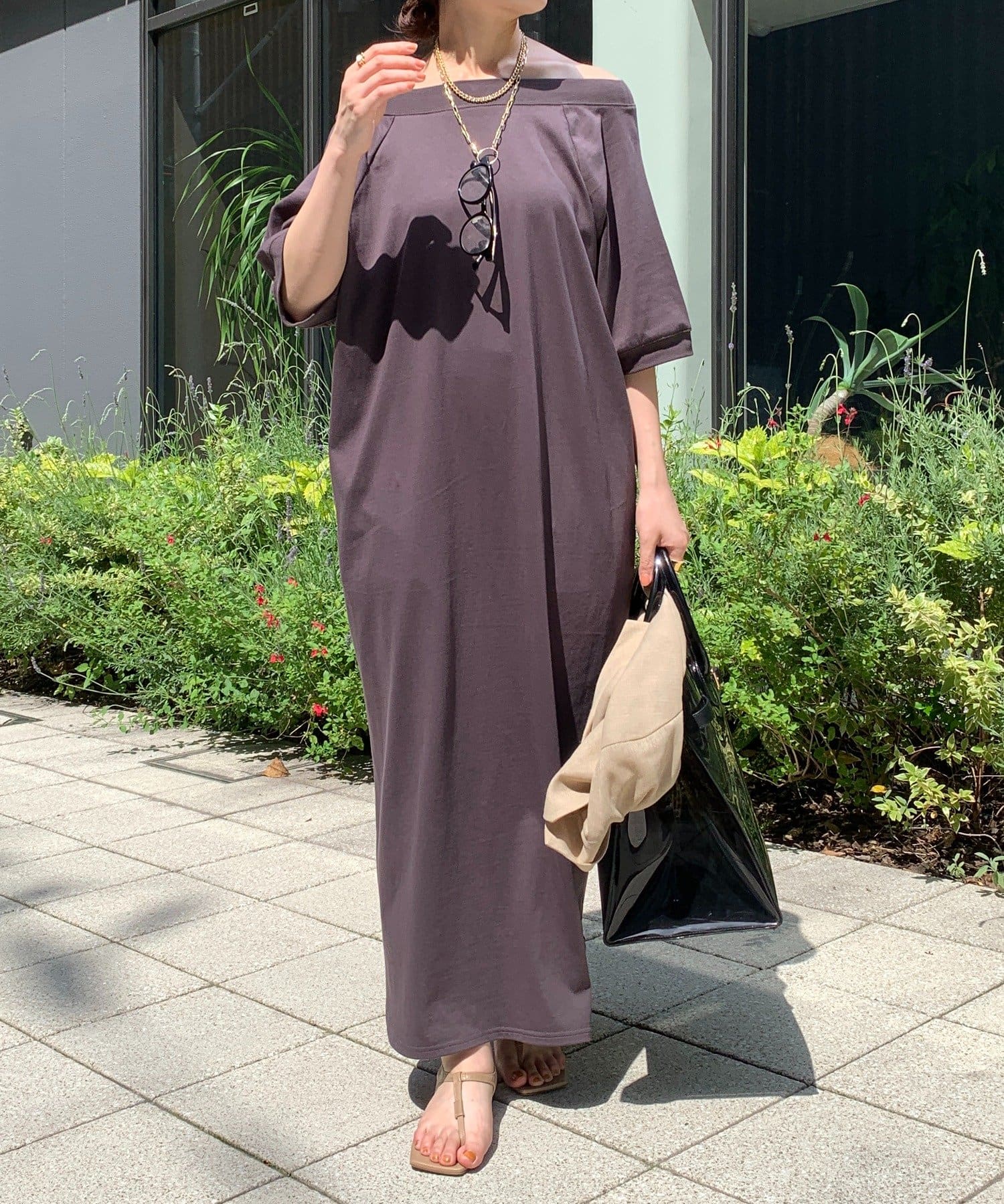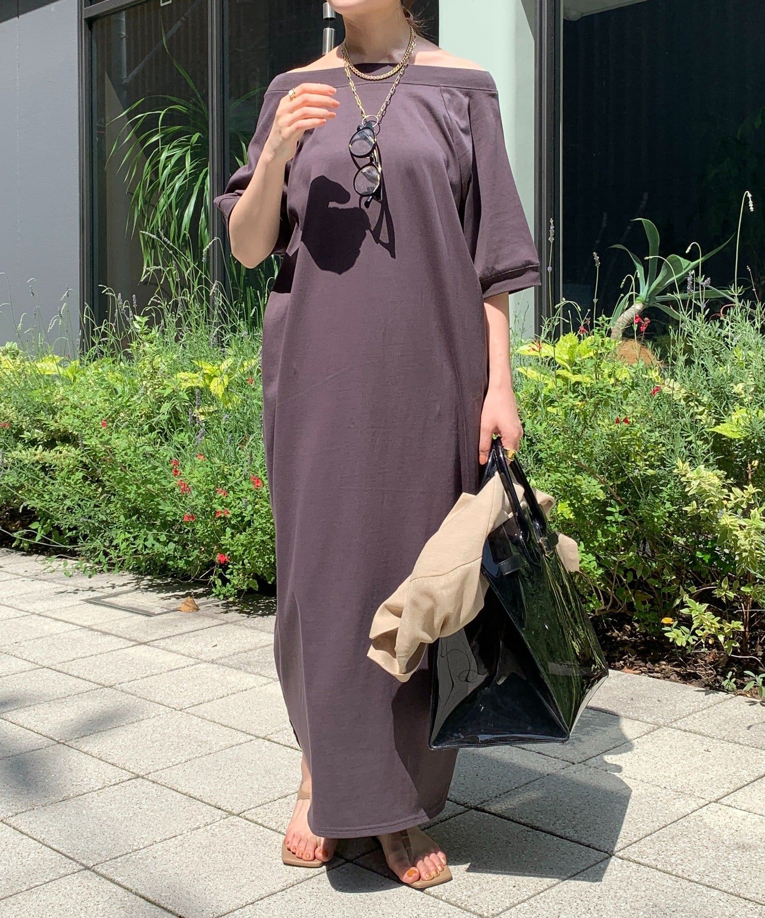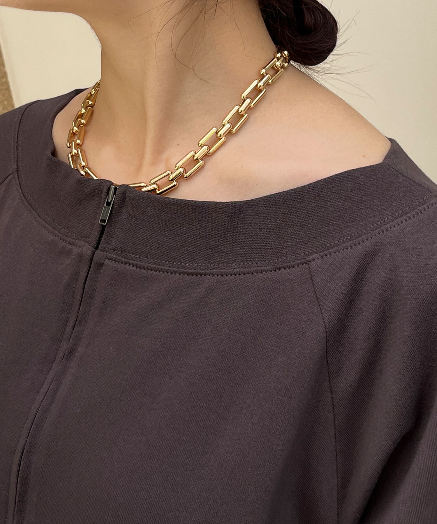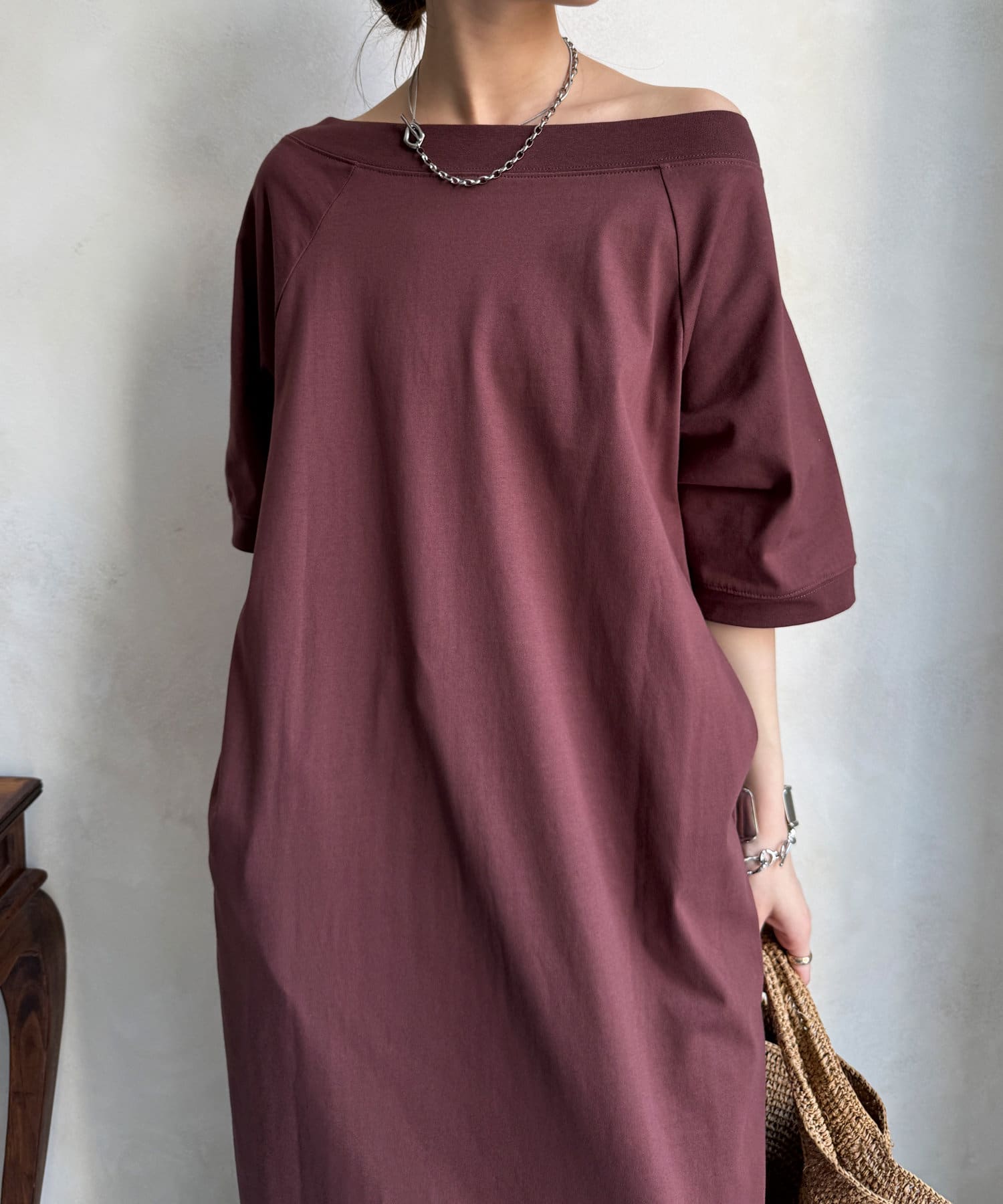 ネックラインに余裕感を与え、広く取っているためオフショルとしても着用が可能。