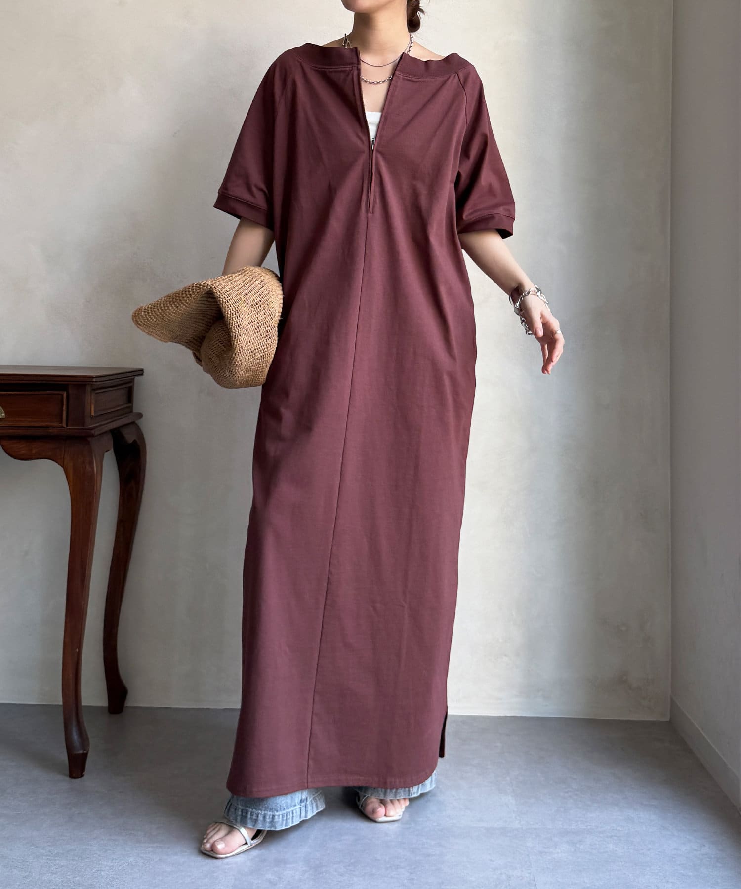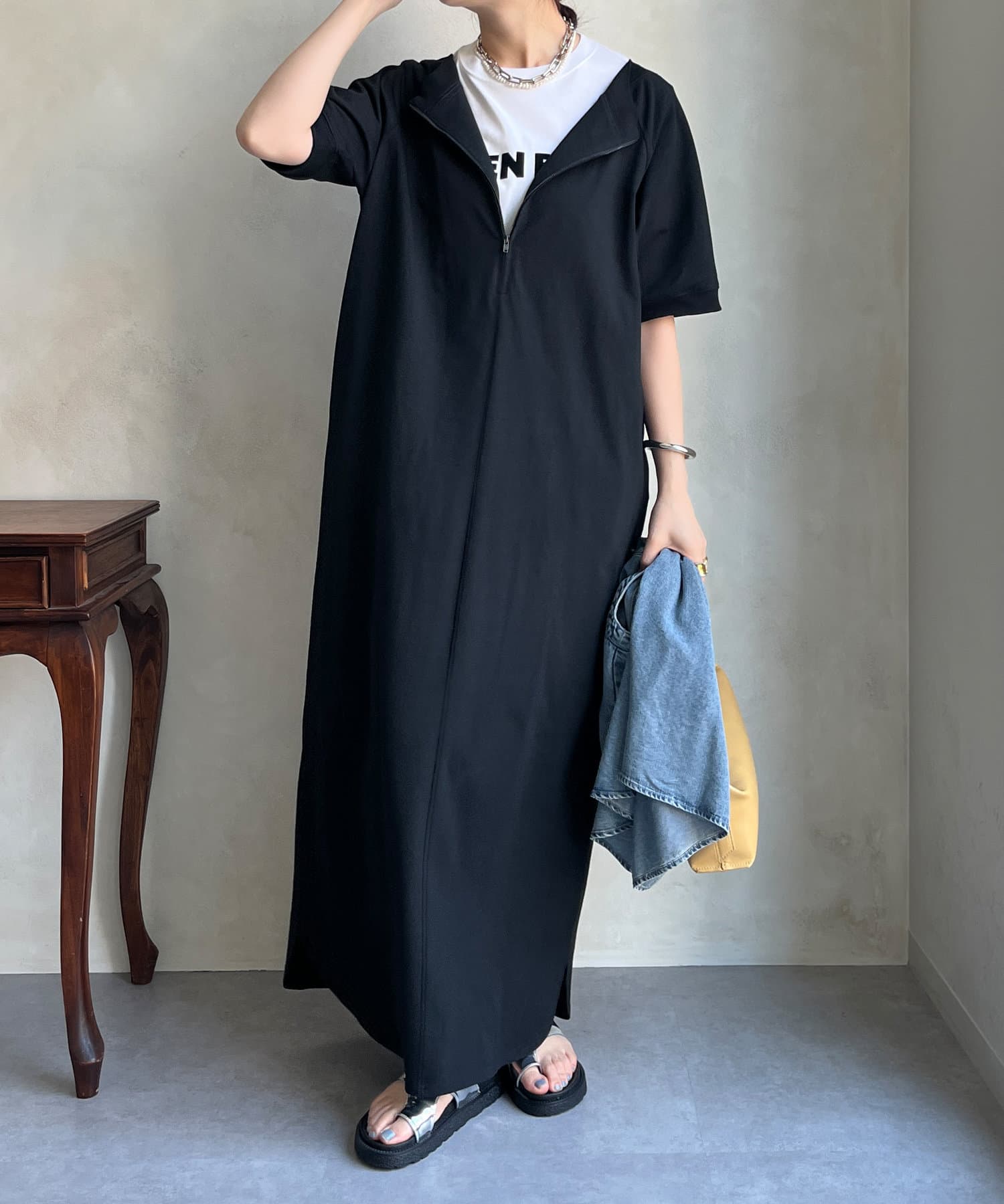 DOUDOU(ドゥドゥ) 【汗染み防止加工】前後2WAYジップワンピース