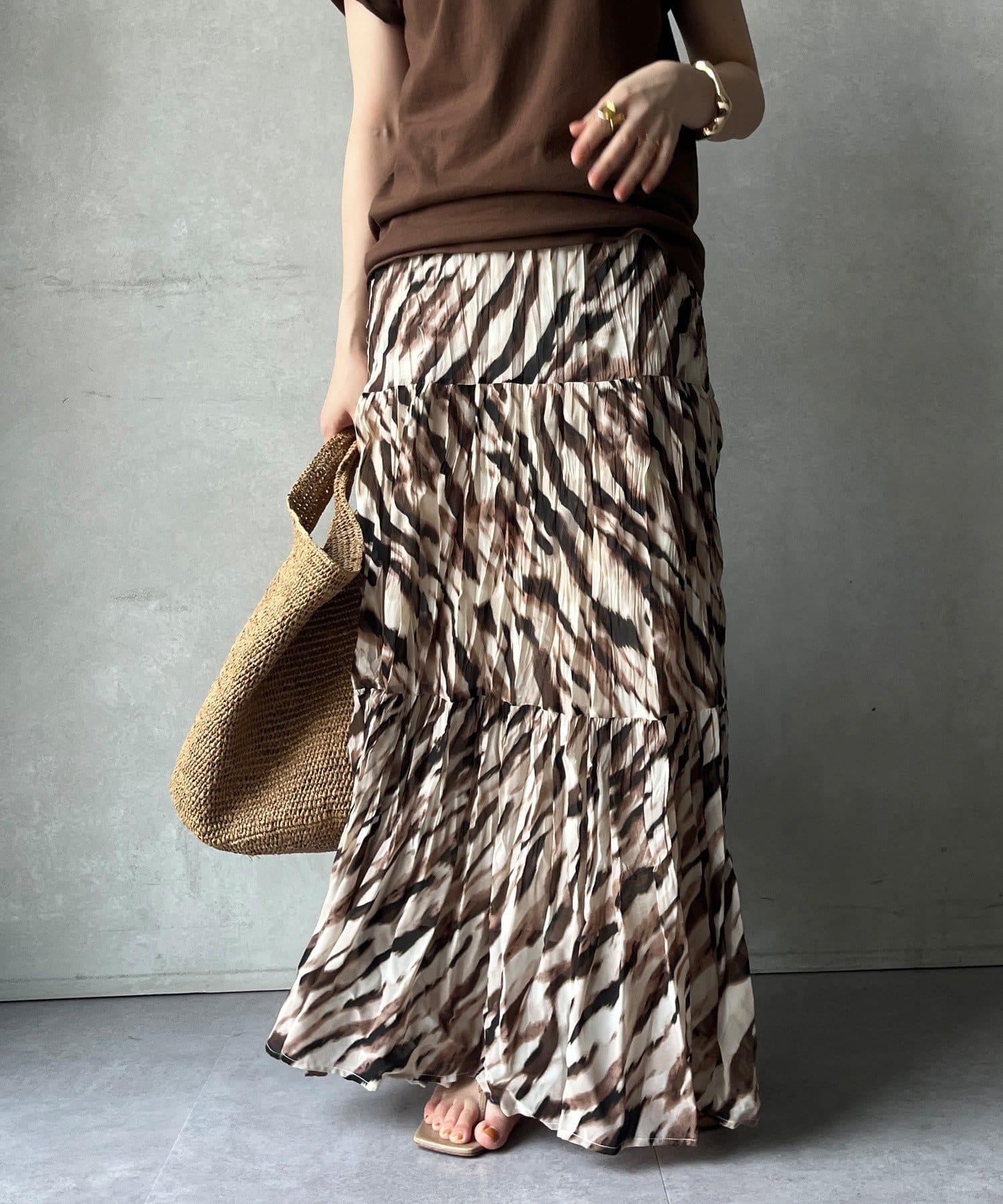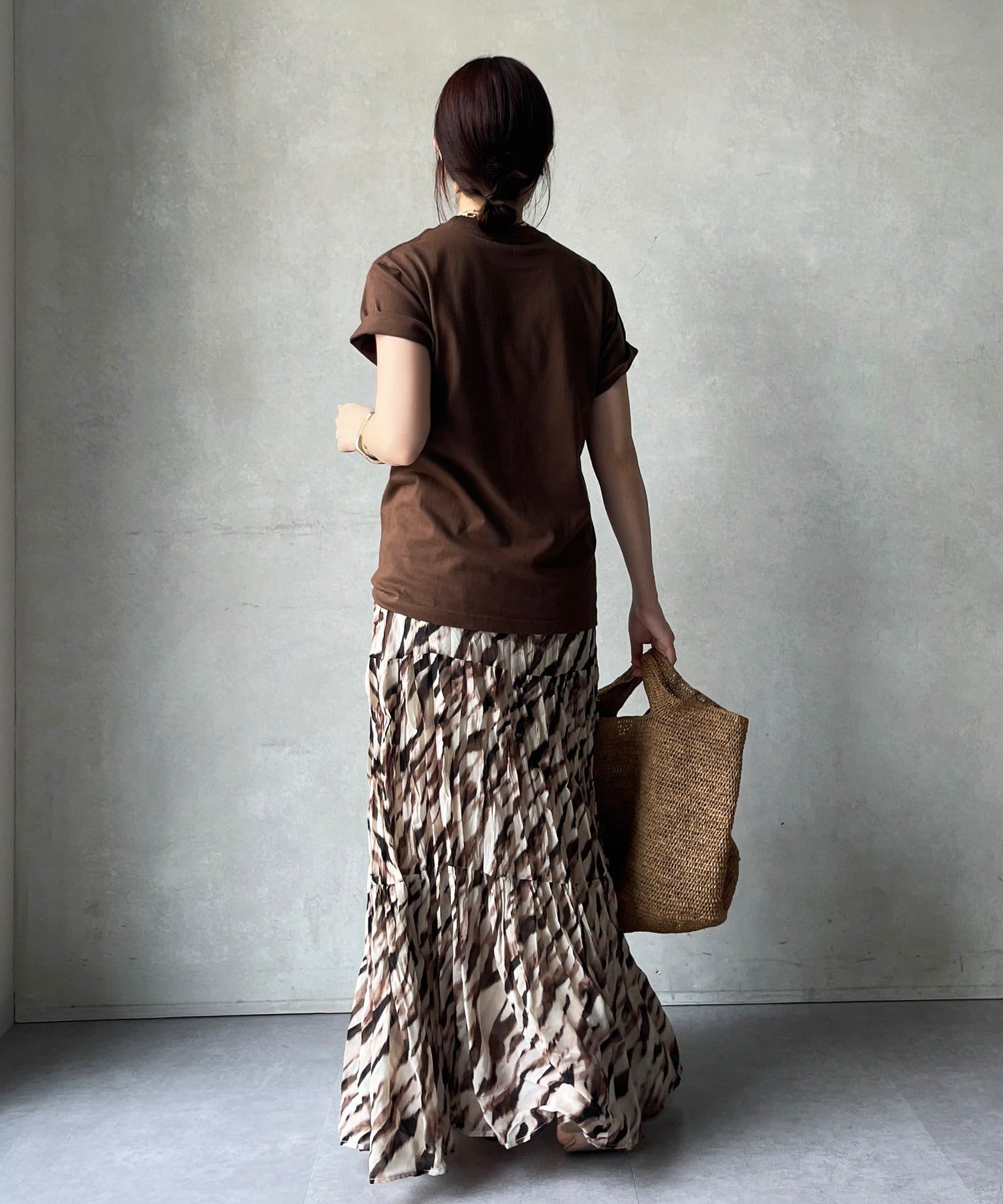 ロング丈で、歩くたびに揺れる大人なシルエットのスカート。