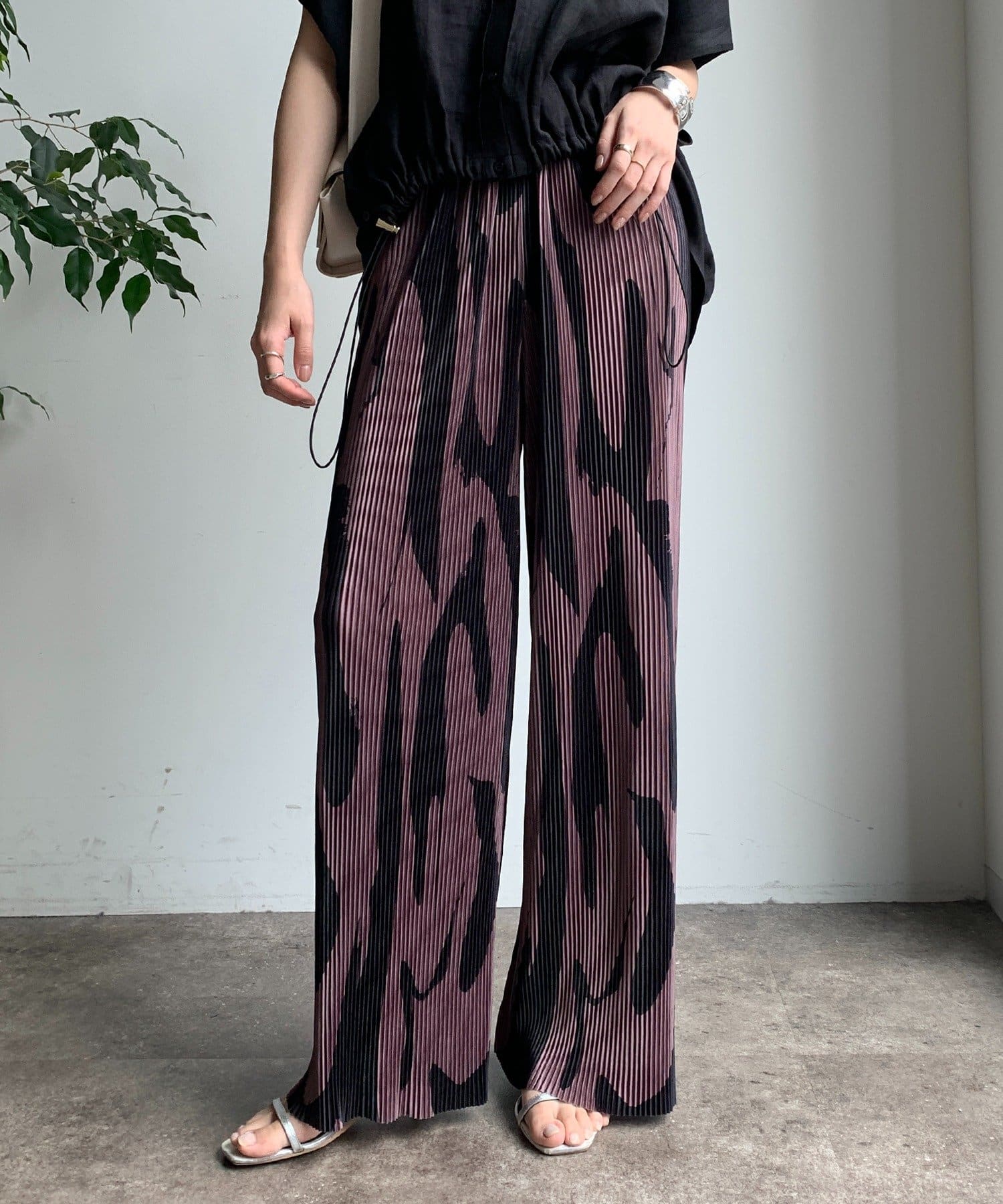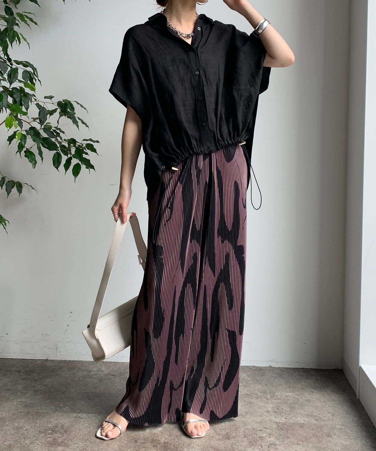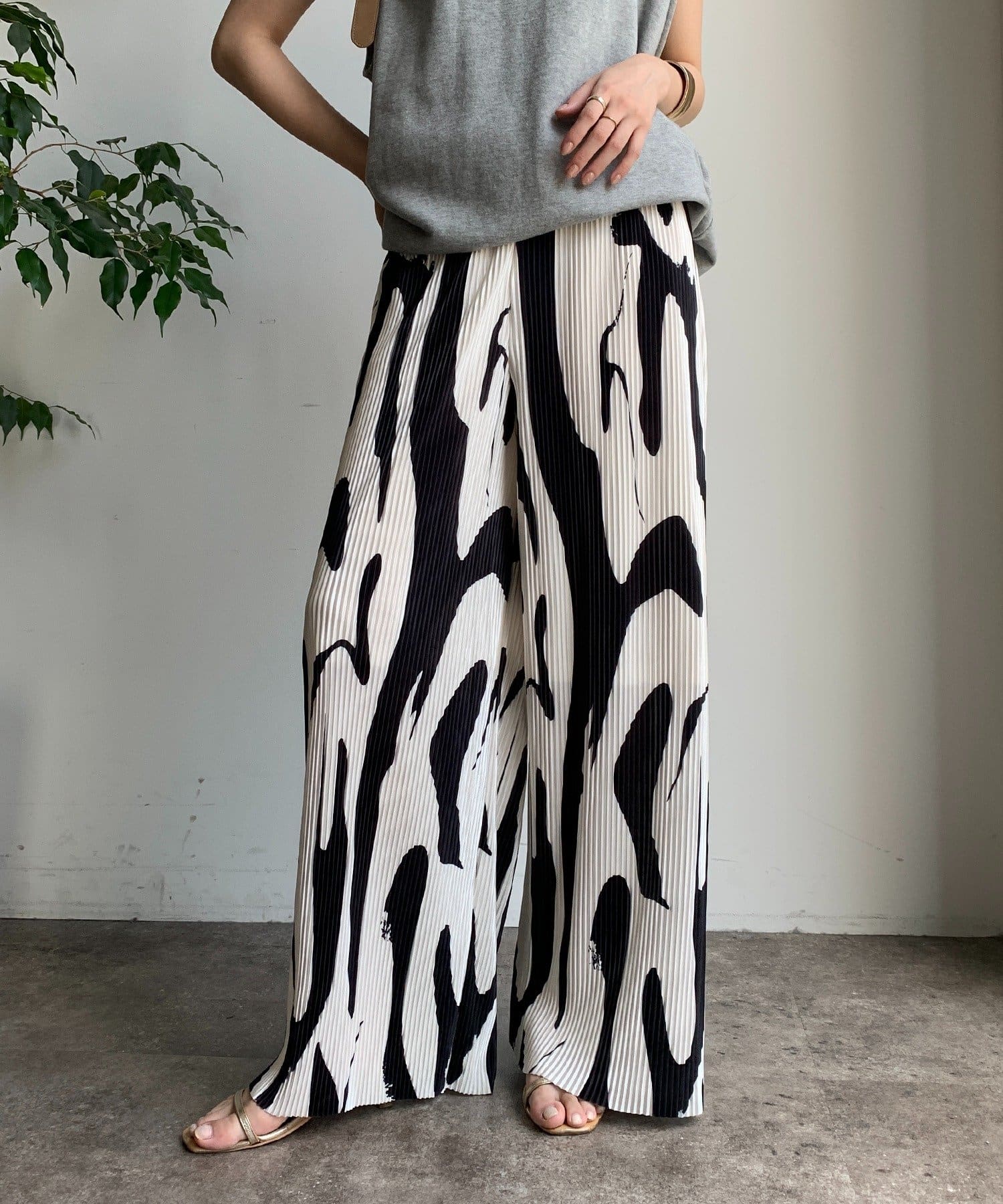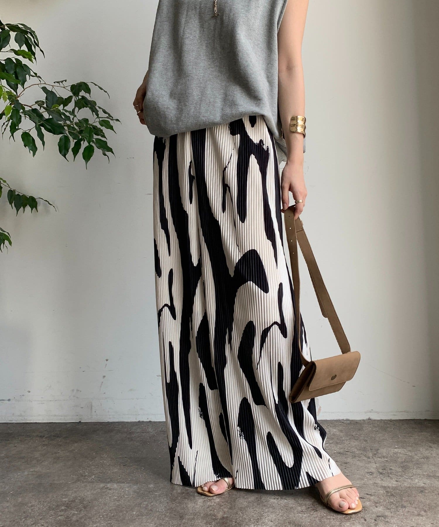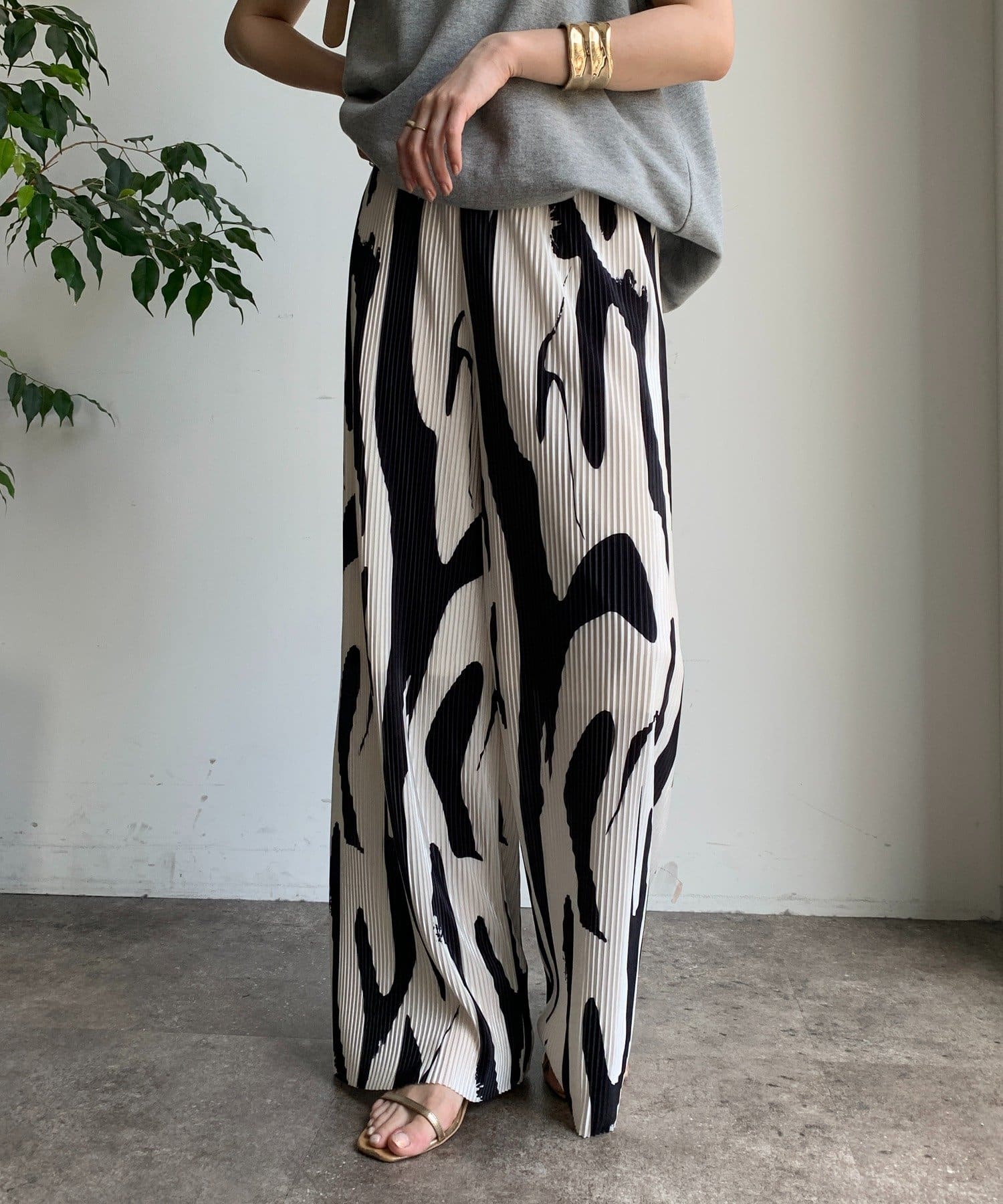 プリーツ加工で縦ラインが強調され脚長効果も!