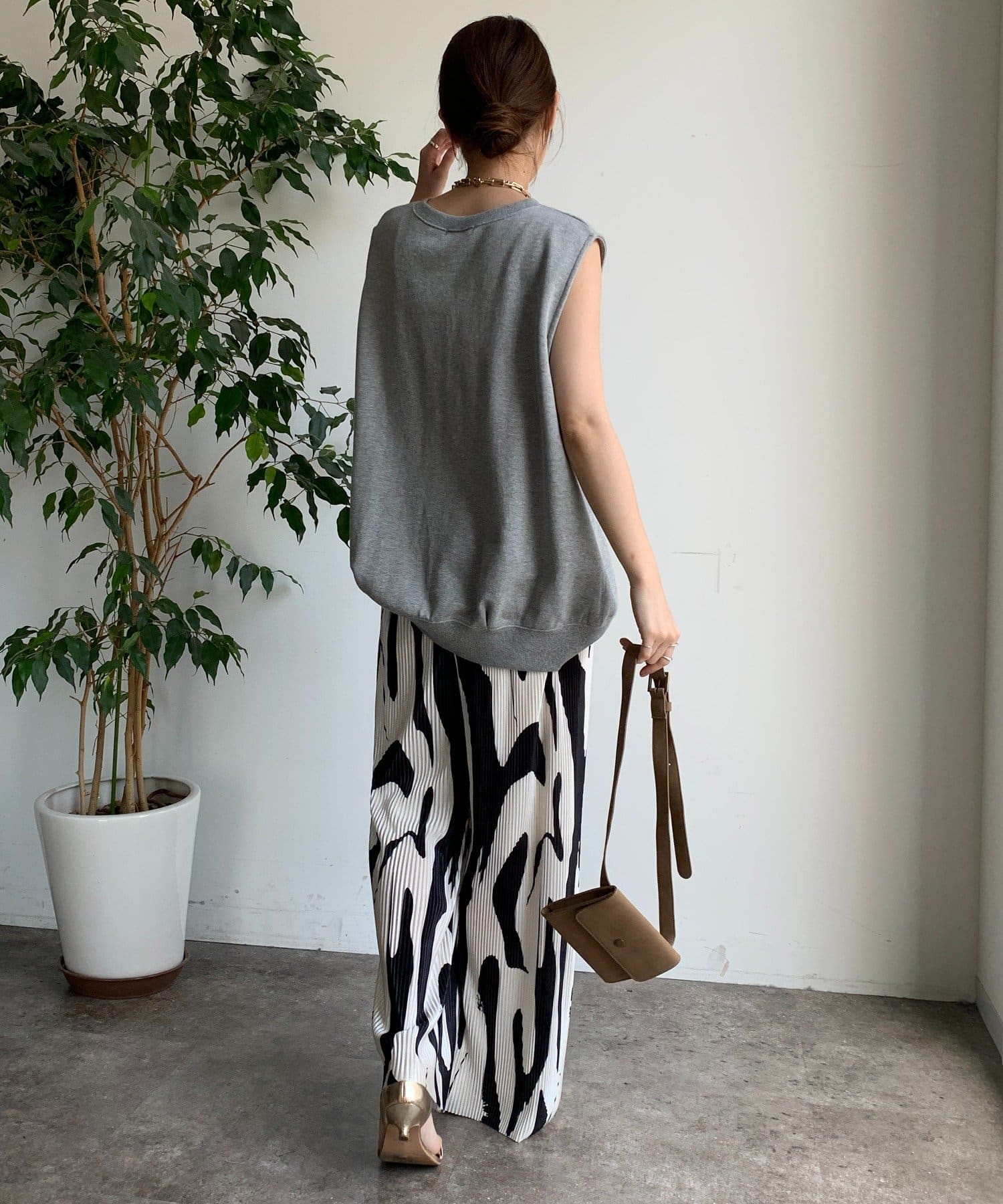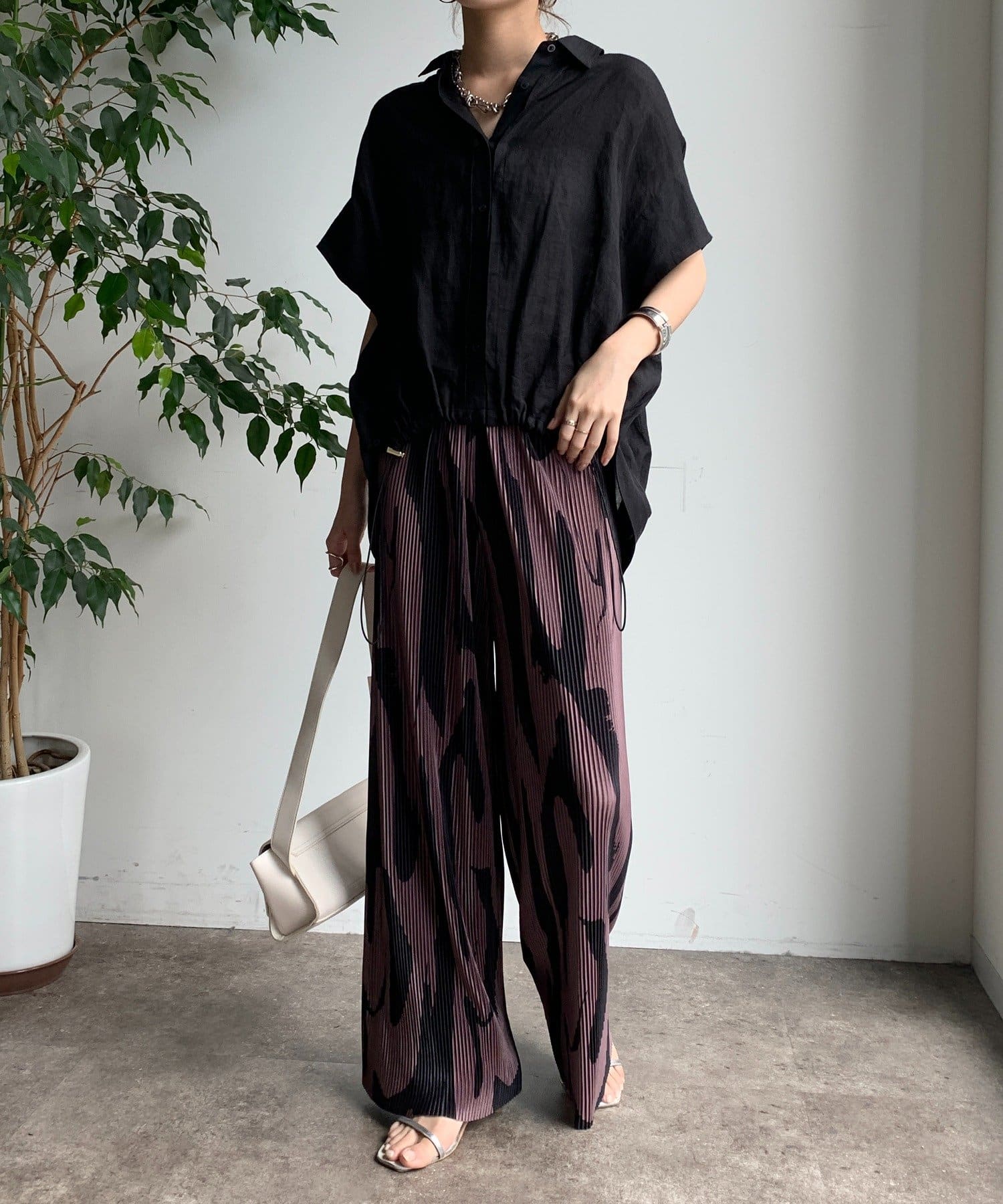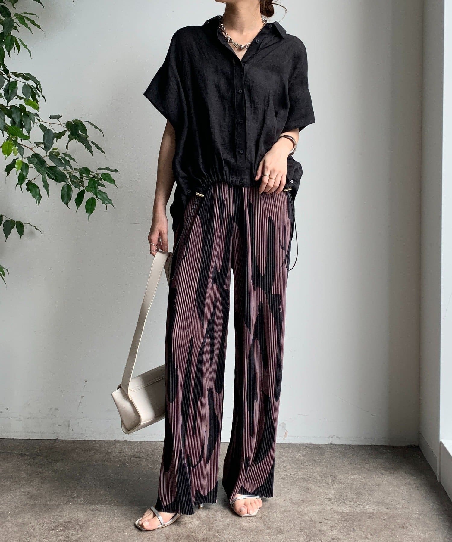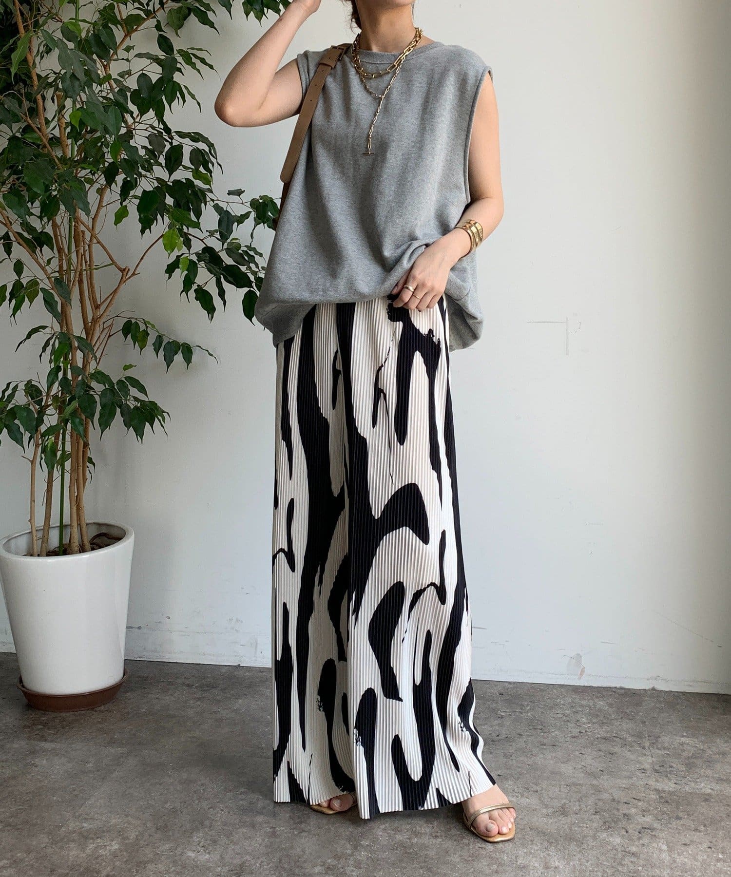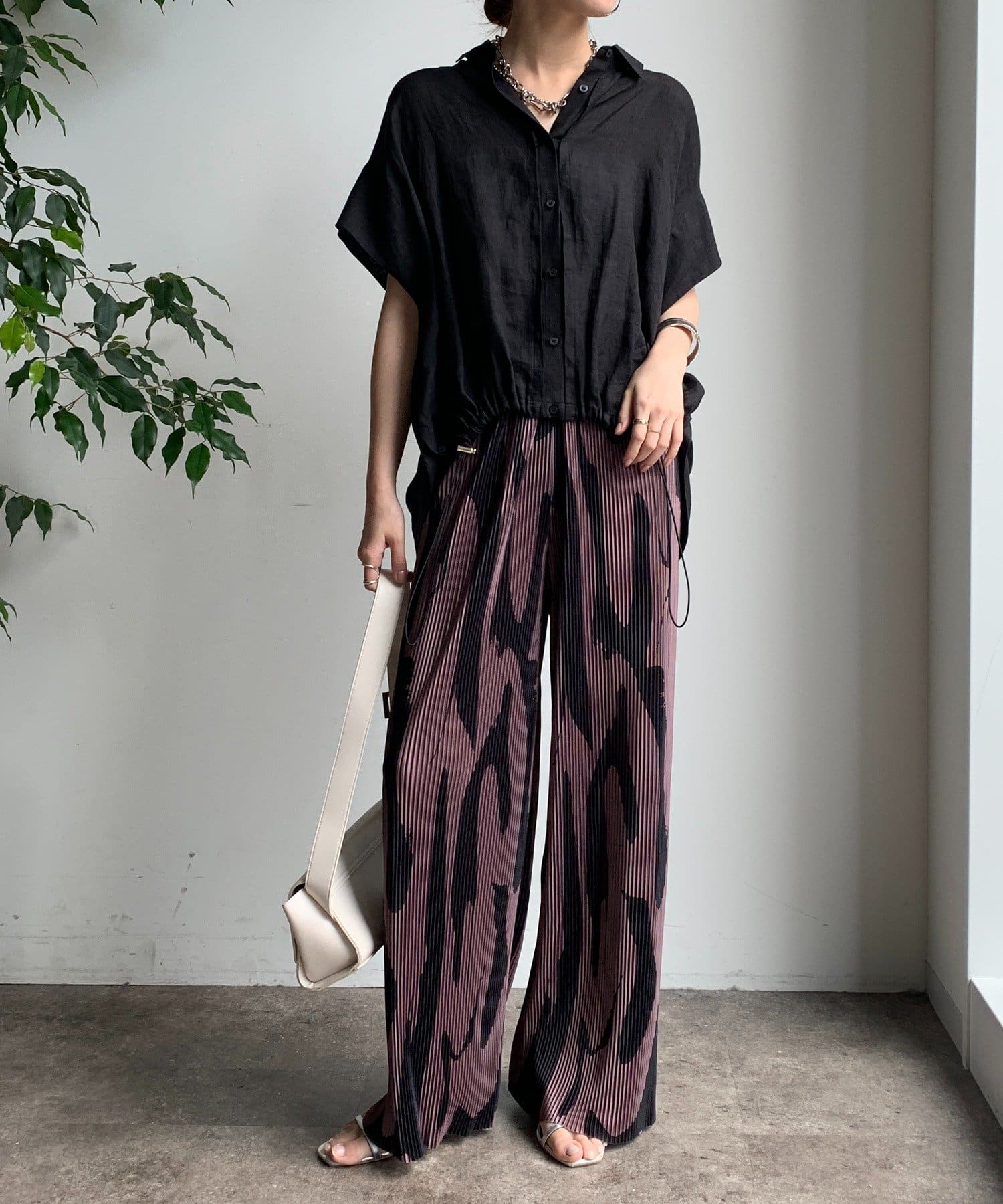 プリーツ加工で縦ラインが強調され脚長効果も!