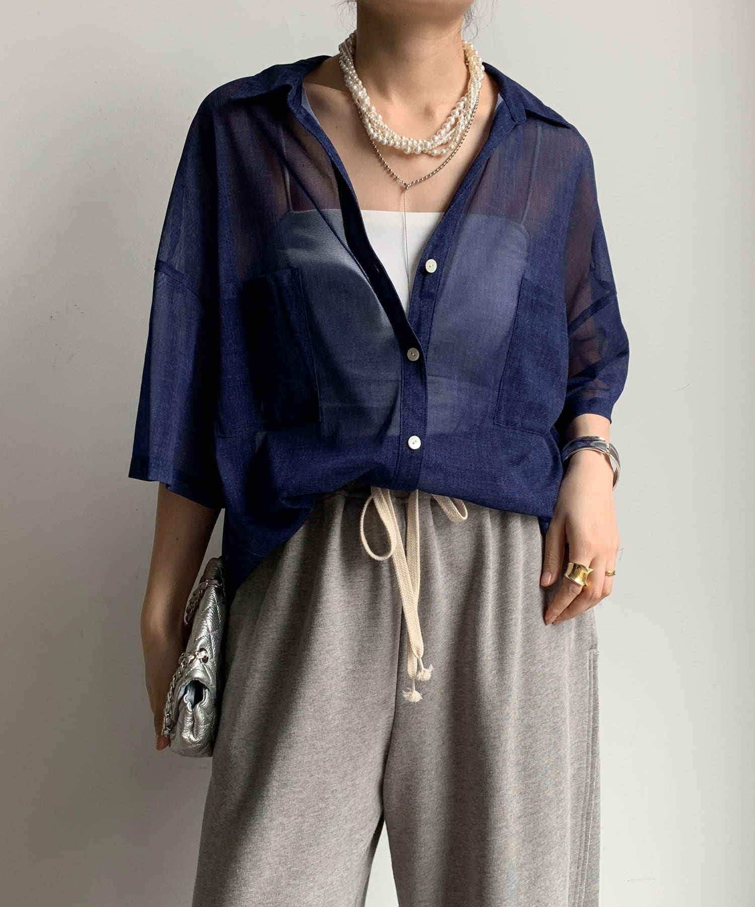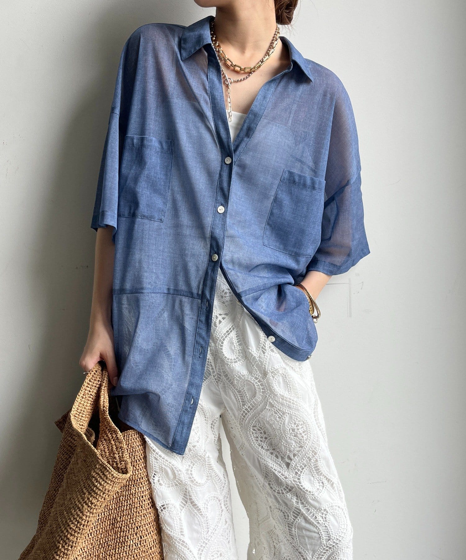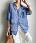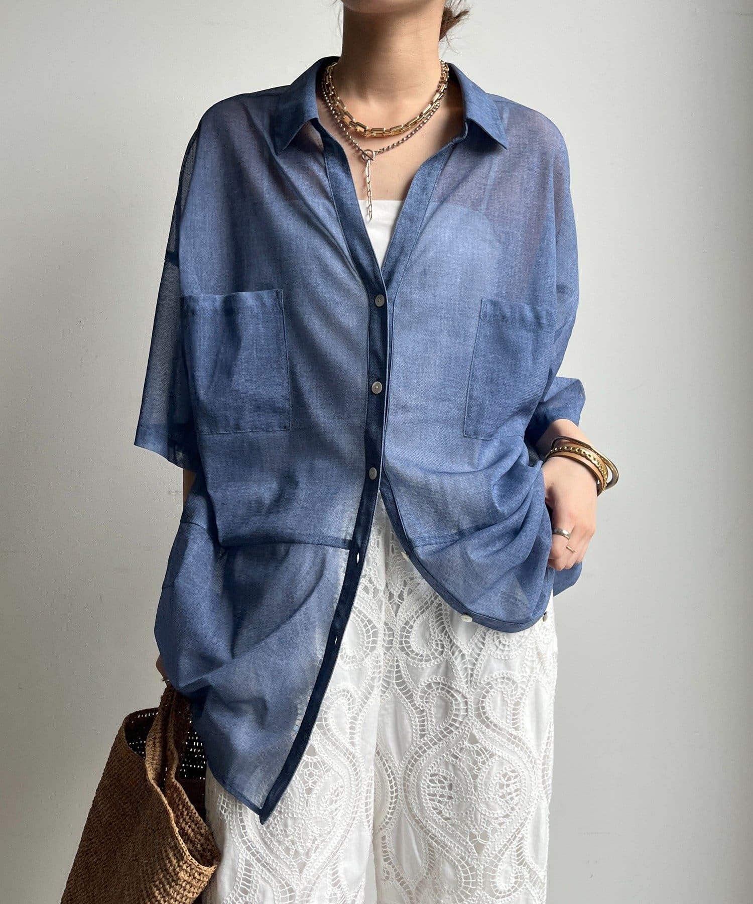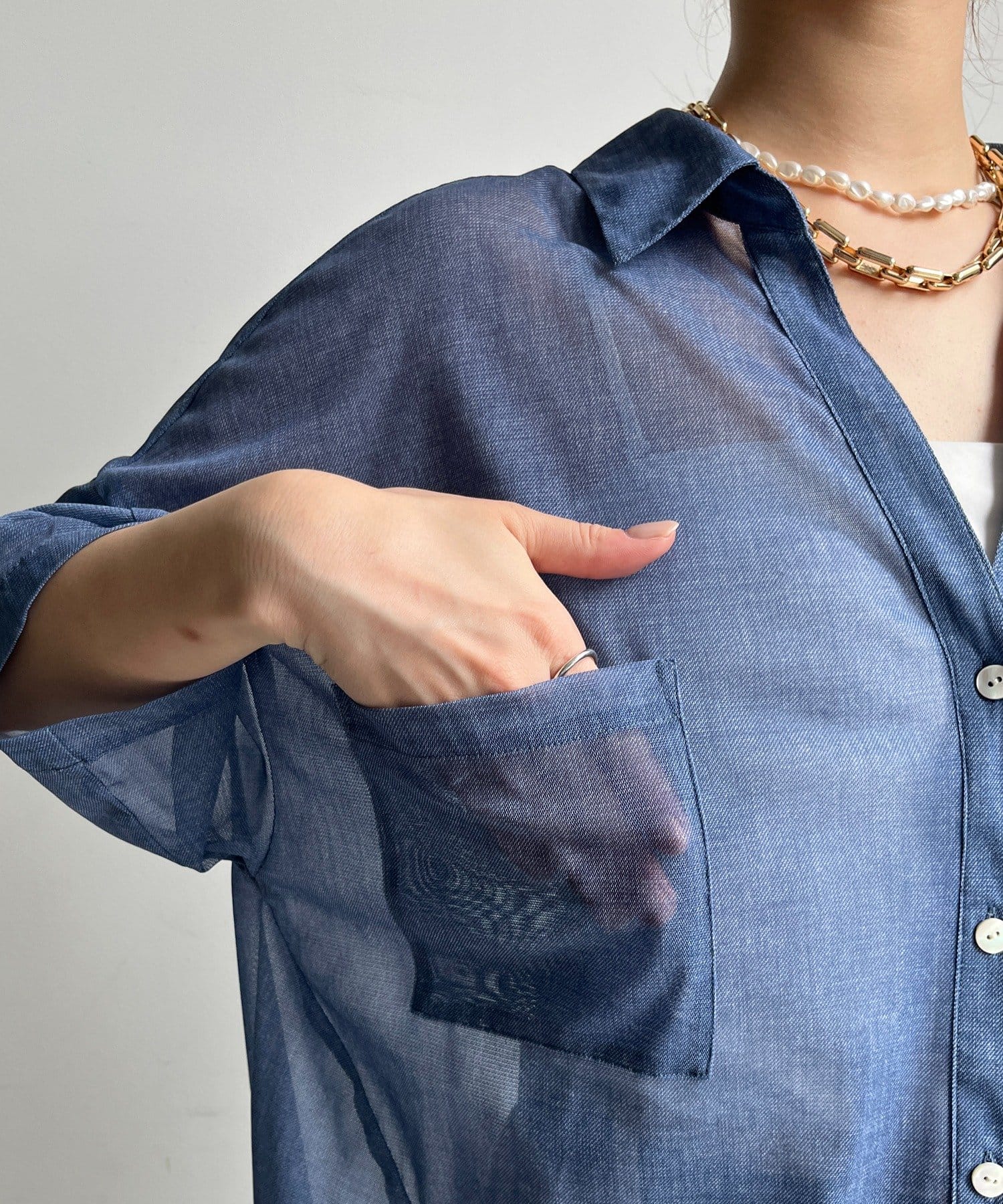 TOP > DOUDOU > レディース > トップス > シャツ/ブラウス(ボタン) > 【WEB限定】チュールデニムシャツ