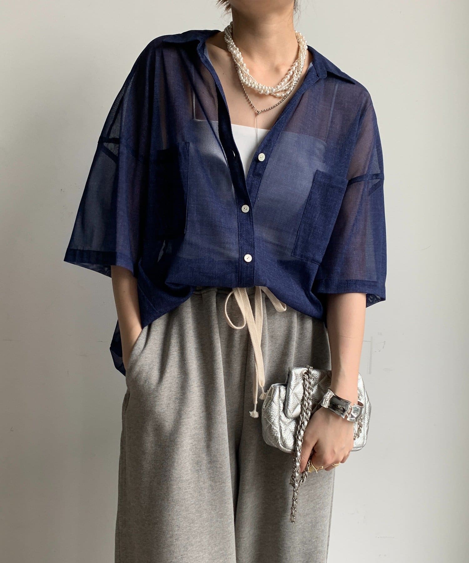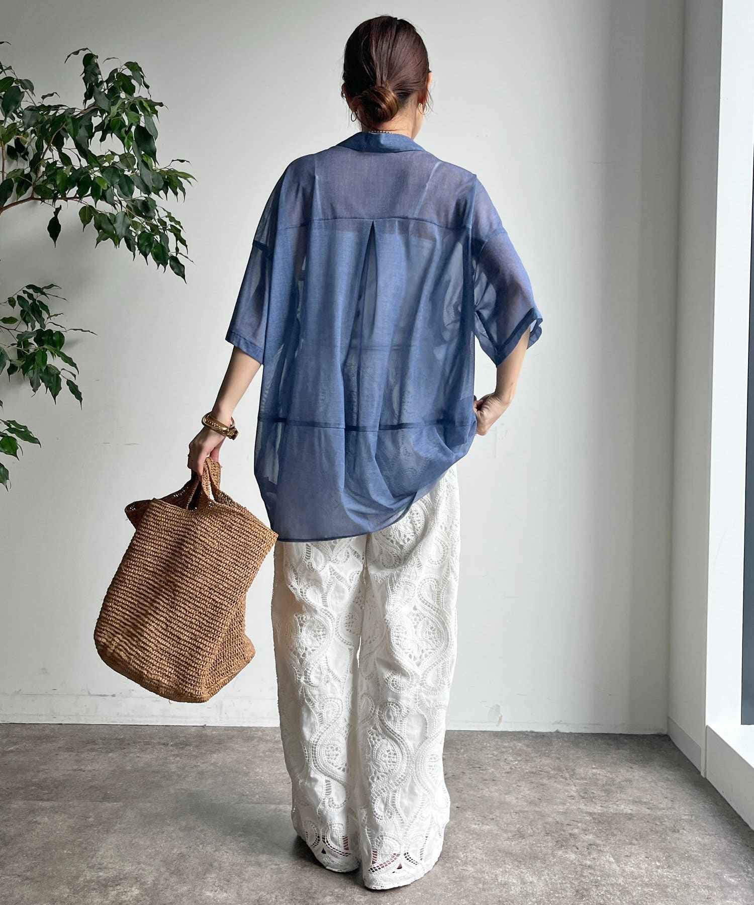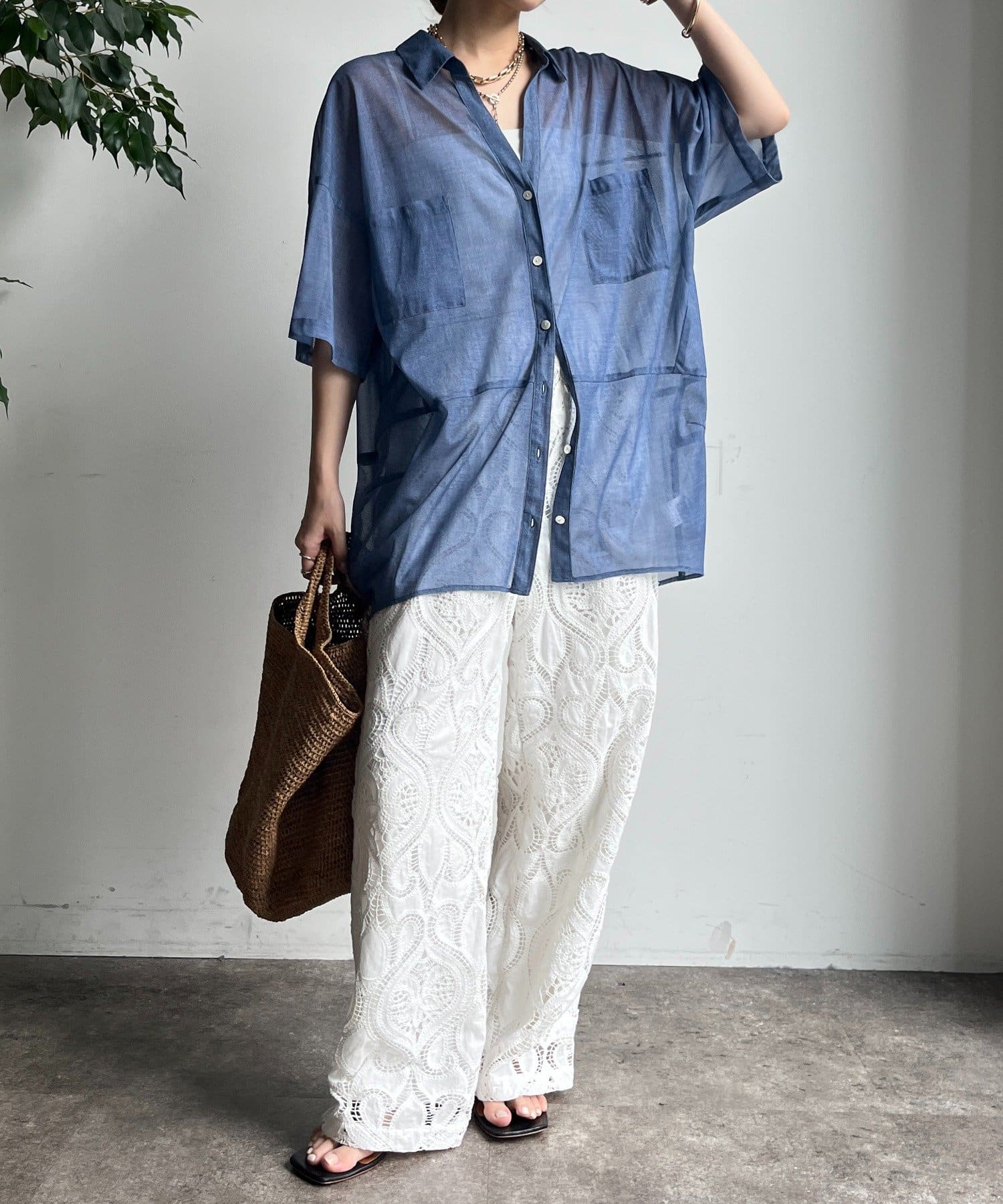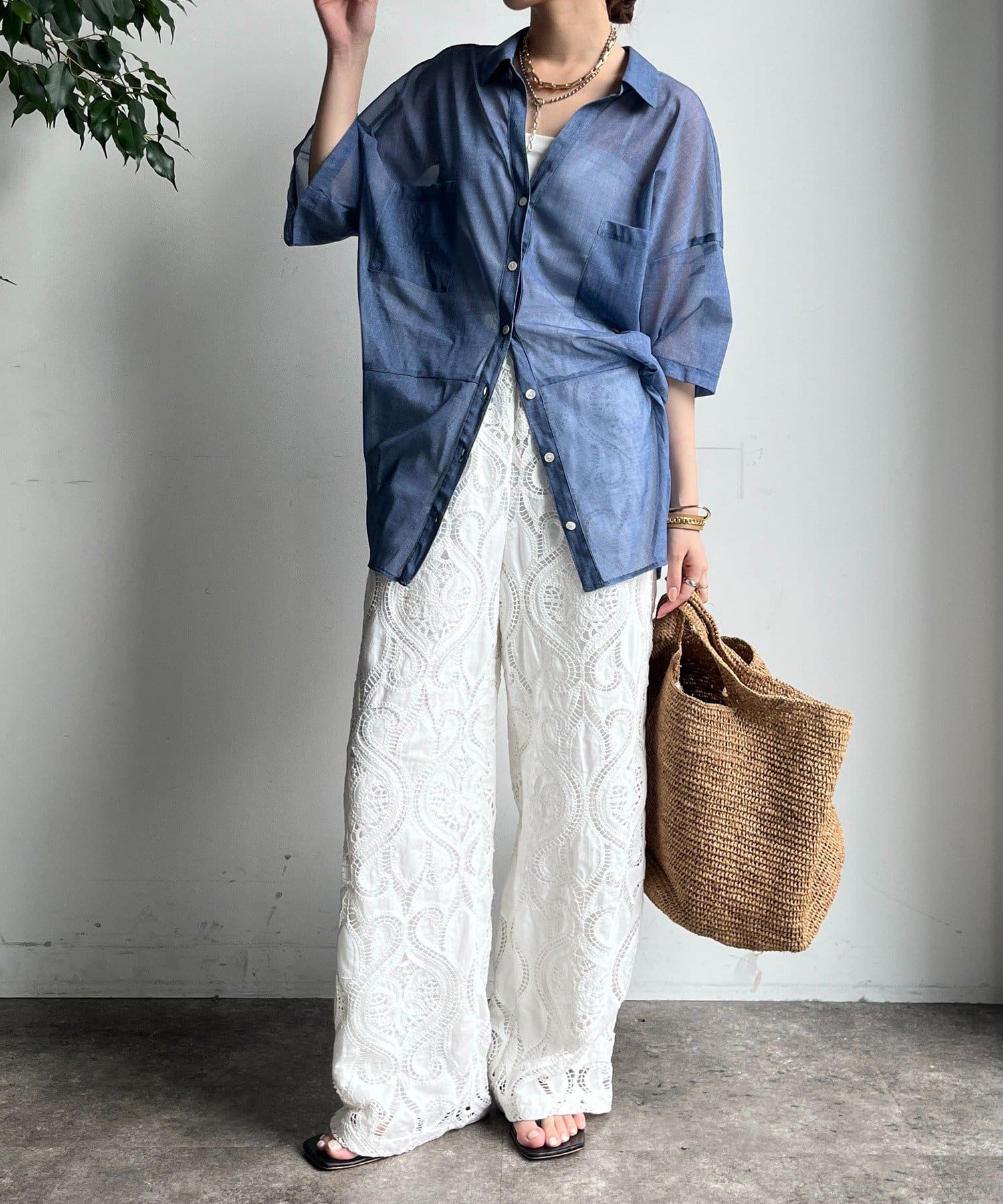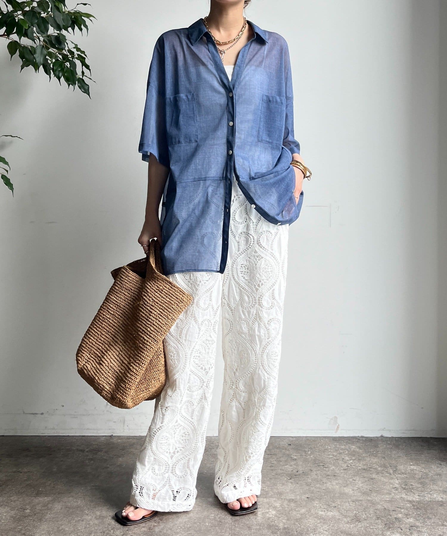 TOP > DOUDOU > レディース > トップス > シャツ/ブラウス(ボタン) > 【WEB限定】チュールデニムシャツ