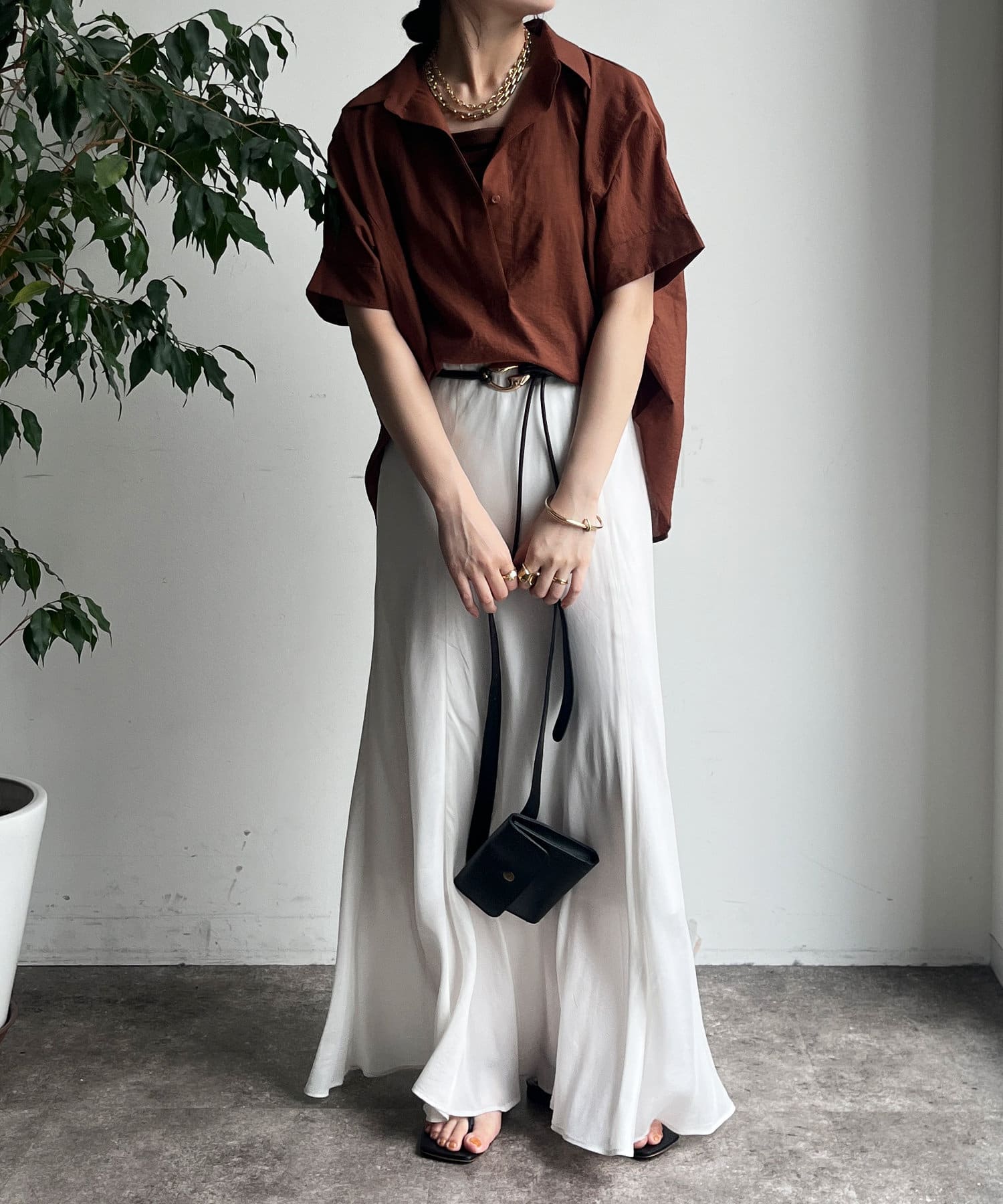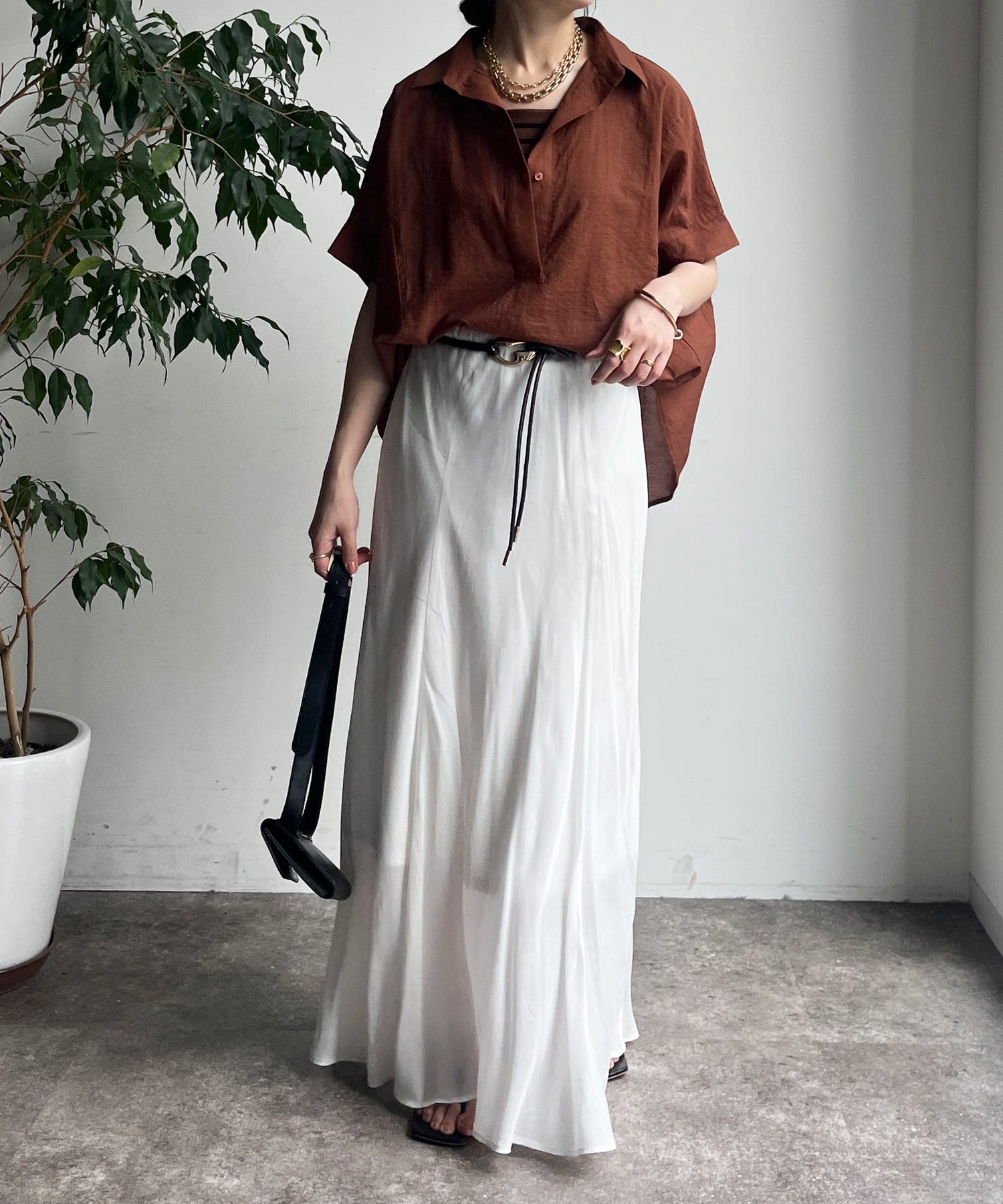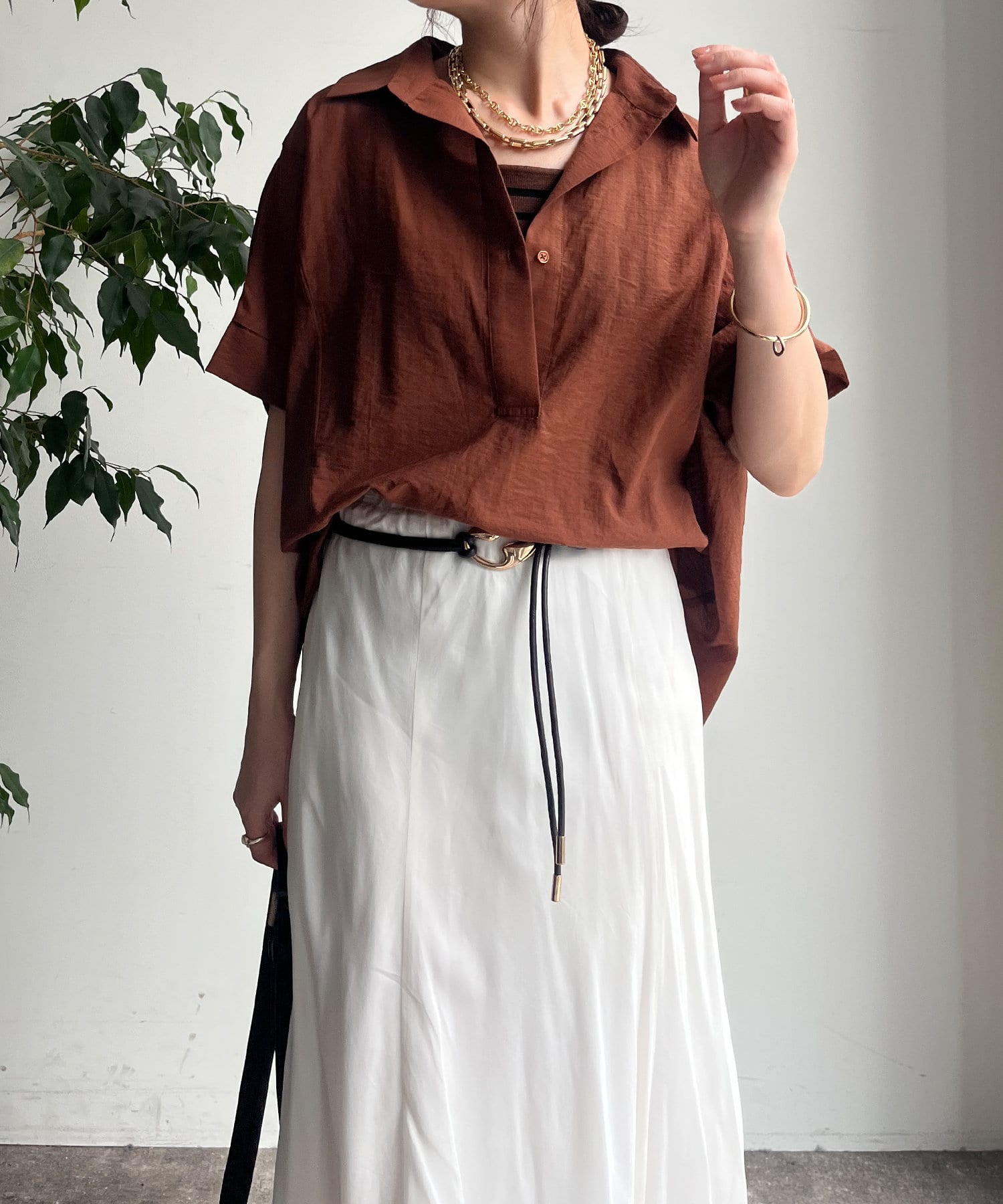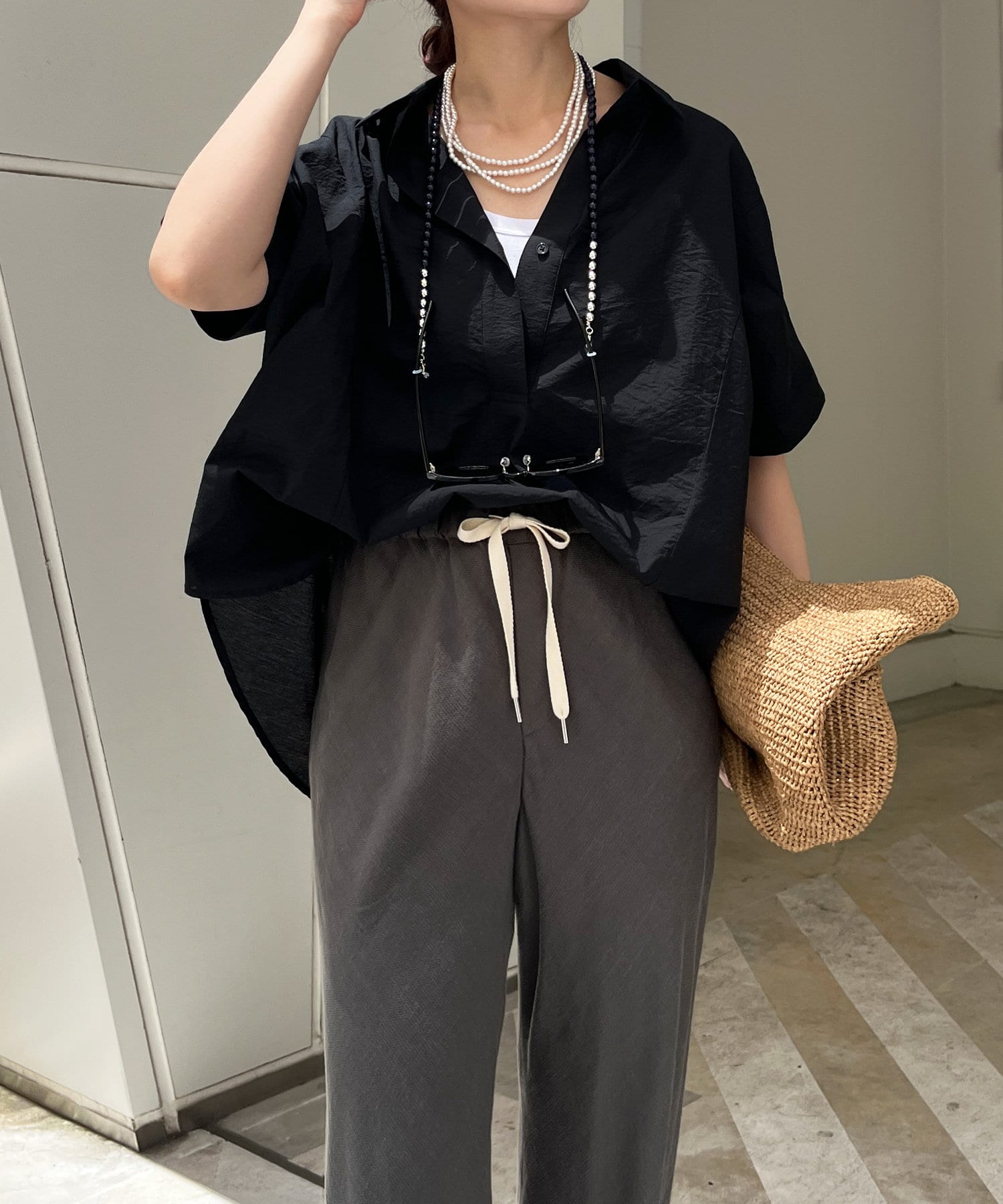 甘めのスカート合わせやゆるっとシルエットのパンツなど、夏のリラクシースタイルにぴったりな1着。
