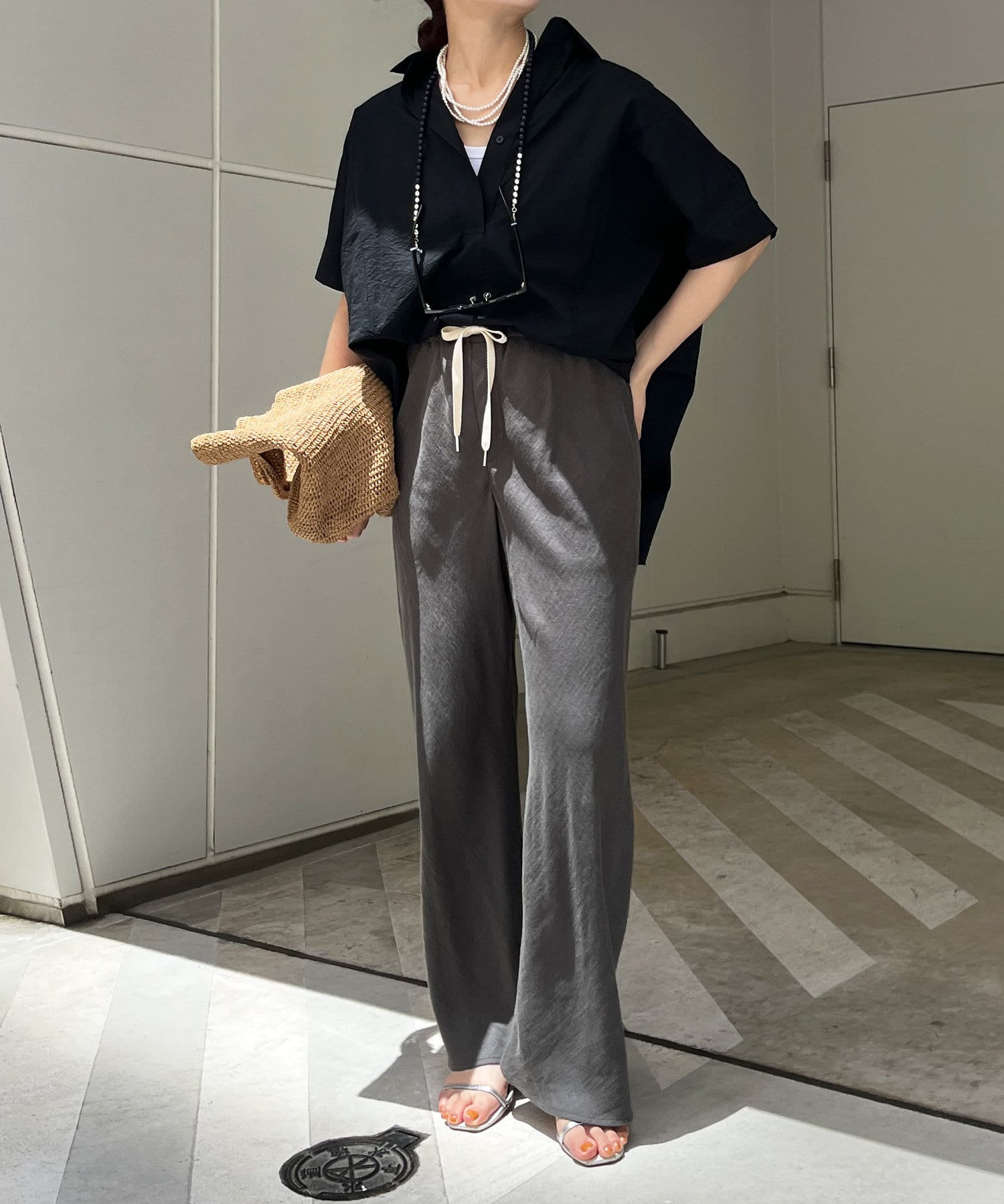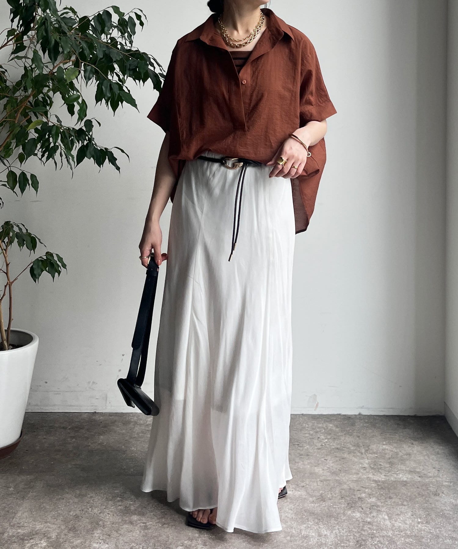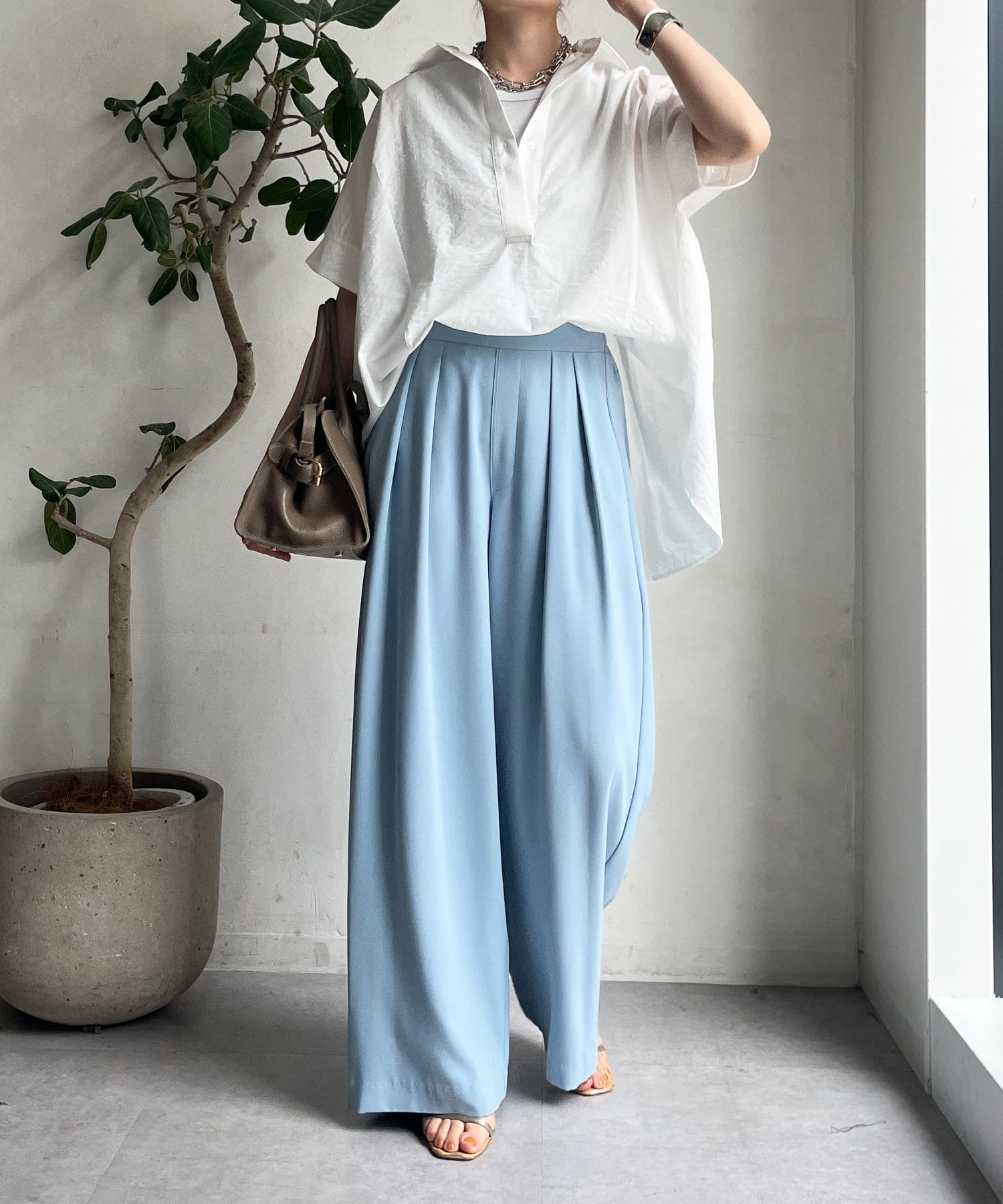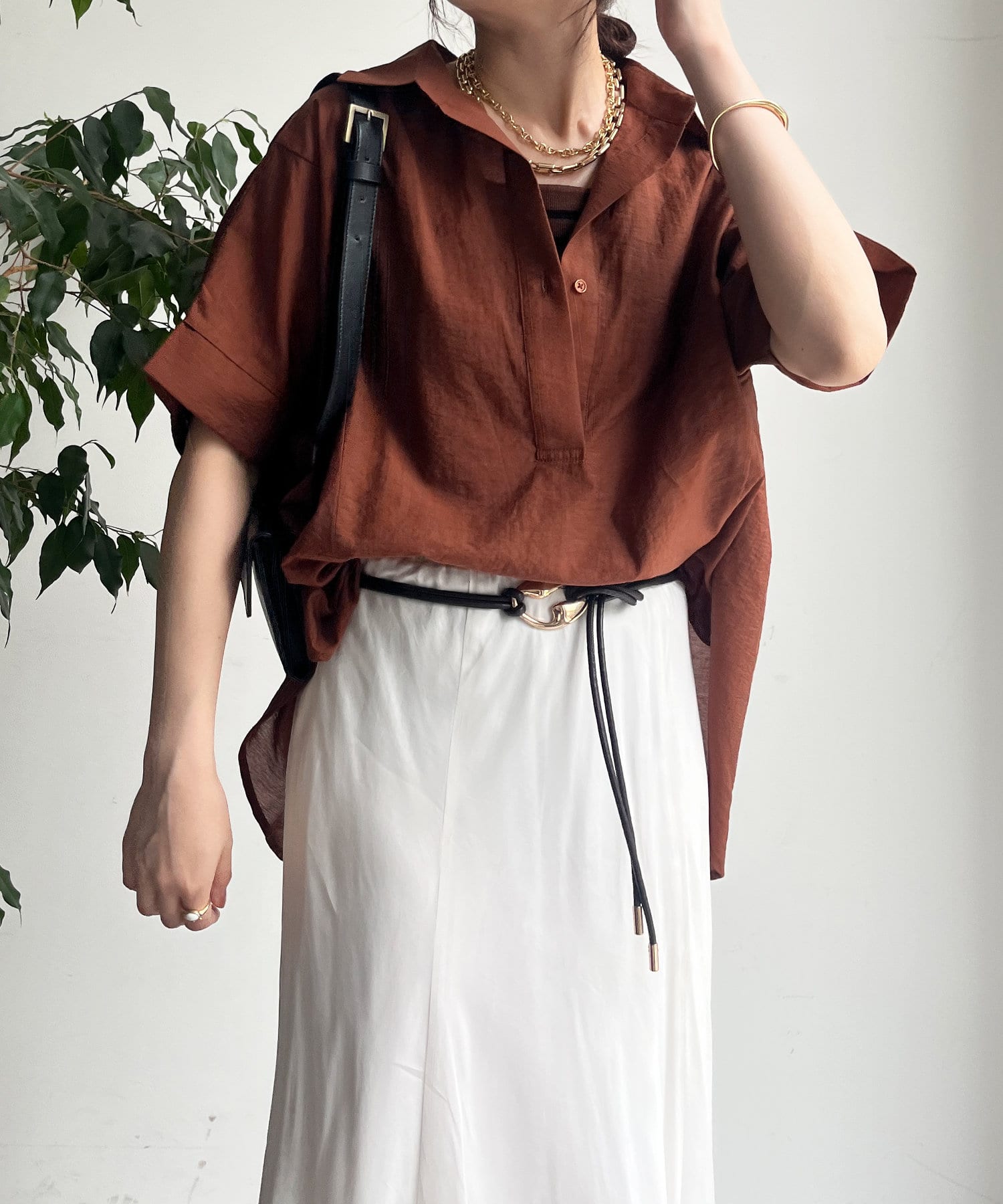 甘めのスカート合わせやゆるっとシルエットのパンツなど、夏のリラクシースタイルにぴったりな1着。
