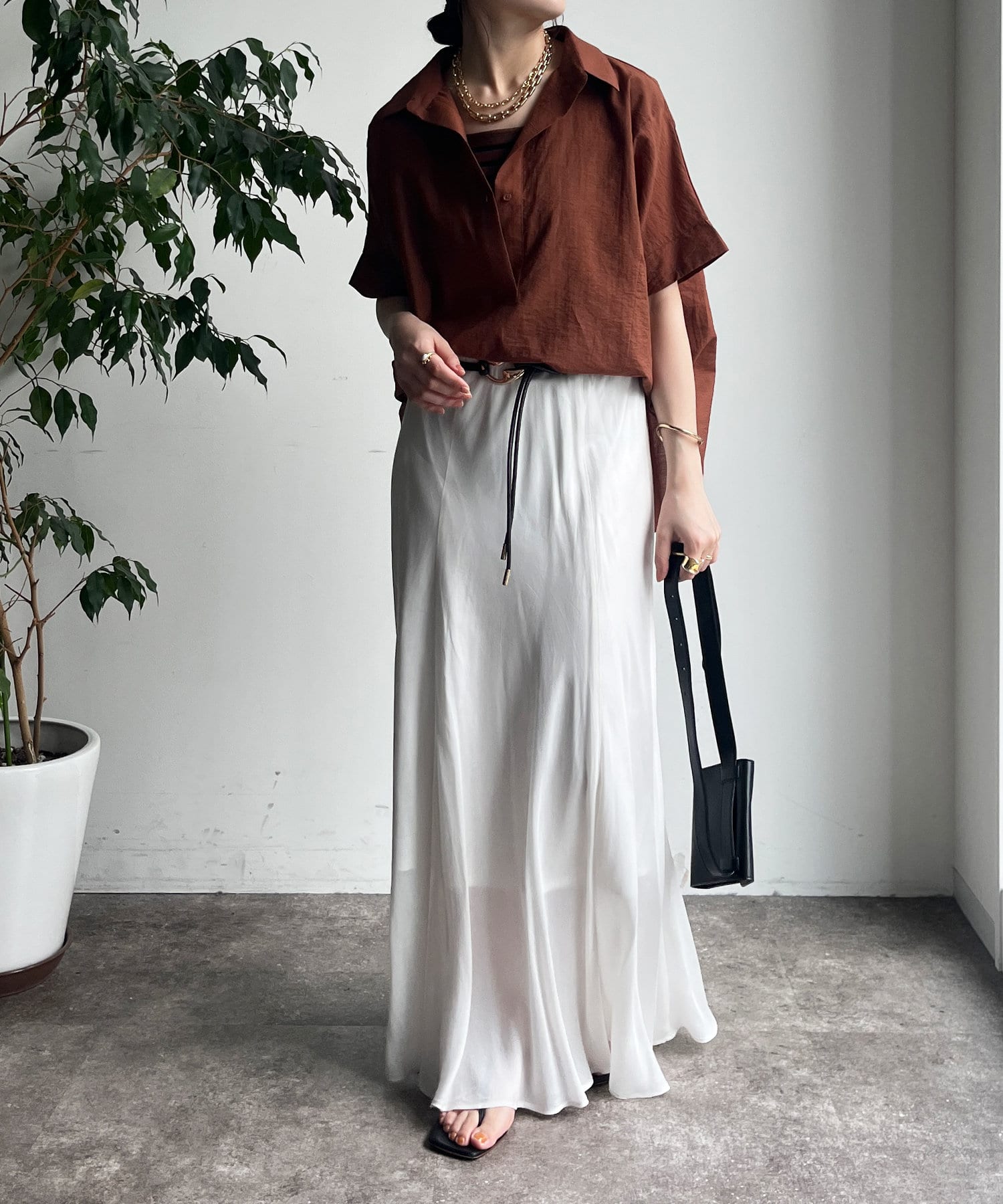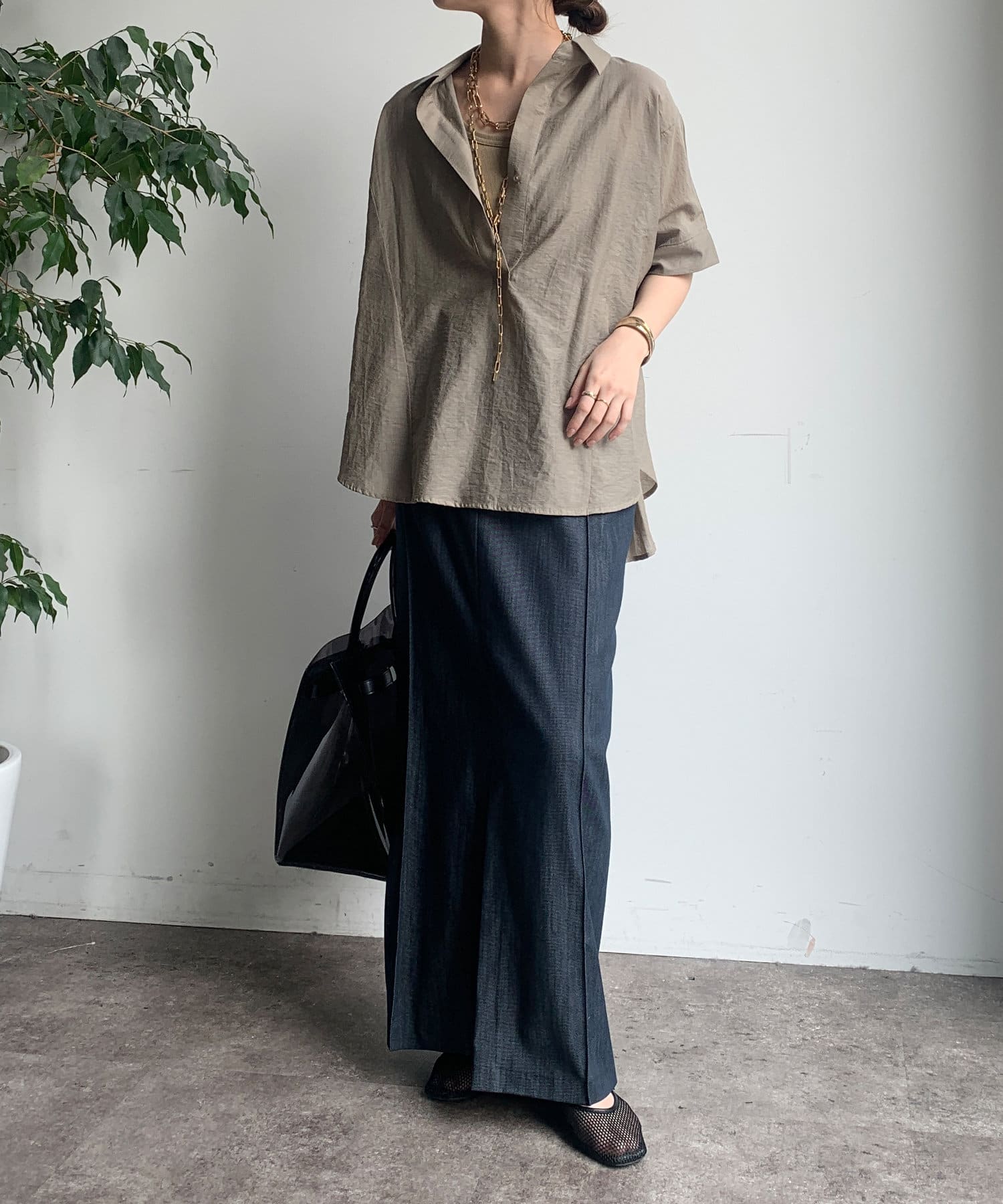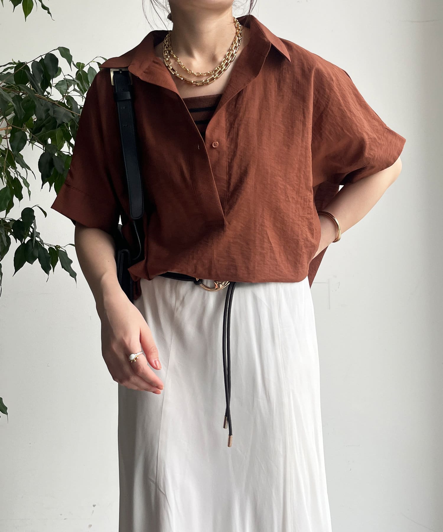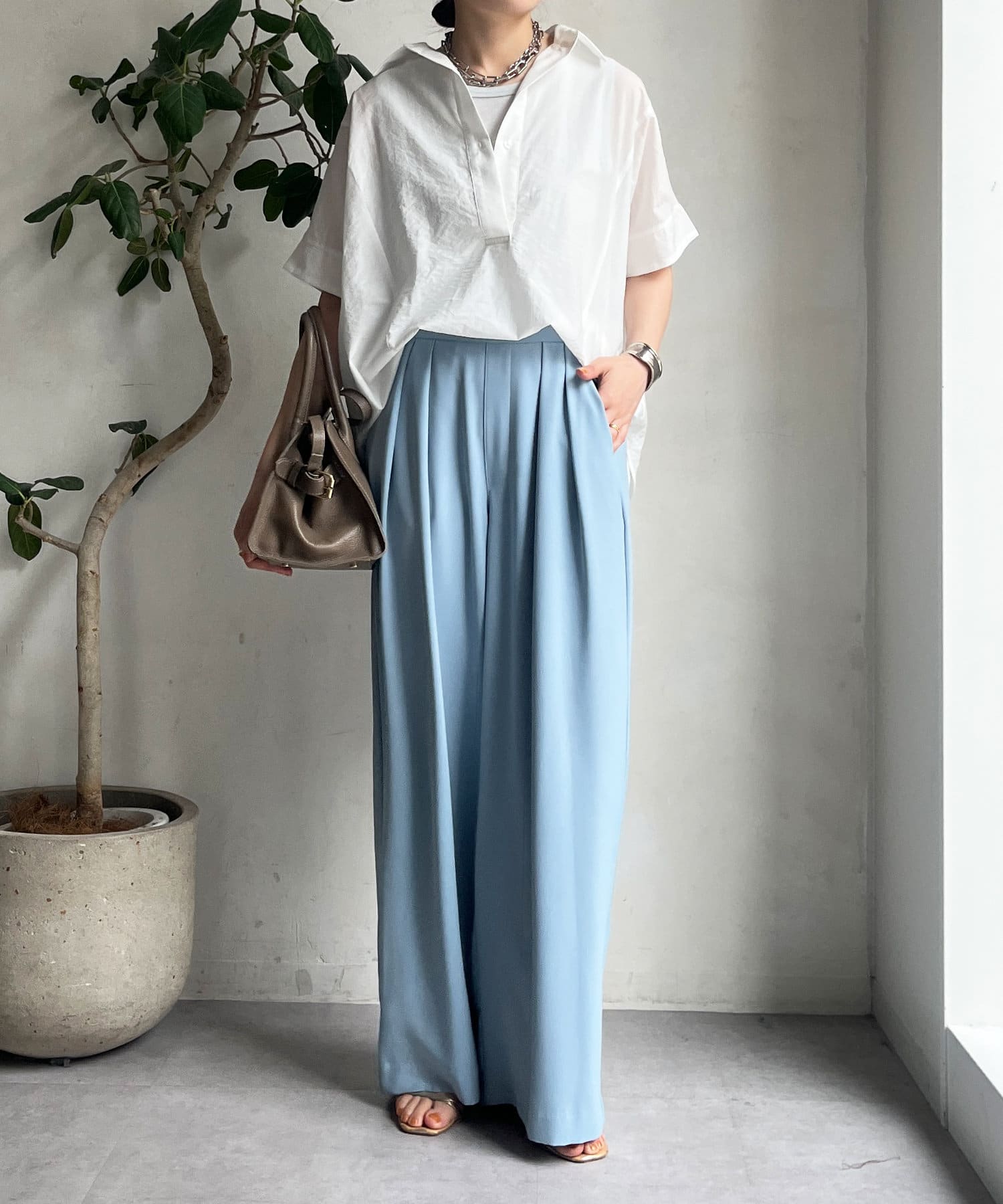 甘めのスカート合わせやゆるっとシルエットのパンツなど、夏のリラクシースタイルにぴったりな1着。