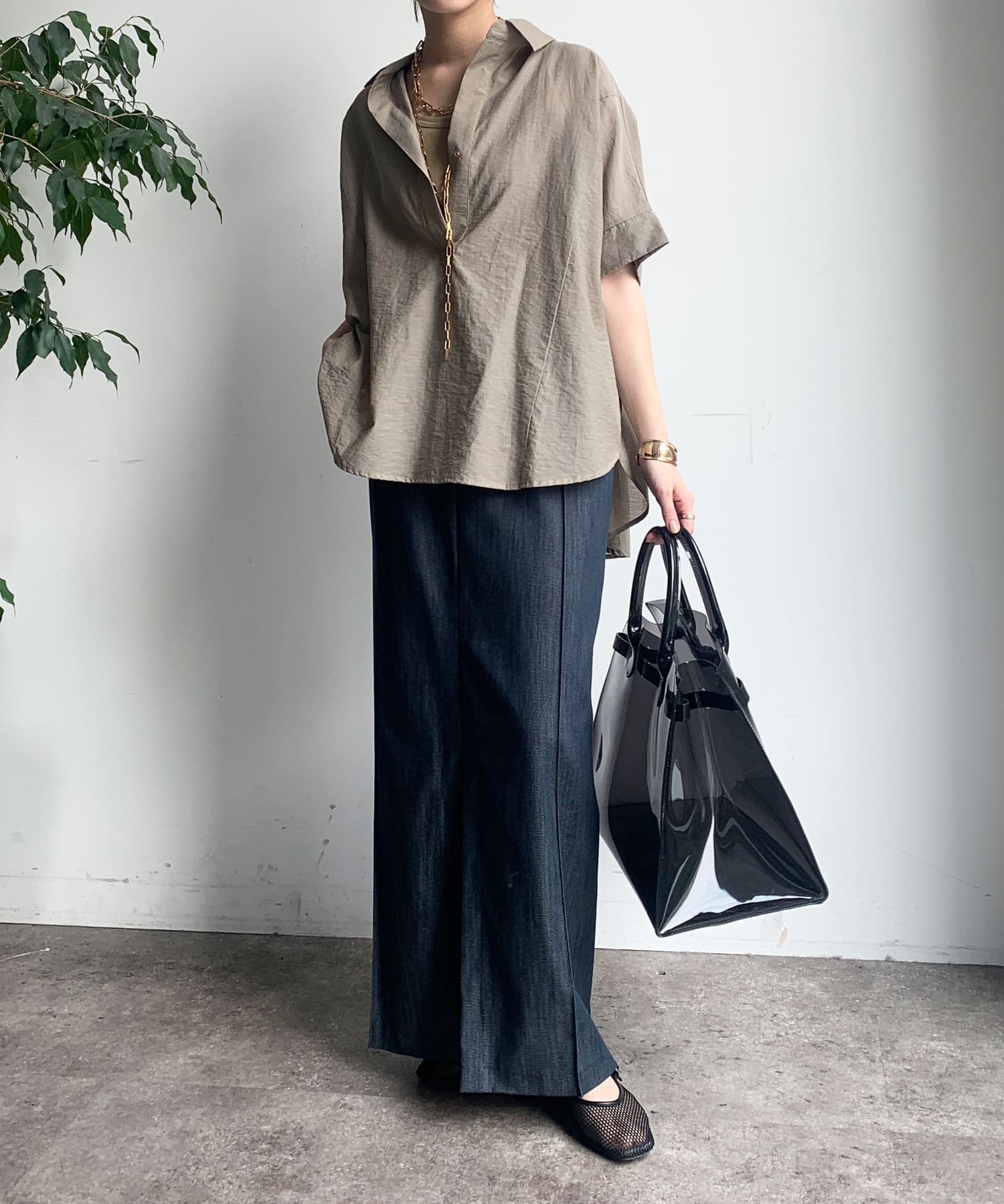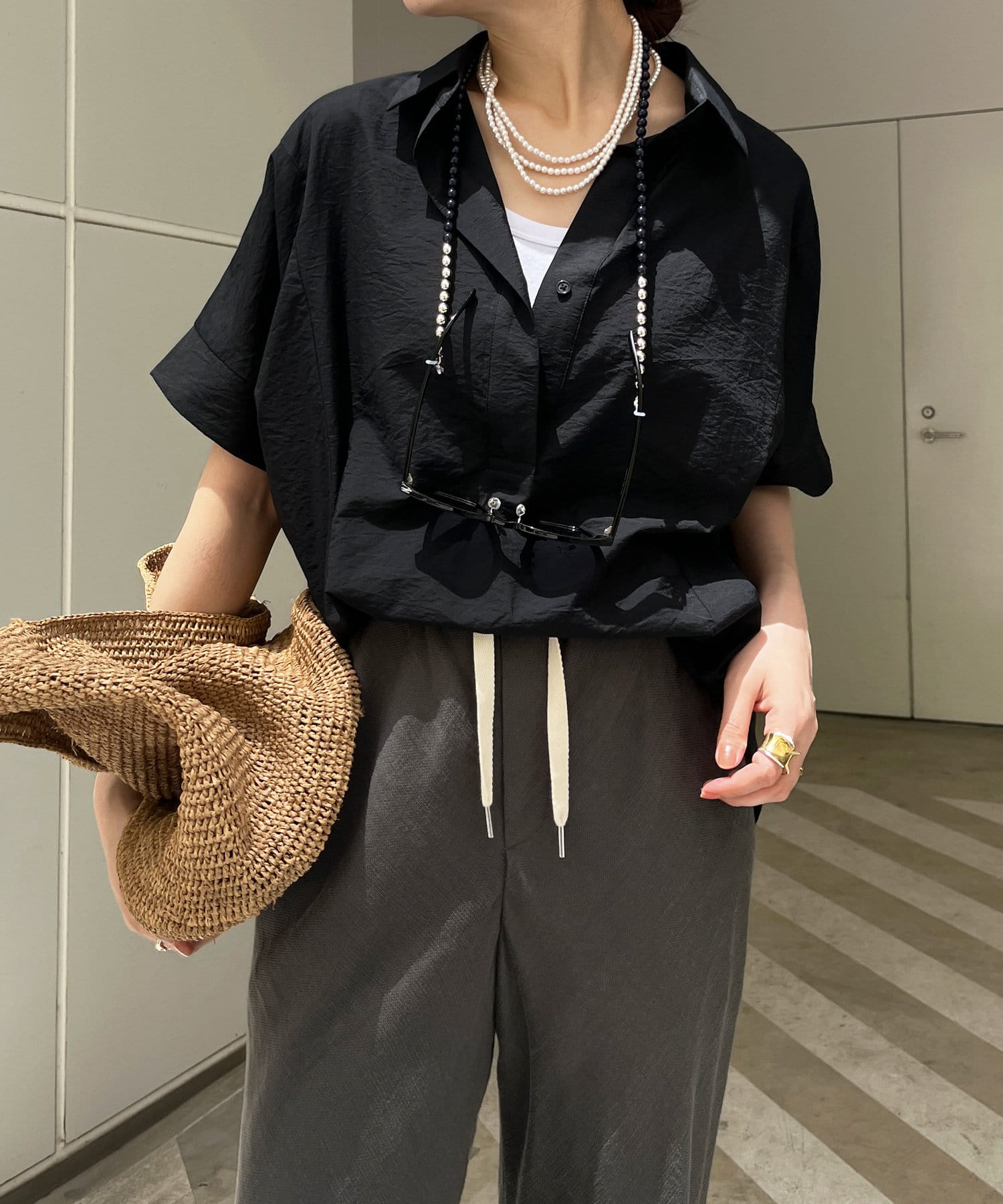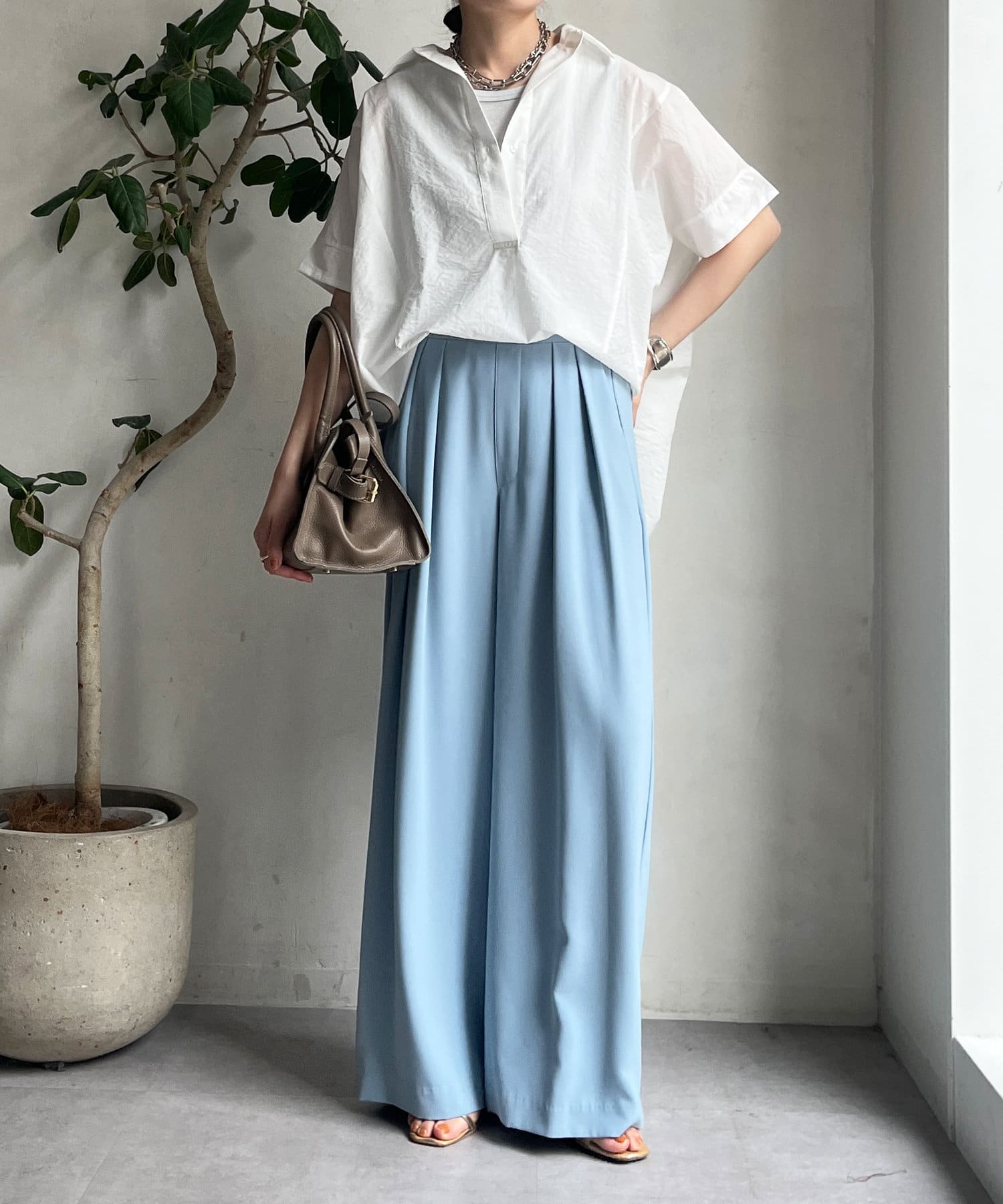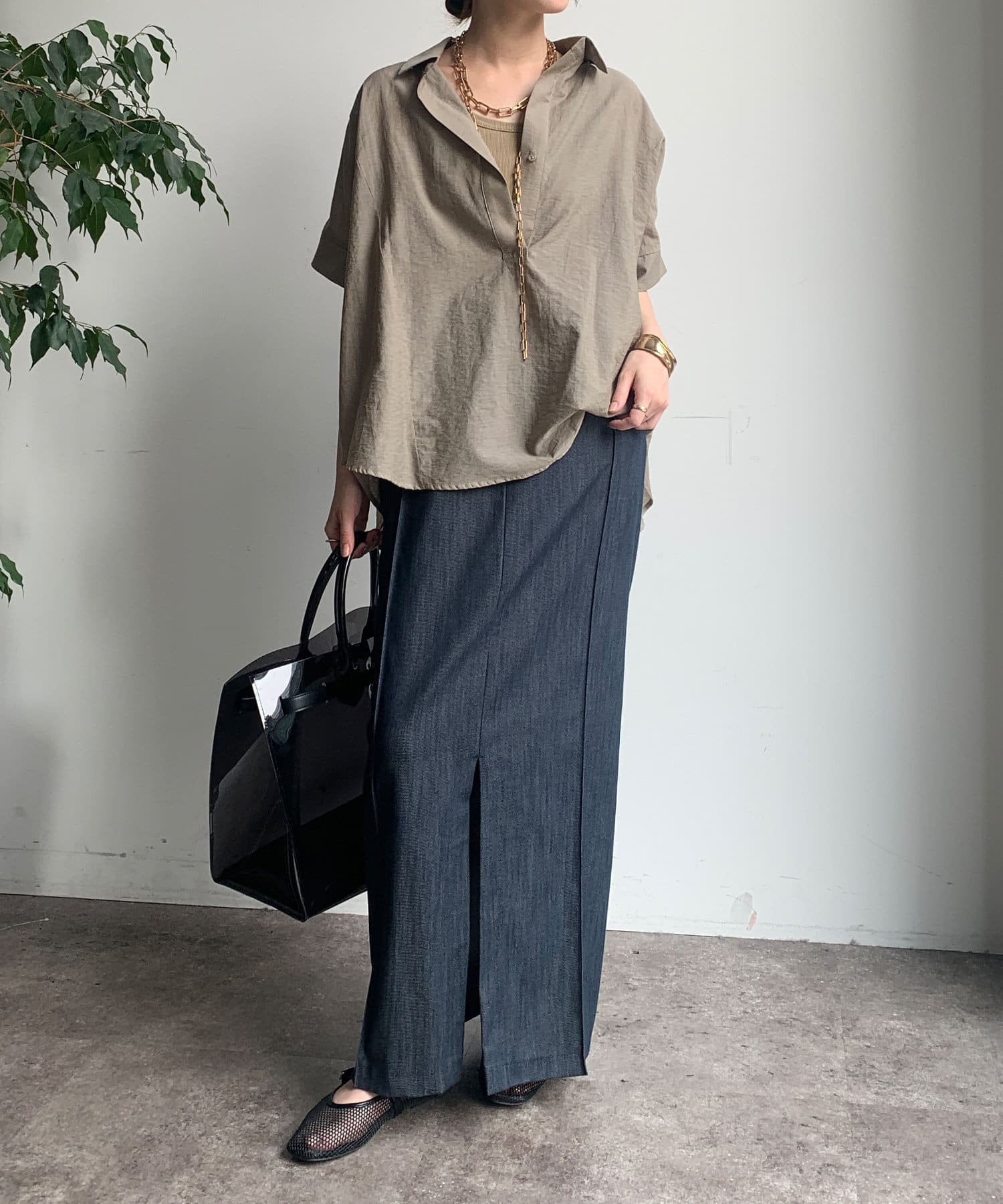 甘めのスカート合わせやゆるっとシルエットのパンツなど、夏のリラクシースタイルにぴったりな1着。