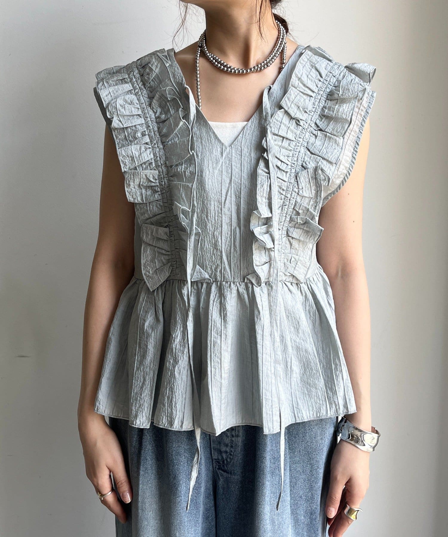 たっぷりのフリルが目を引くサマーベスト