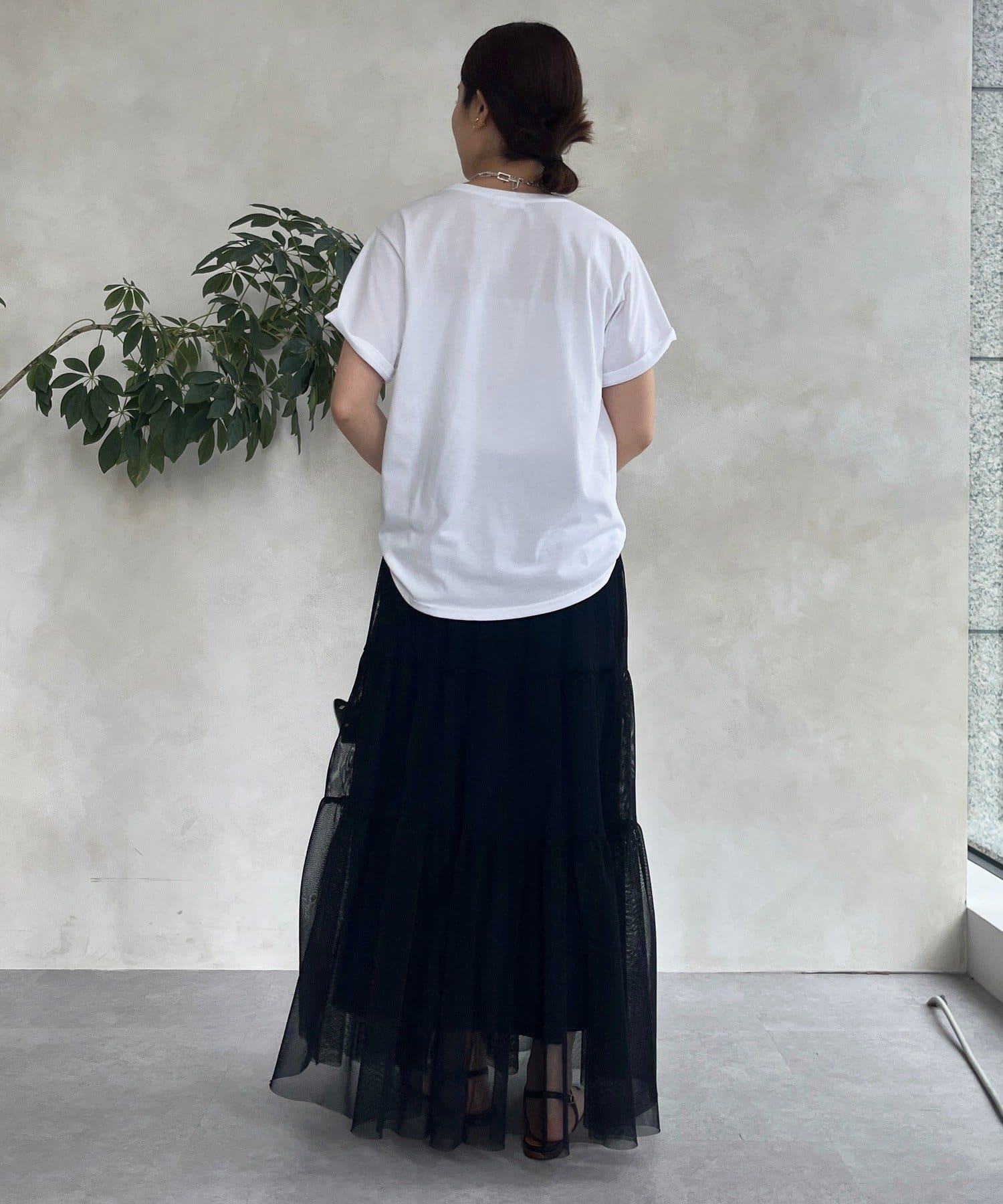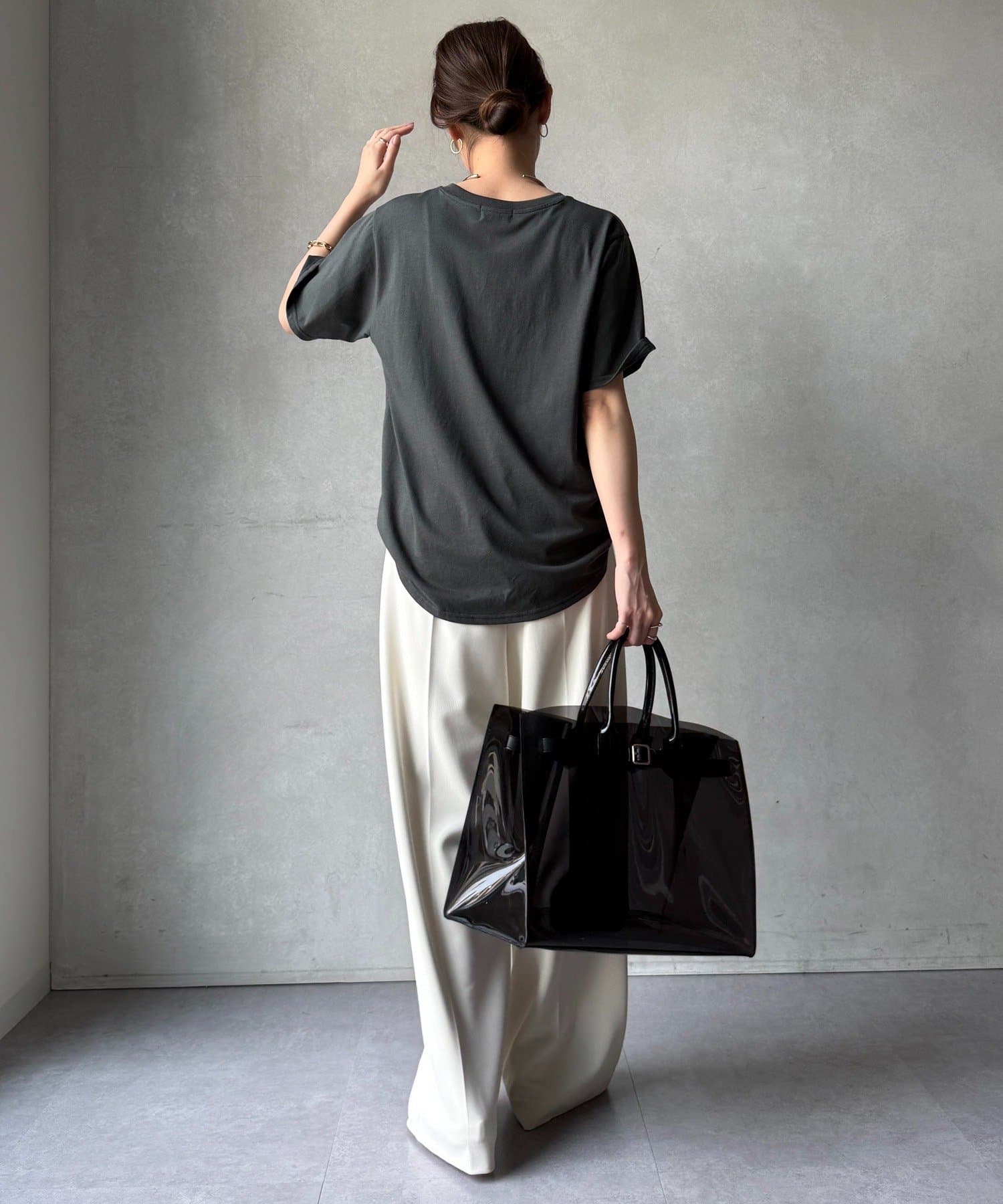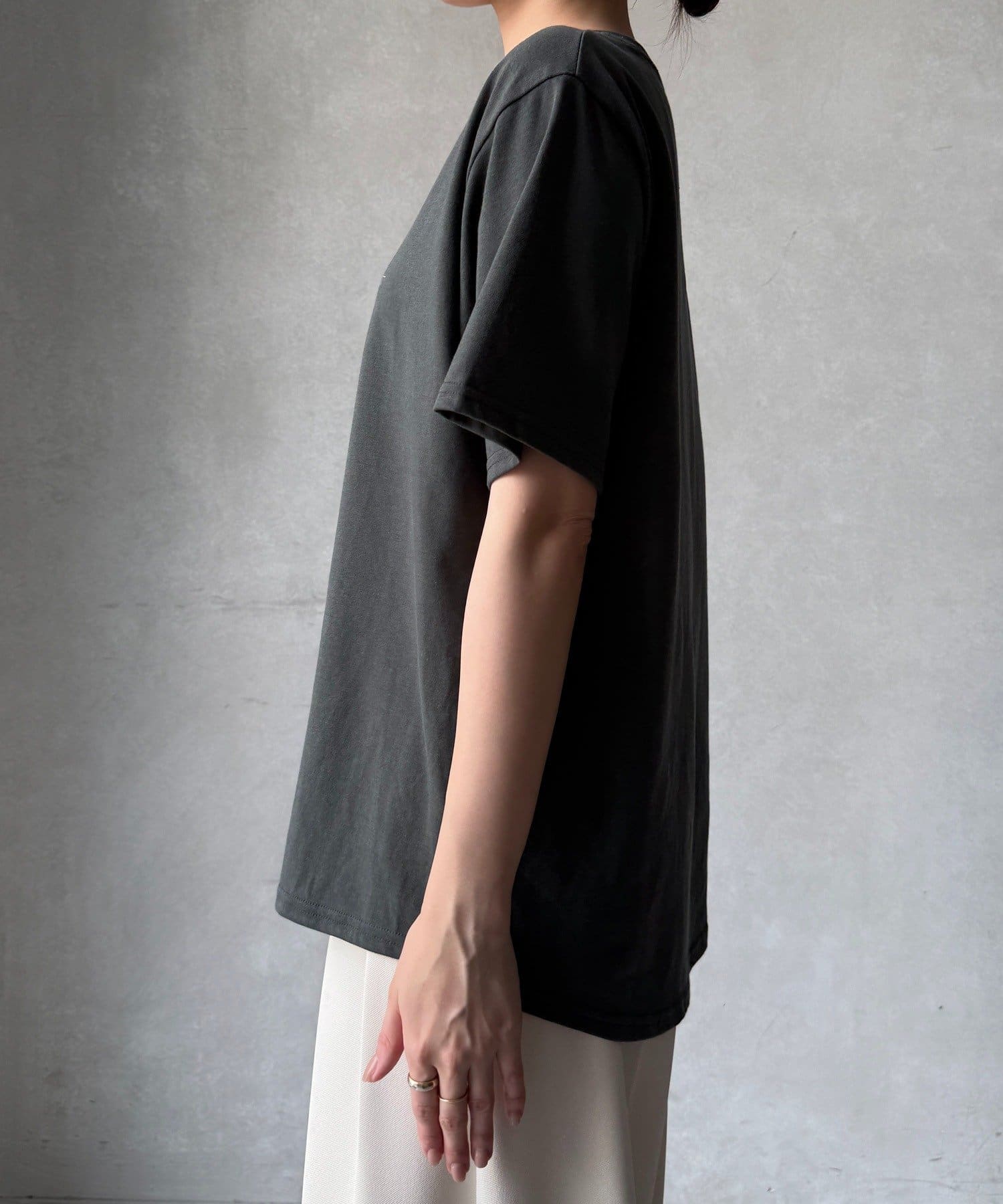 シルエットは、ボディラインを拾いすぎない、程よくゆとりのあるフィット感です。