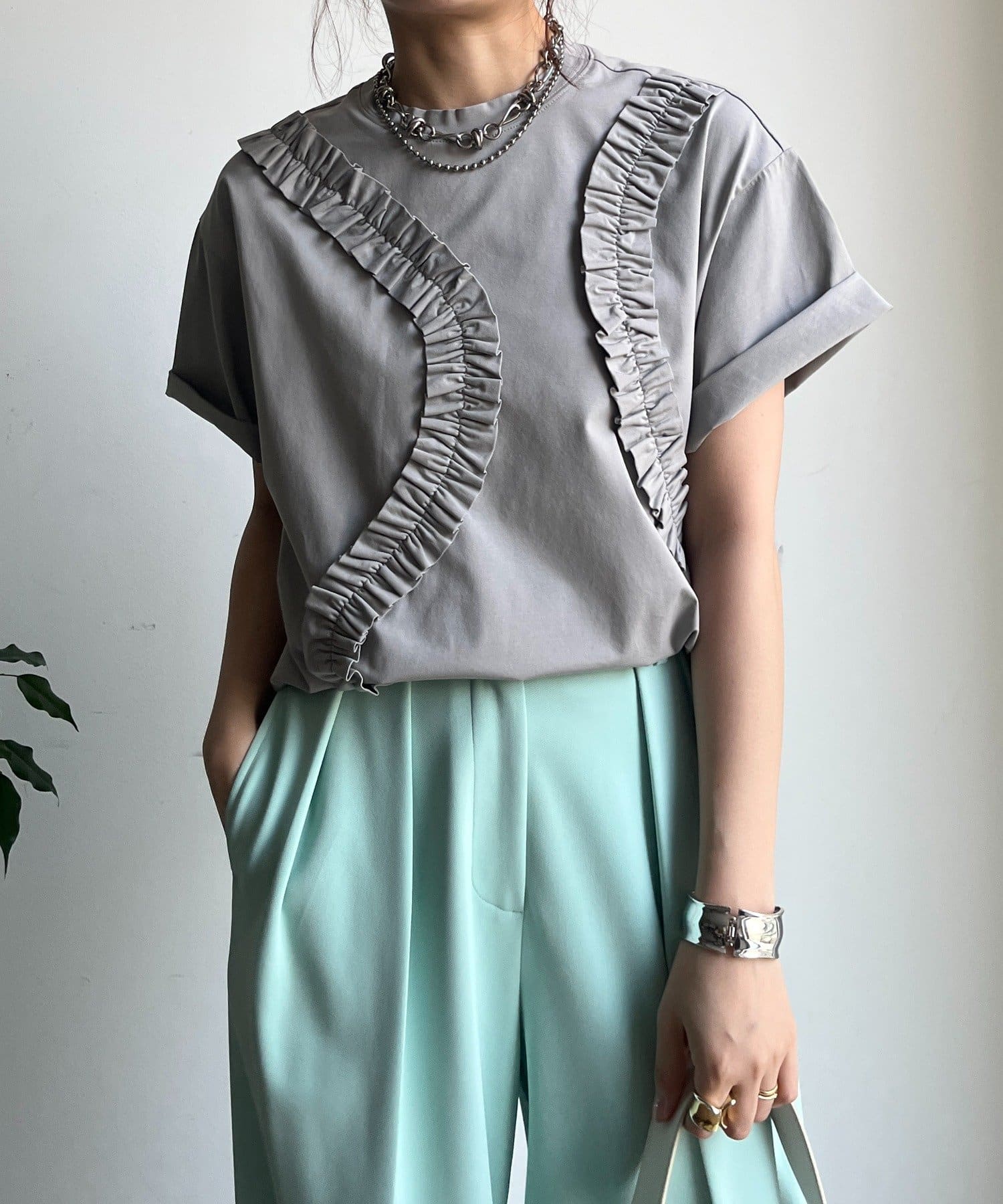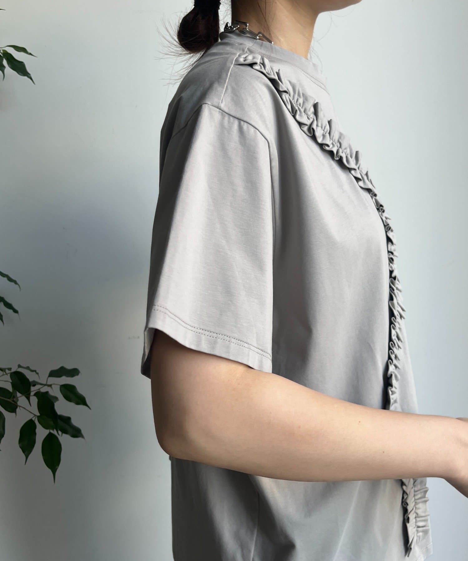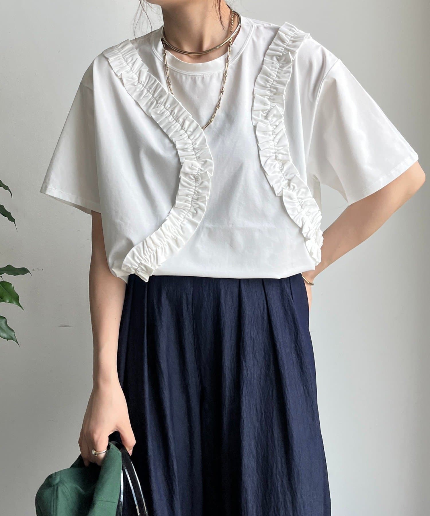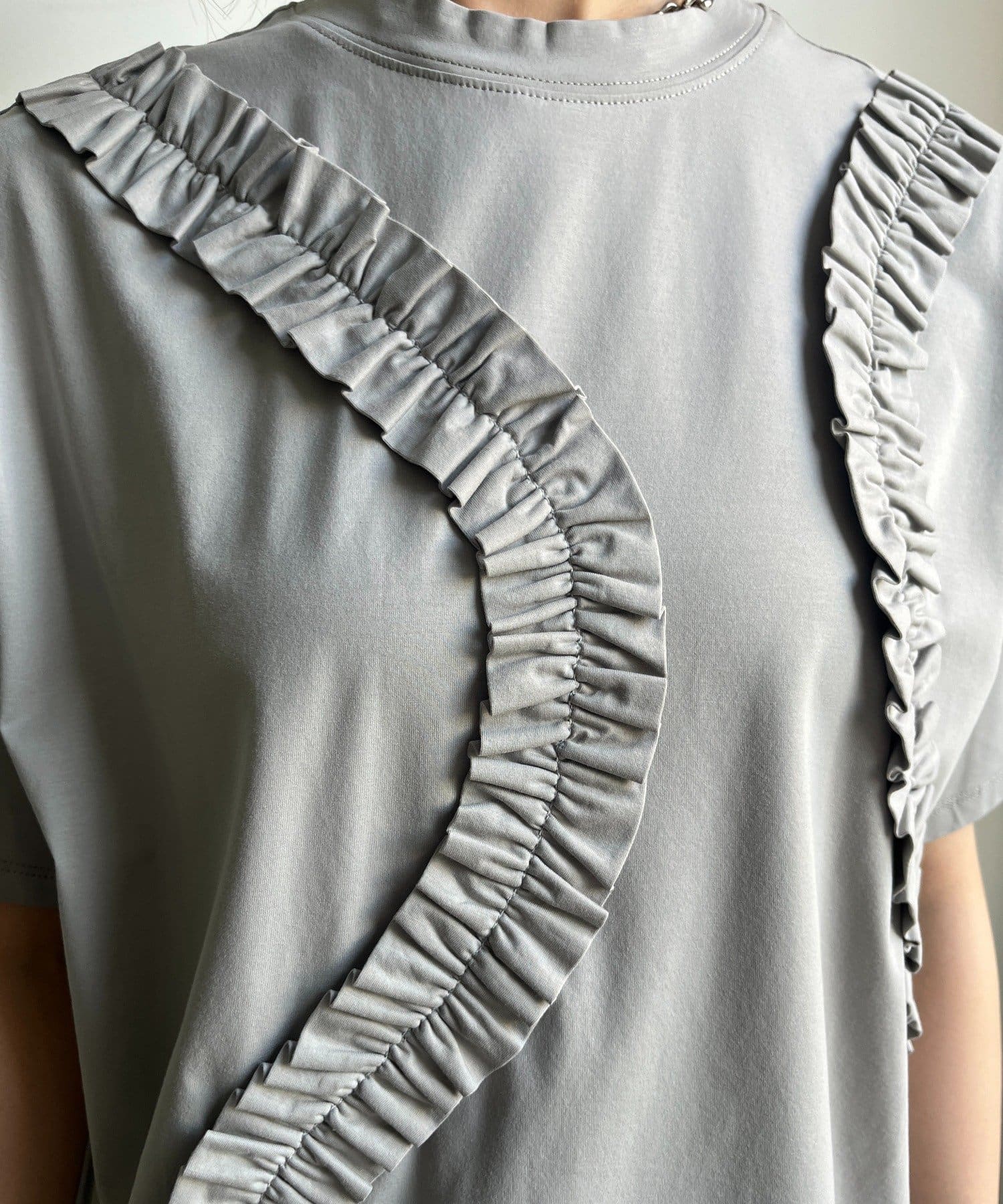 甘さを抑えた大人のためのフリルデザインがポイントのTEE