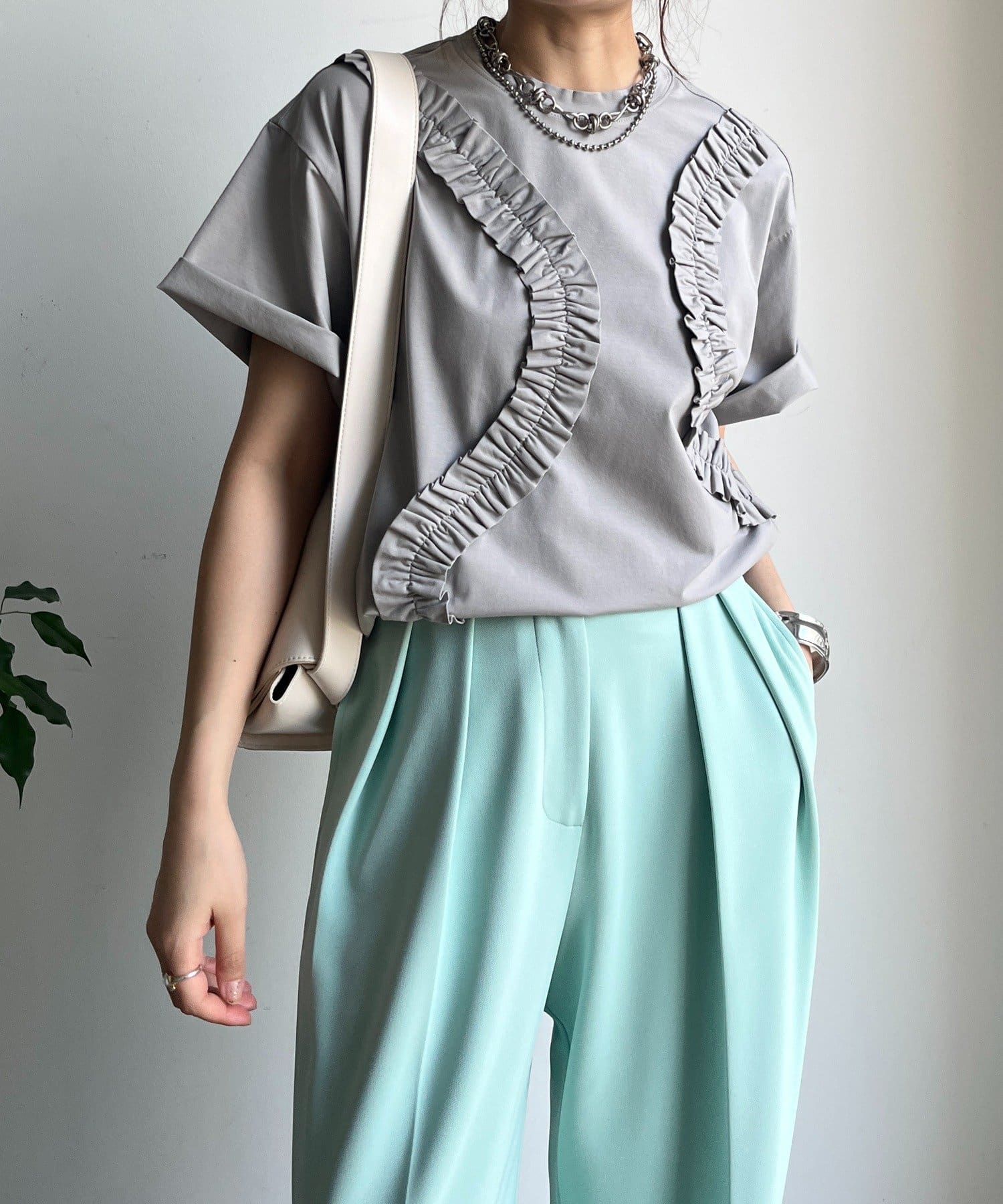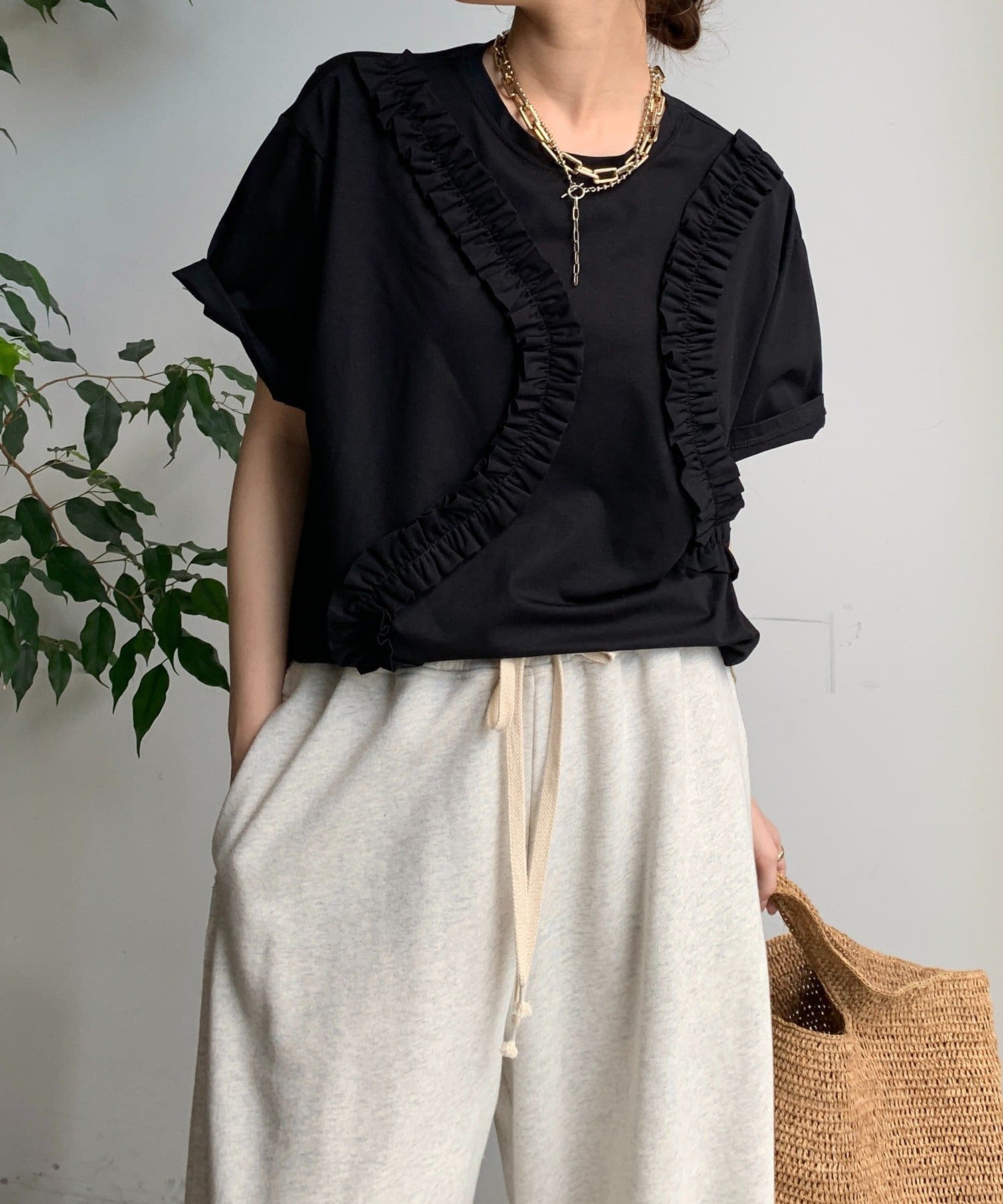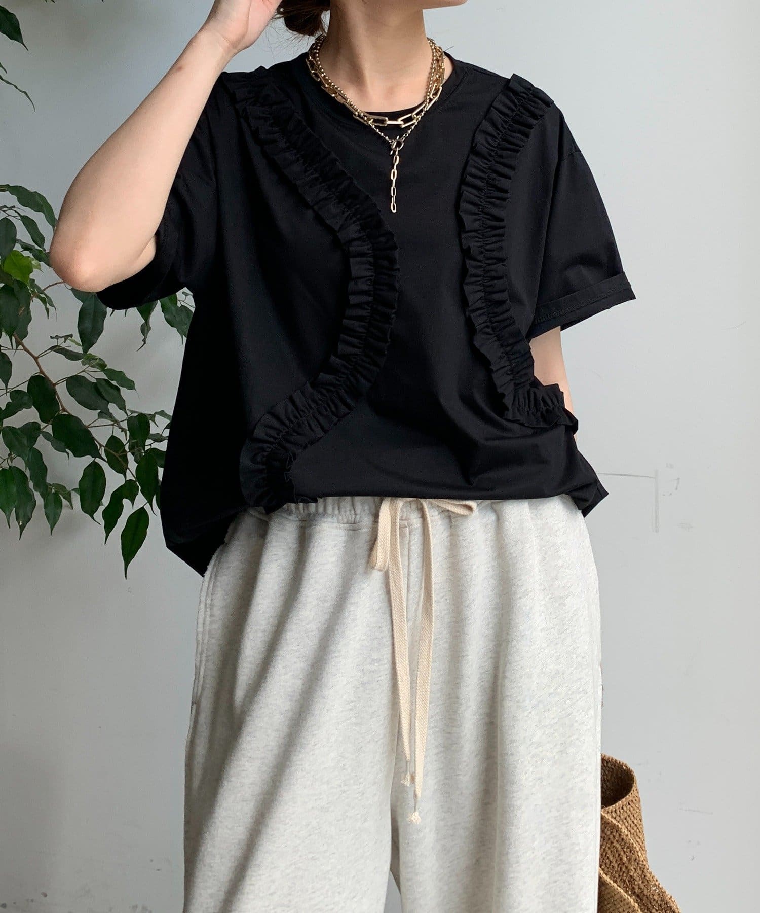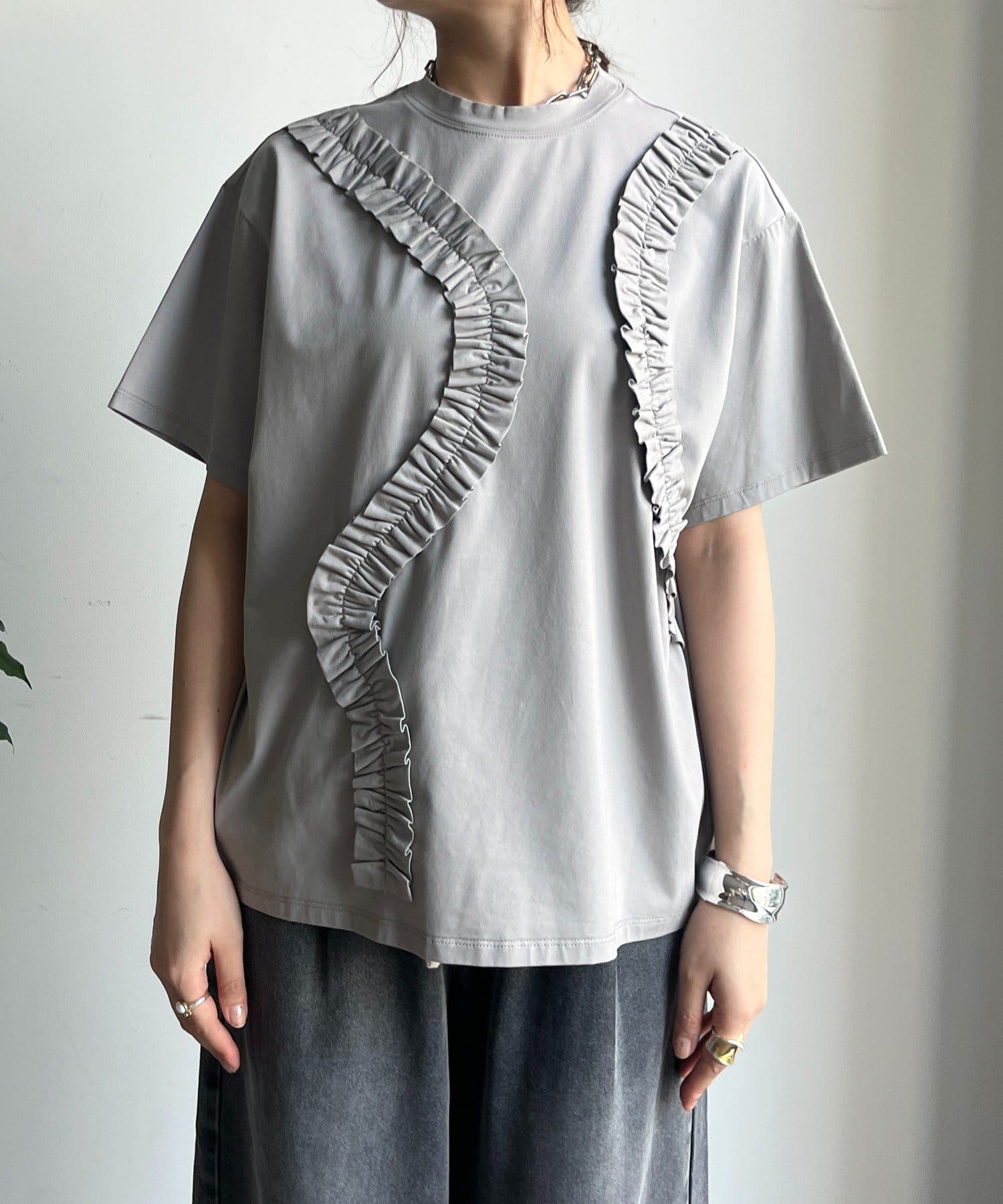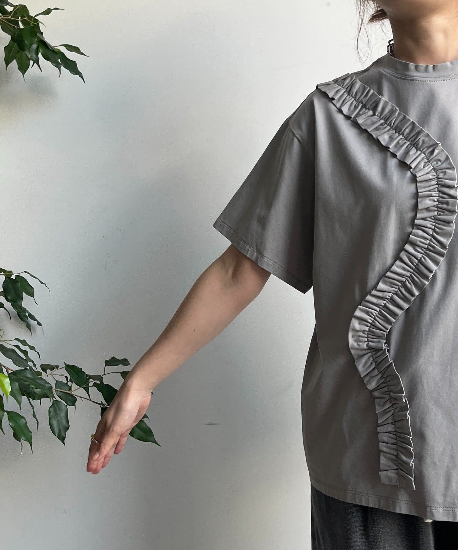 甘さを抑えた大人のためのフリルデザインがポイントのTEE