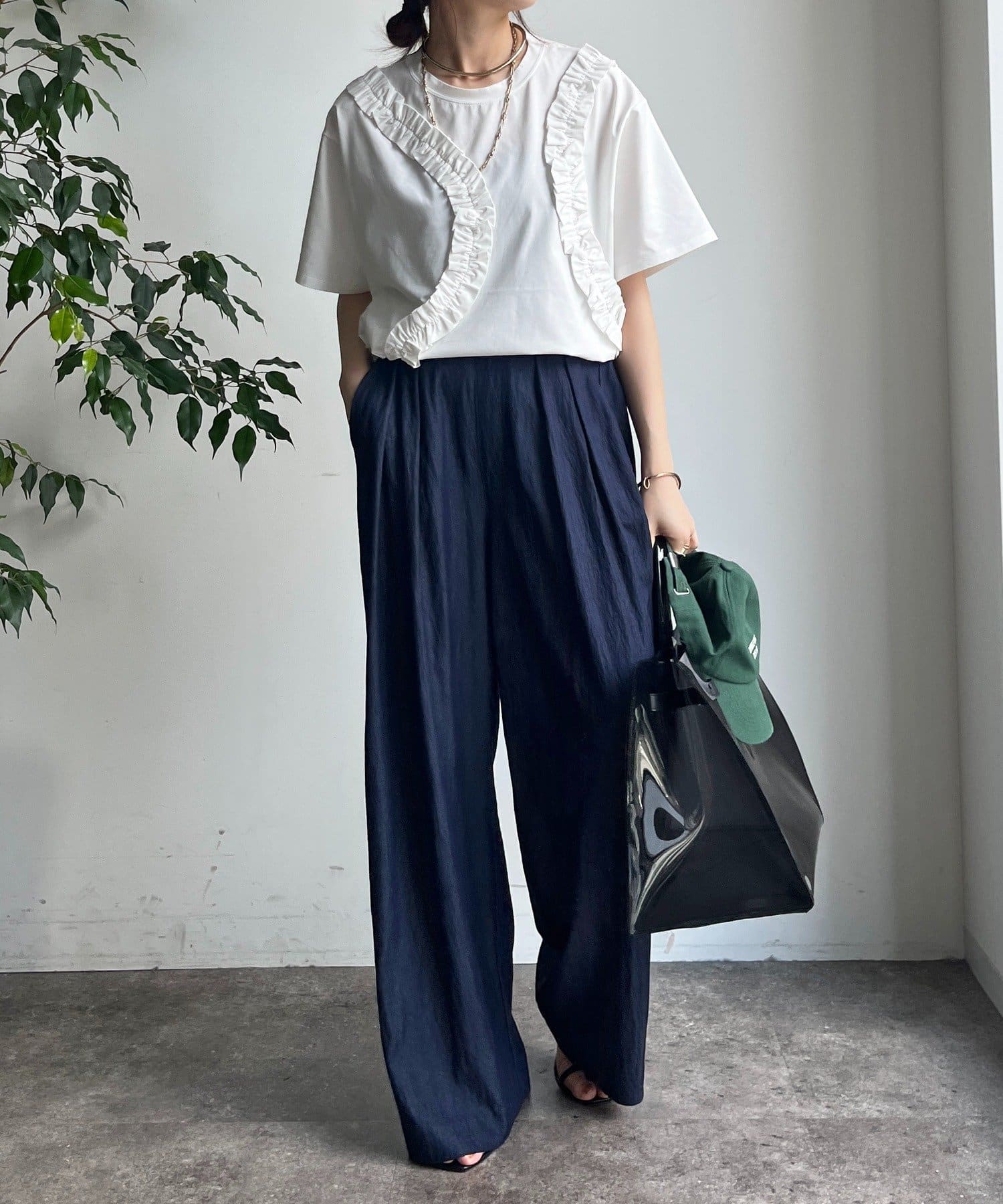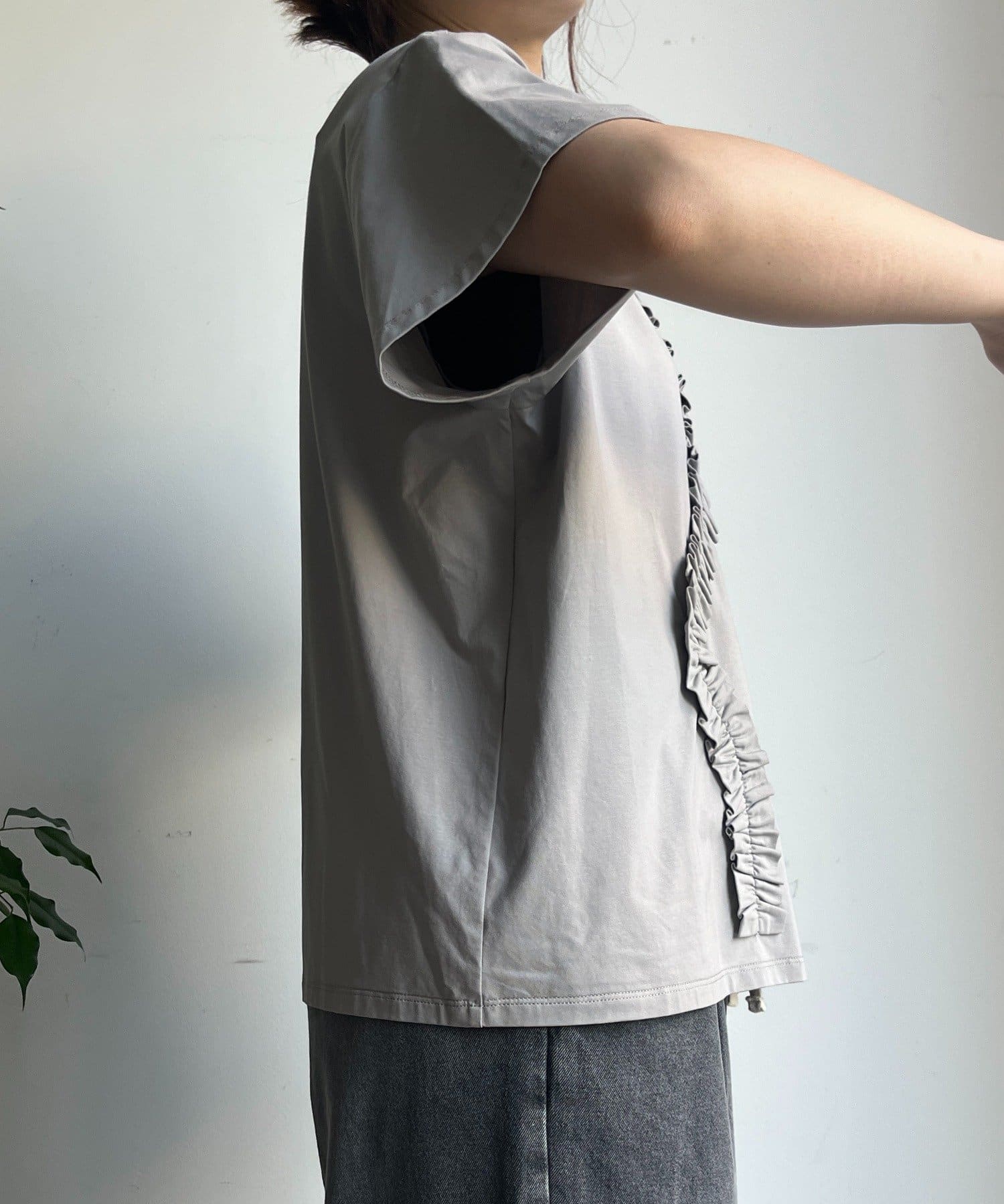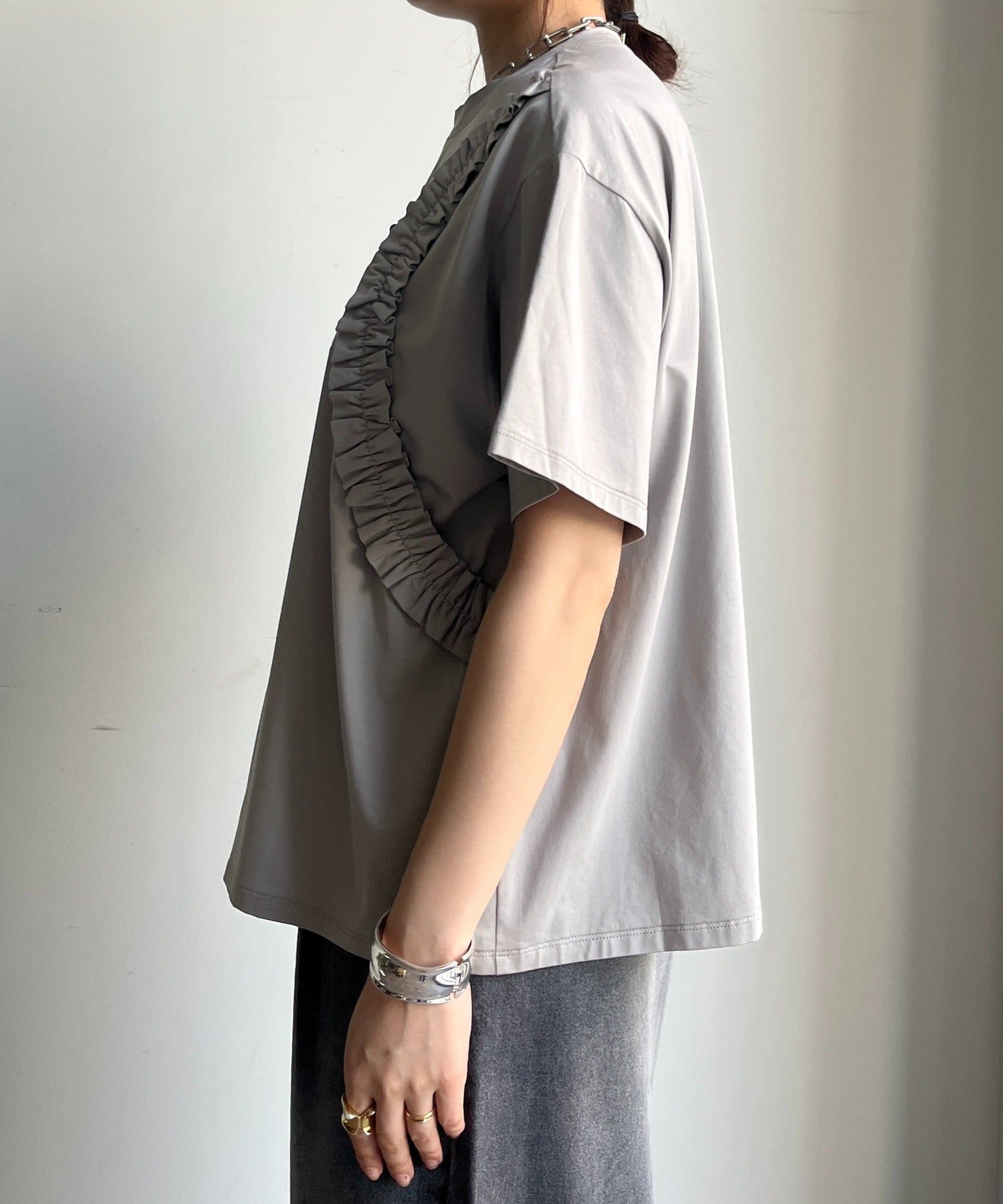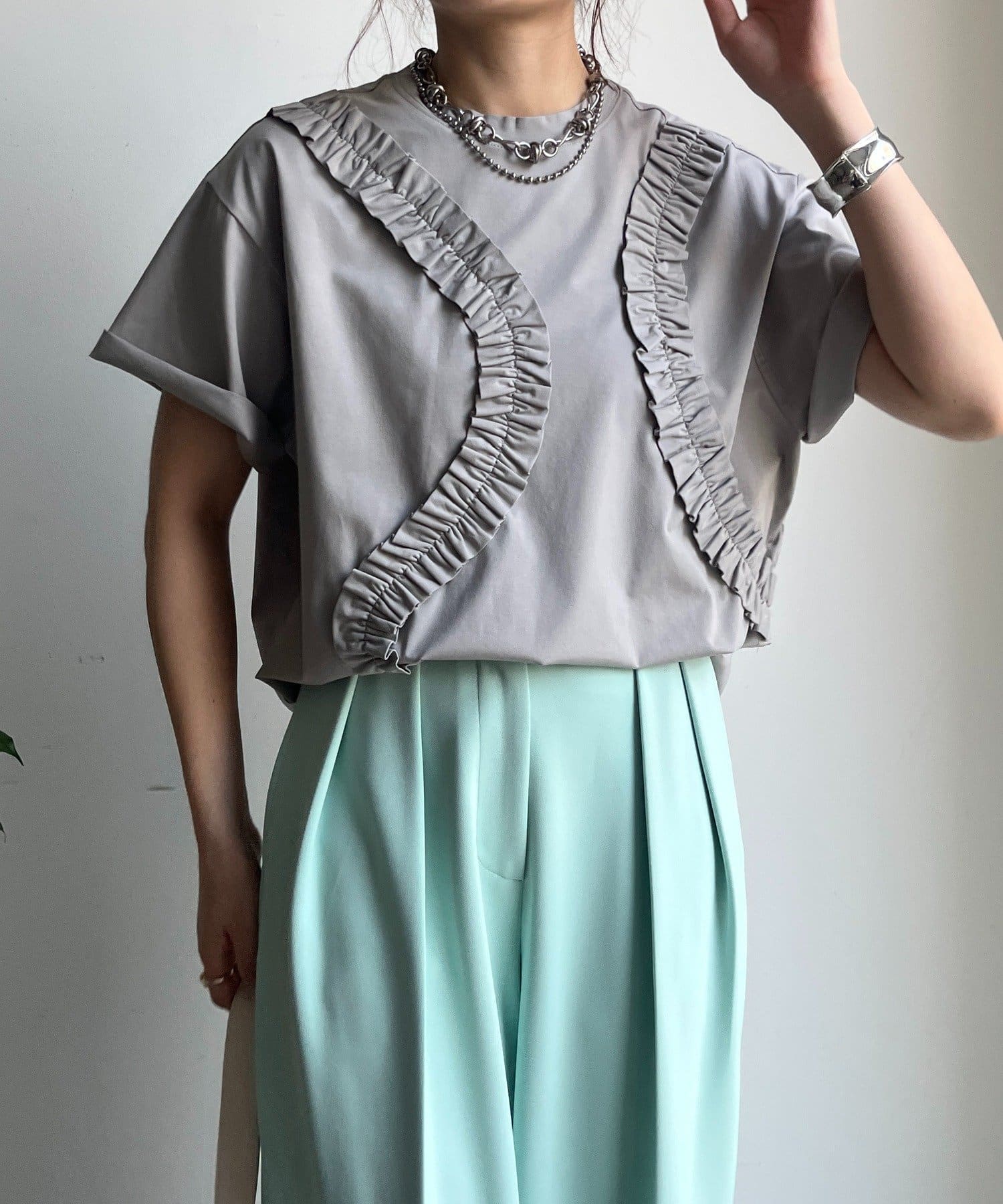 甘さを抑えた大人のためのフリルデザインがポイントのTEE