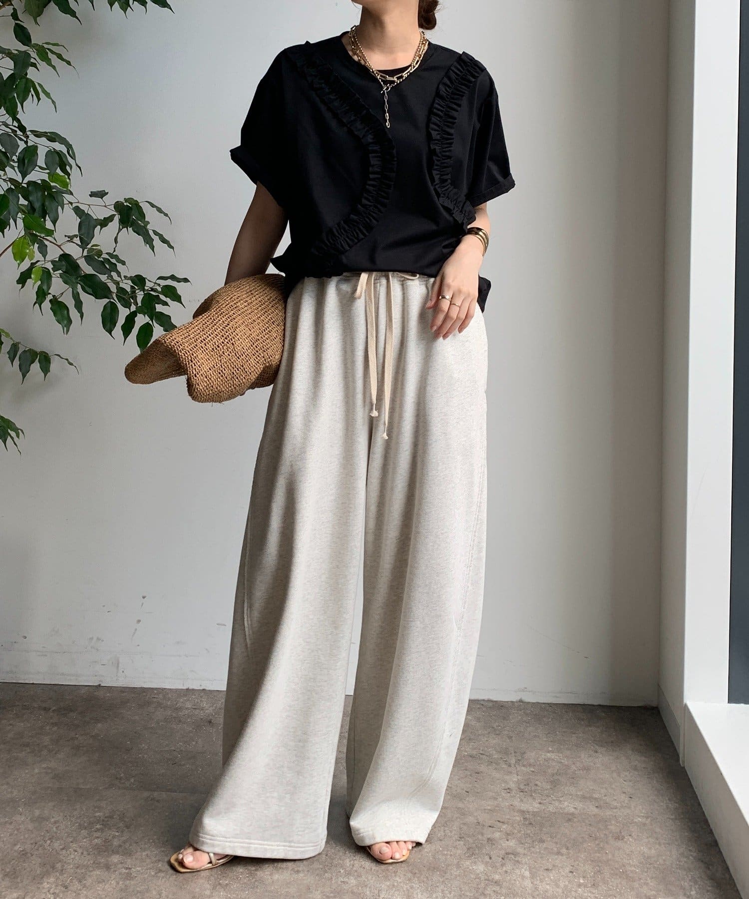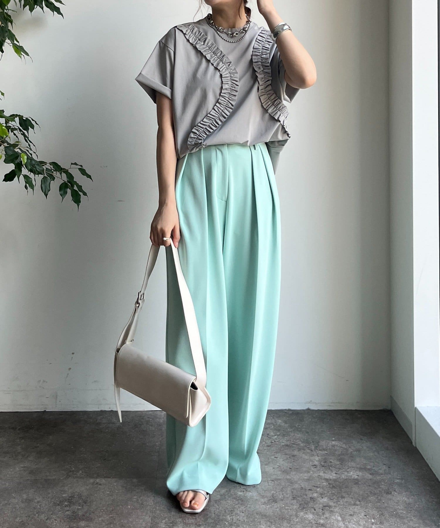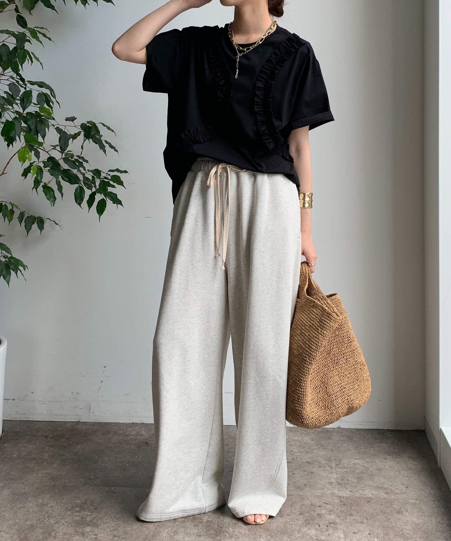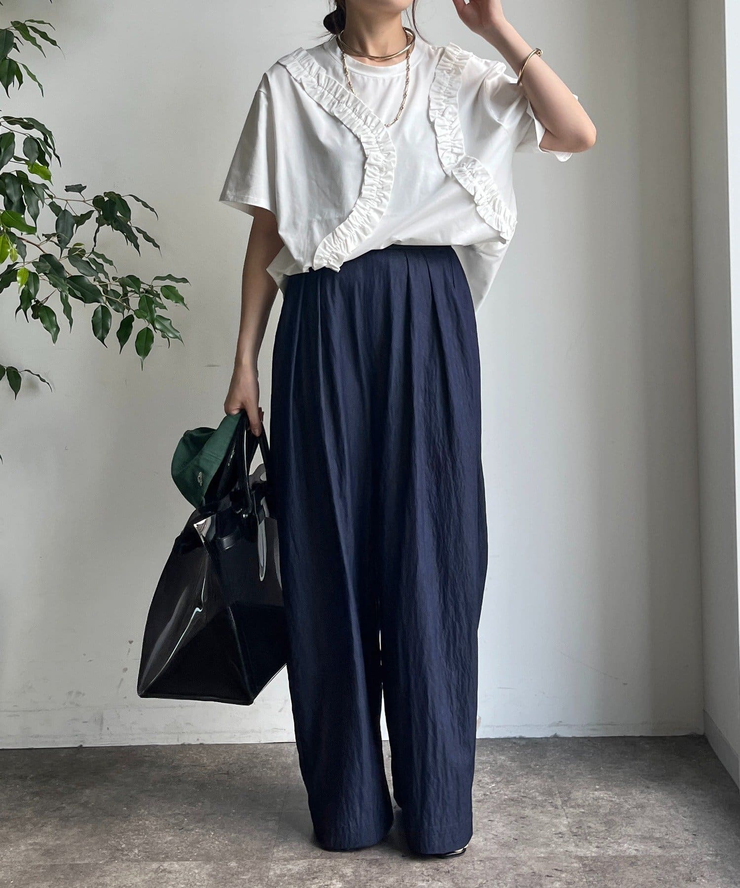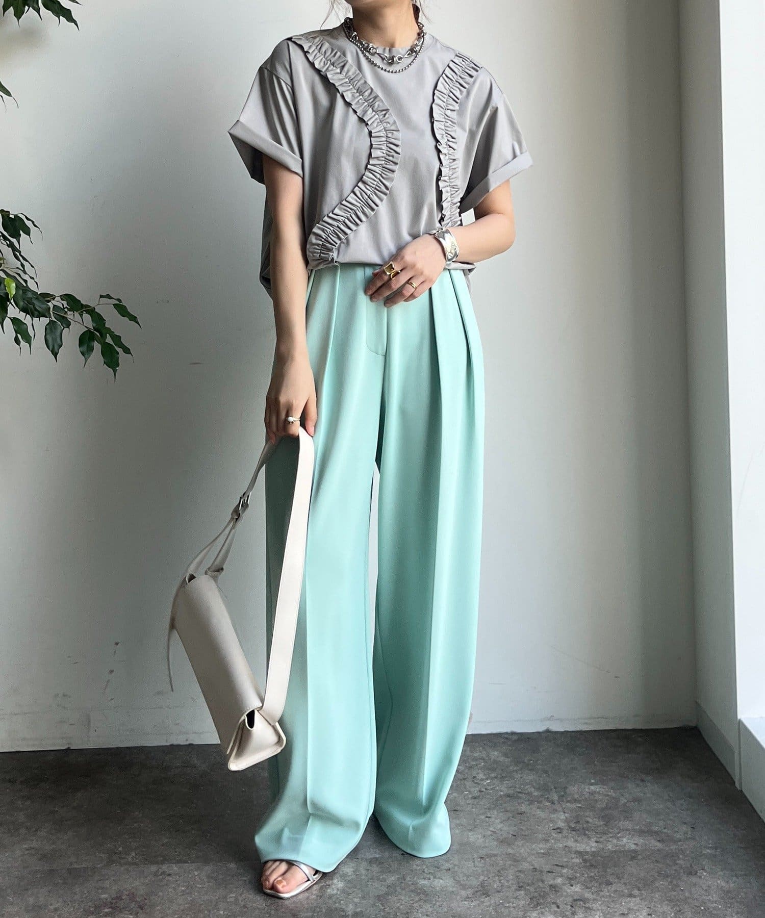 甘さを抑えた大人のためのフリルデザインがポイントのTEE