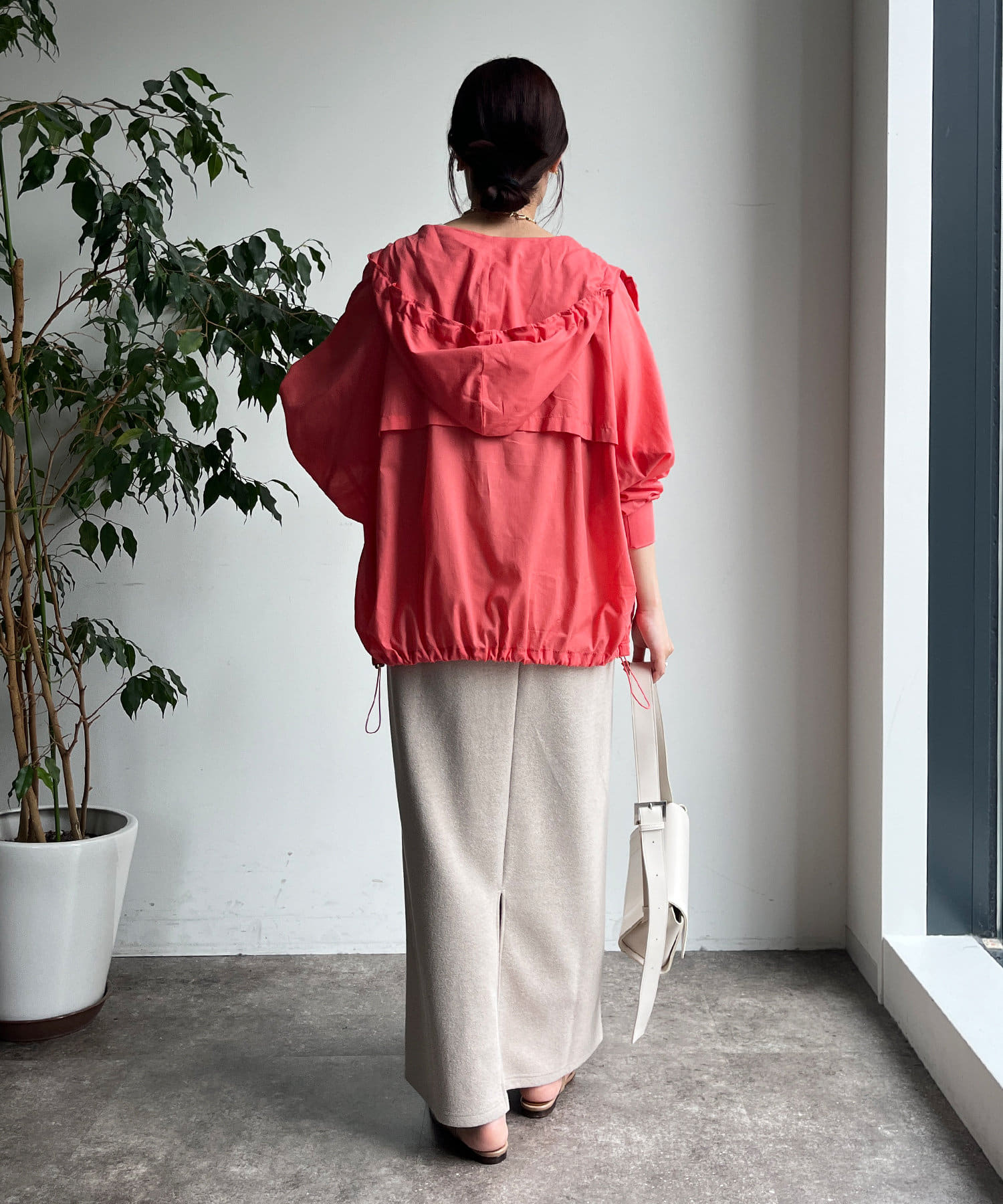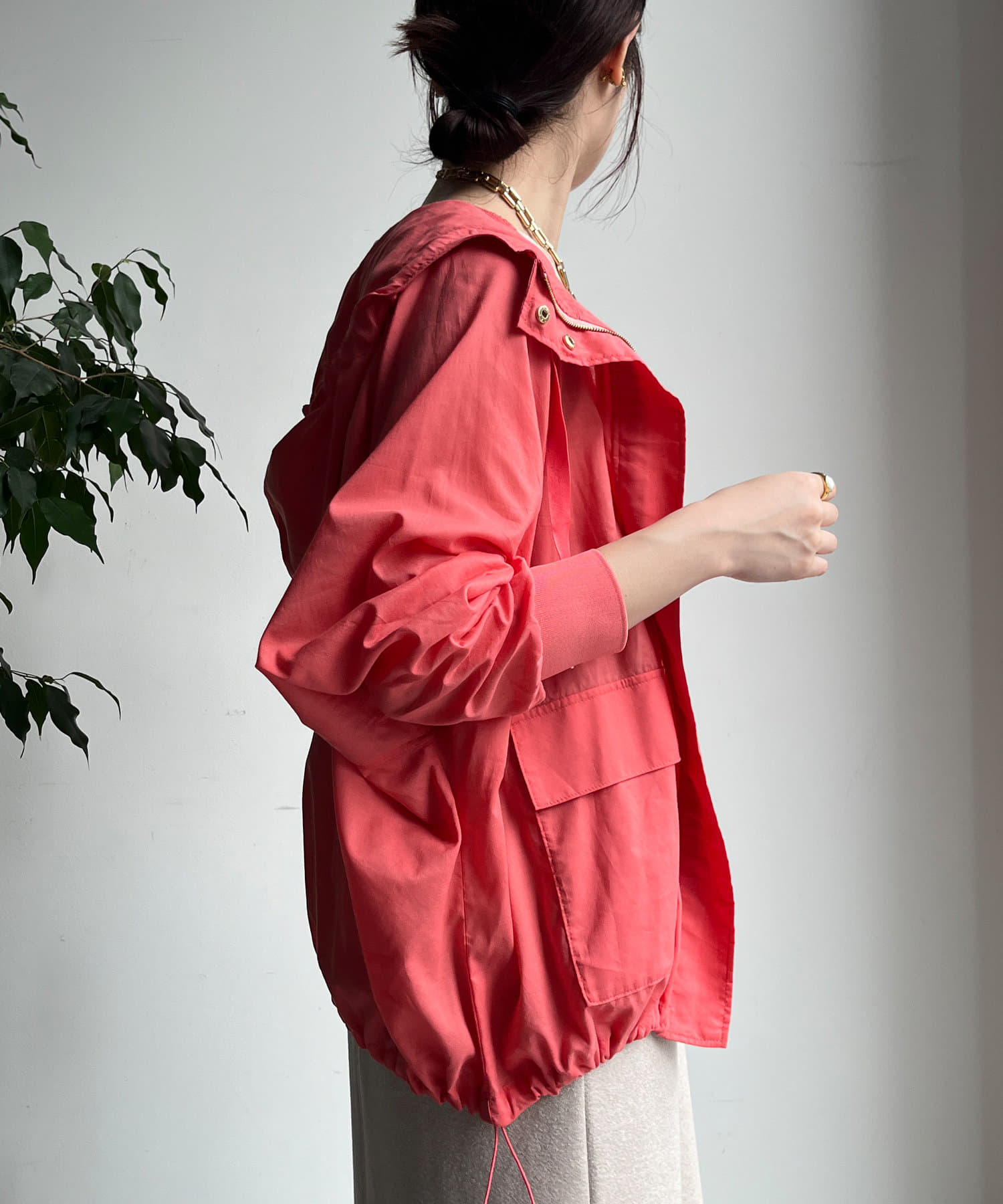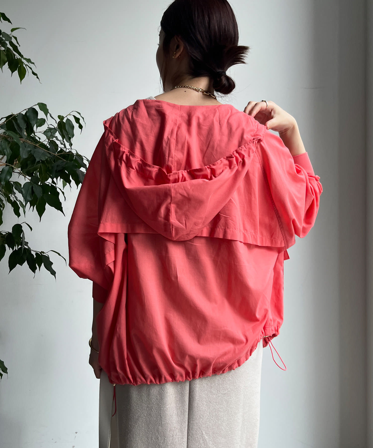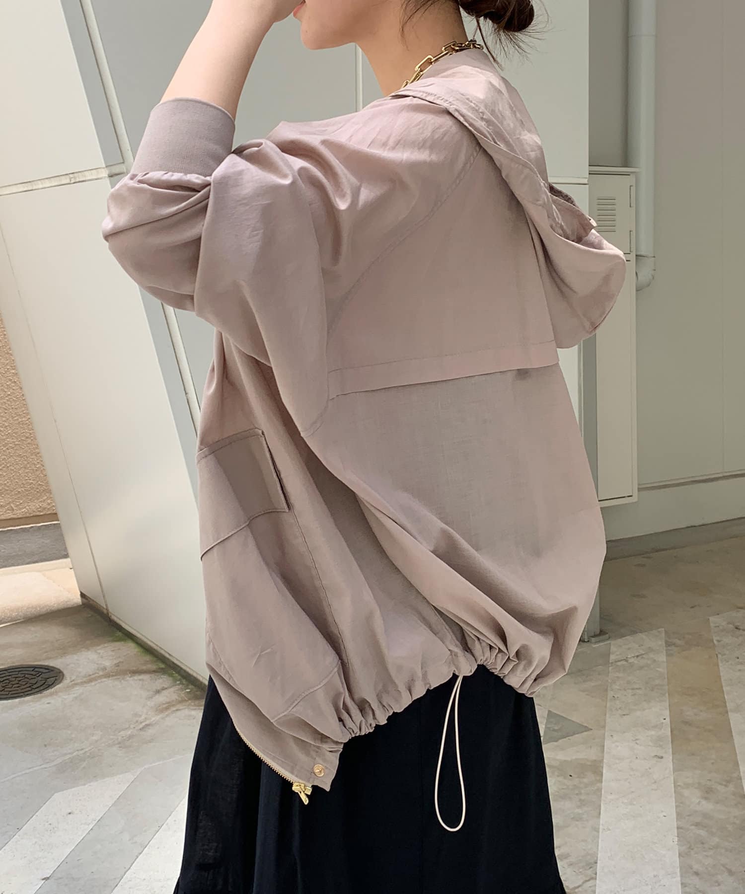 裾はドロスト仕様の為、きゅっと締めて丸みのあるシルエットへと変化を付けることも出来ますよ◎