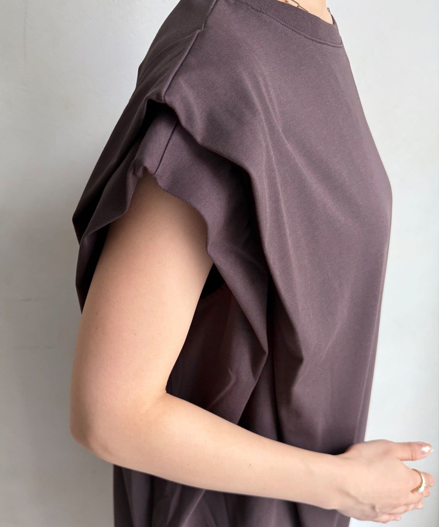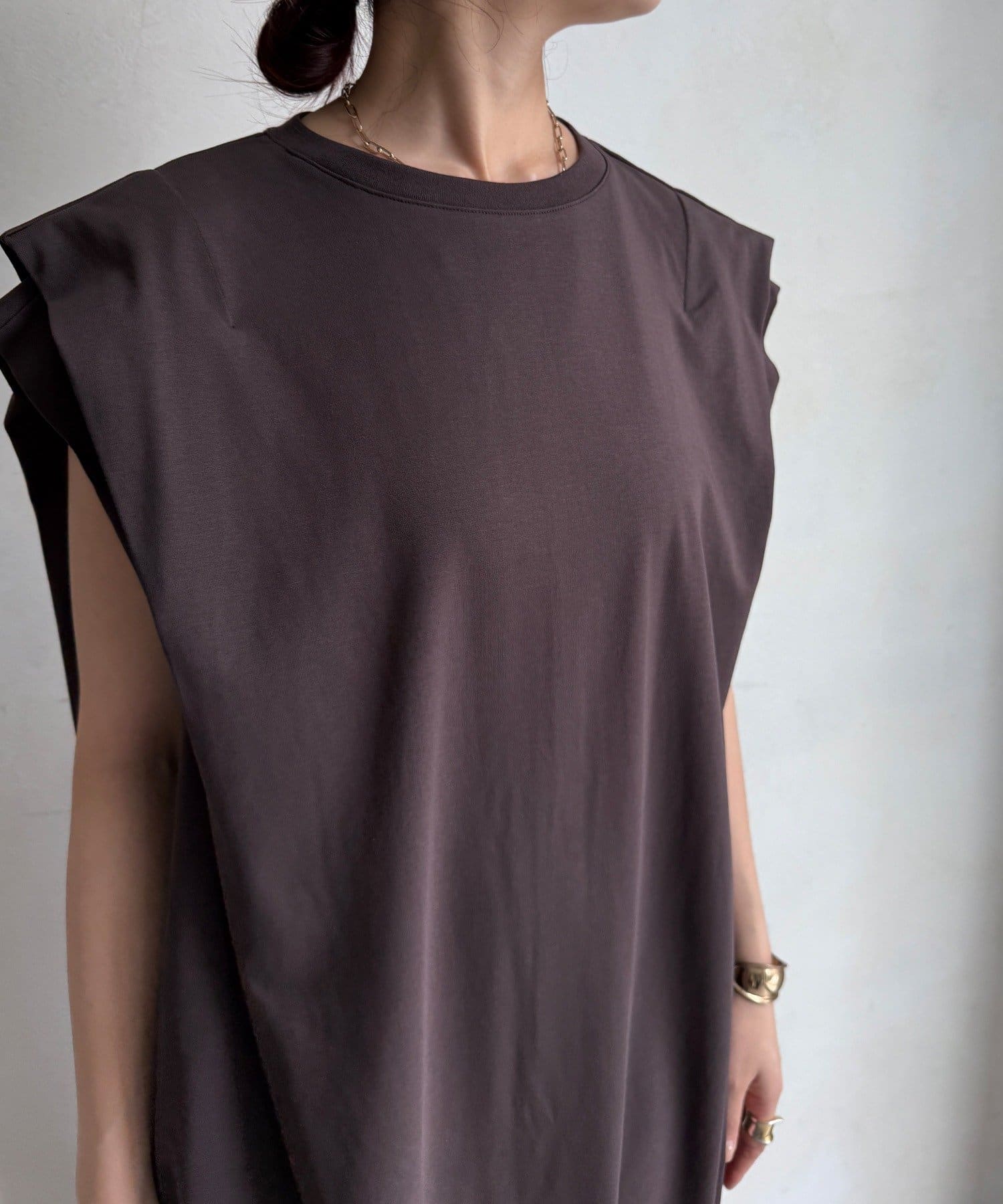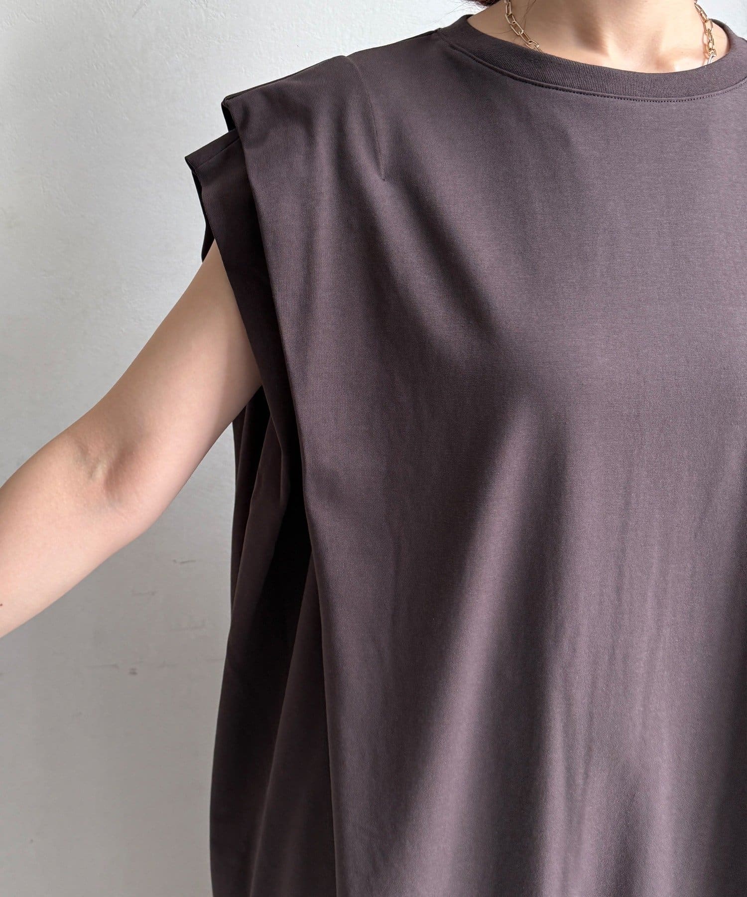 肩にほどよい立体感をもたせたデザインで、シンプルながら一癖あるシルエットが魅力。