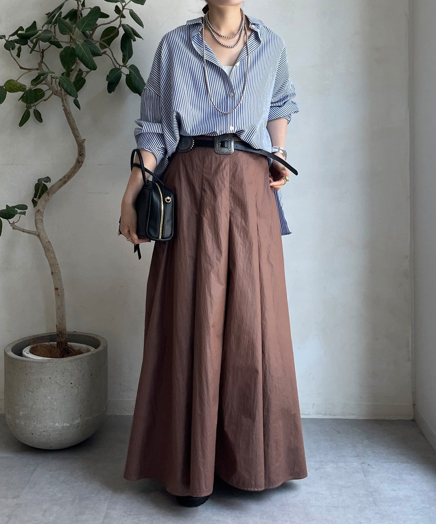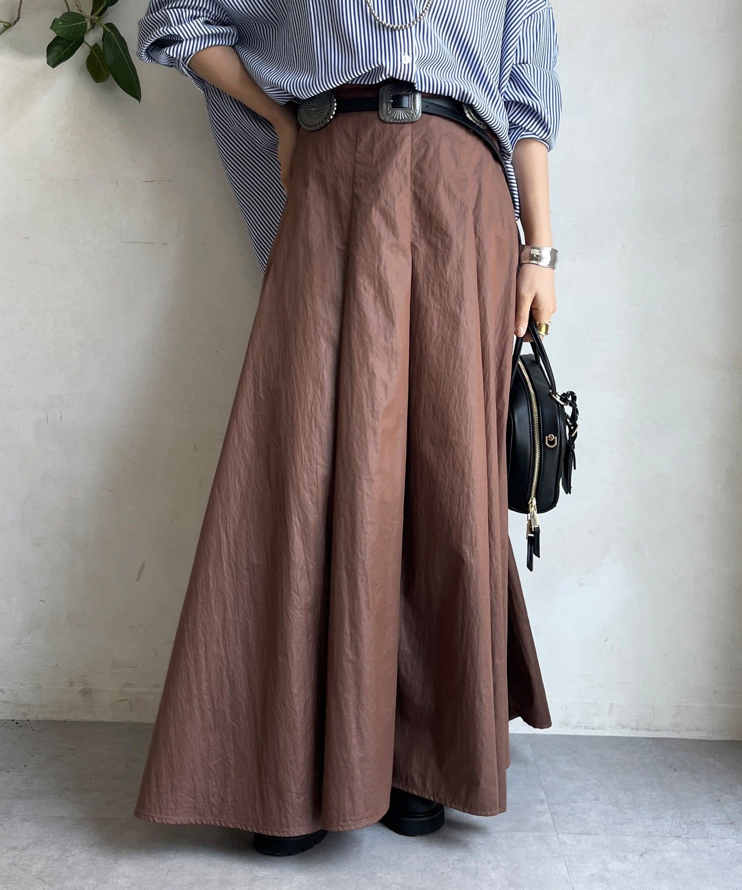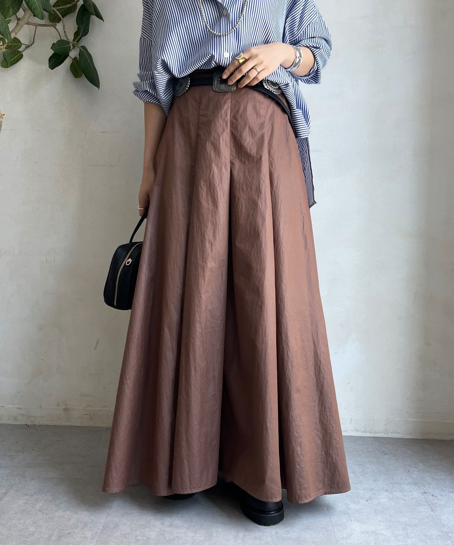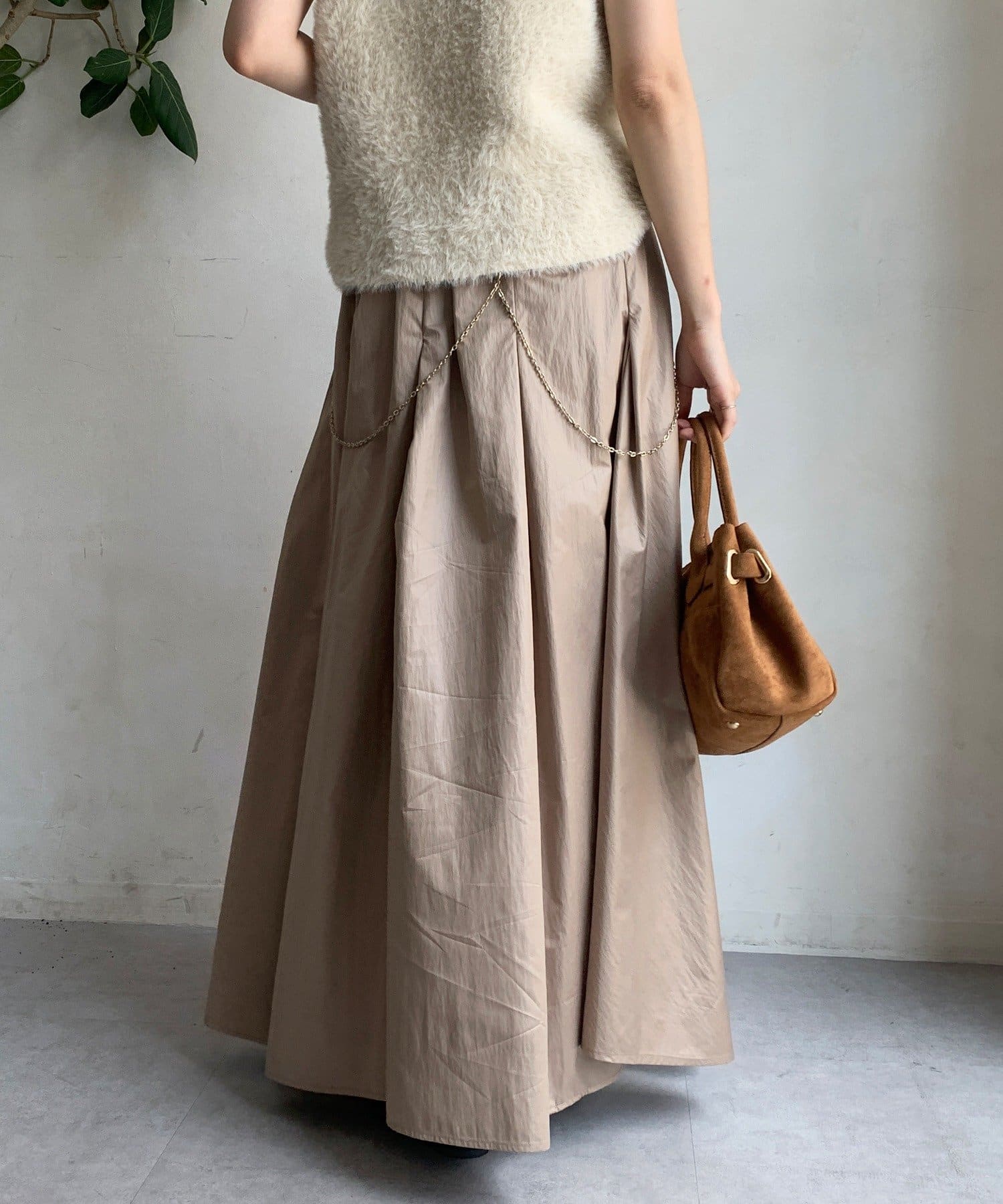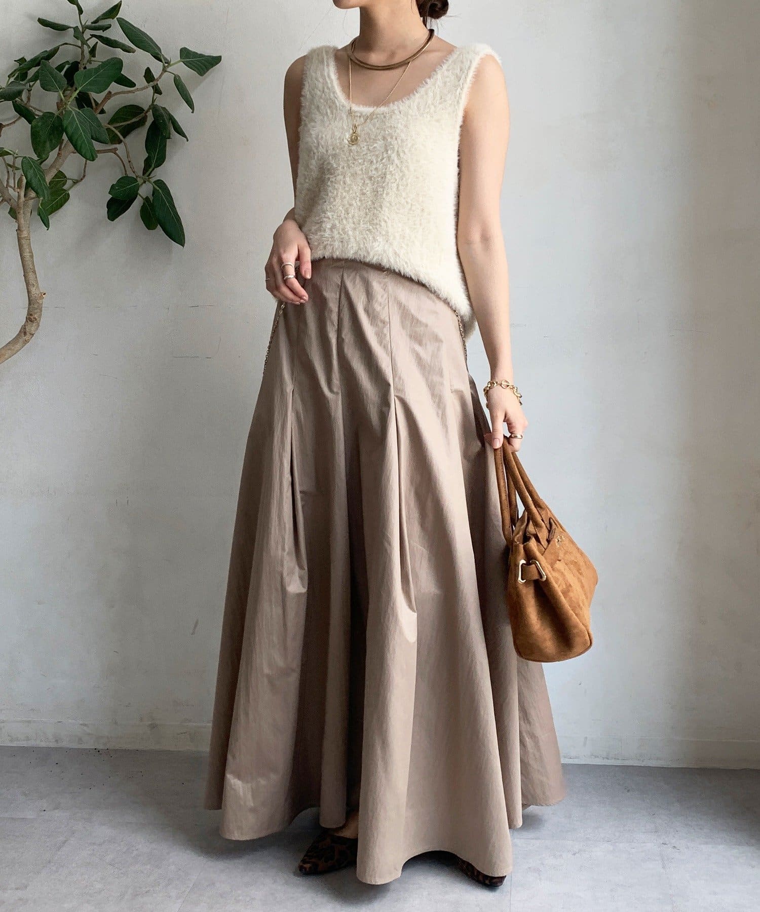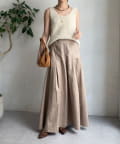 生地をふんだんに使い、タックを入れることで生まれるフレアシルエットが最大の魅力です。