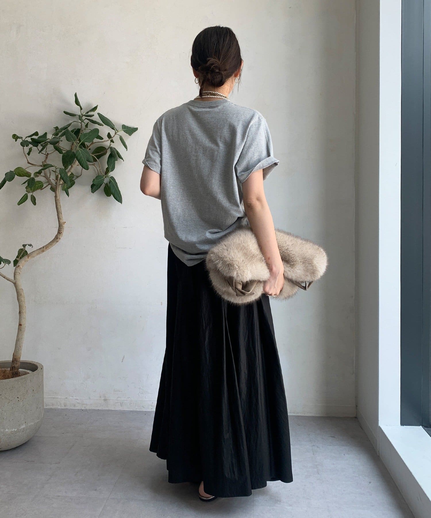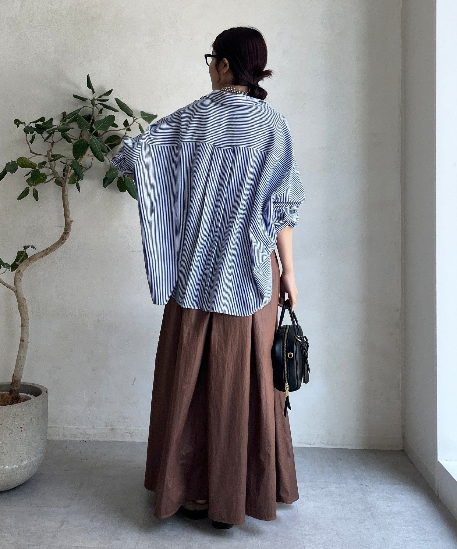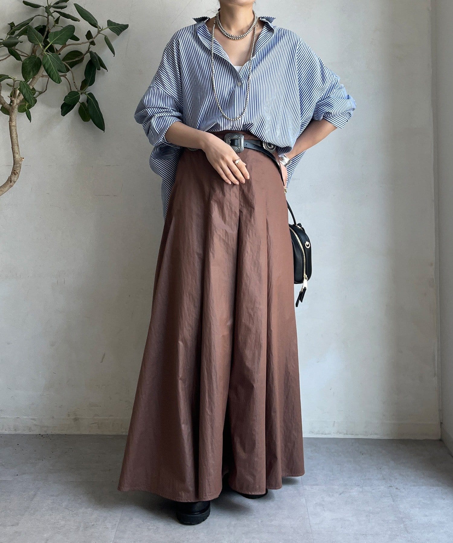 そして、光沢感のある素材がスタイリングを上品にワンランクアップ。