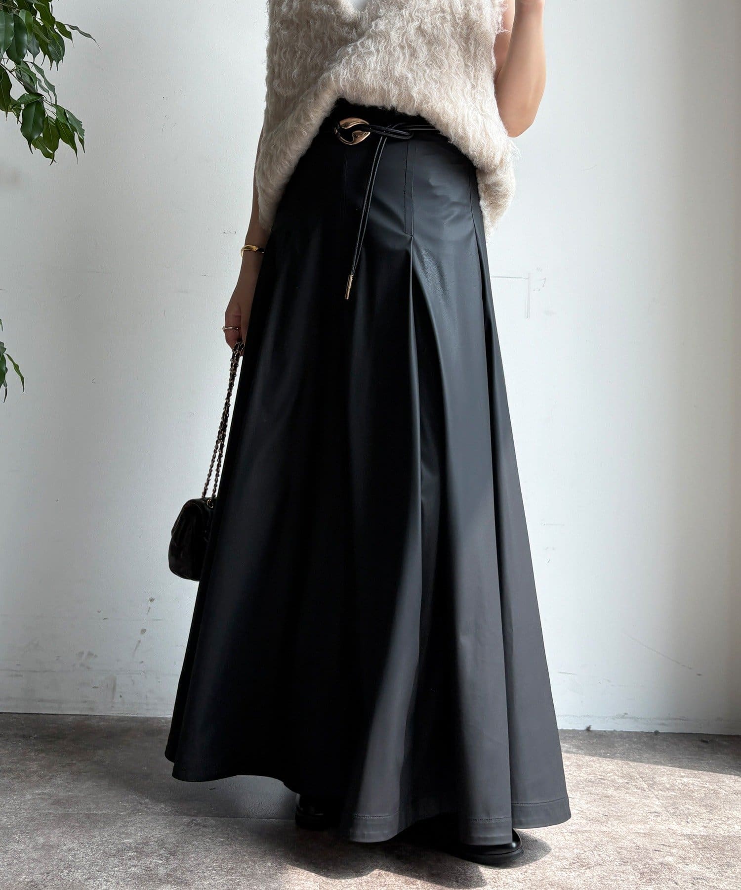 ライトフェイクレザーフレアスカート