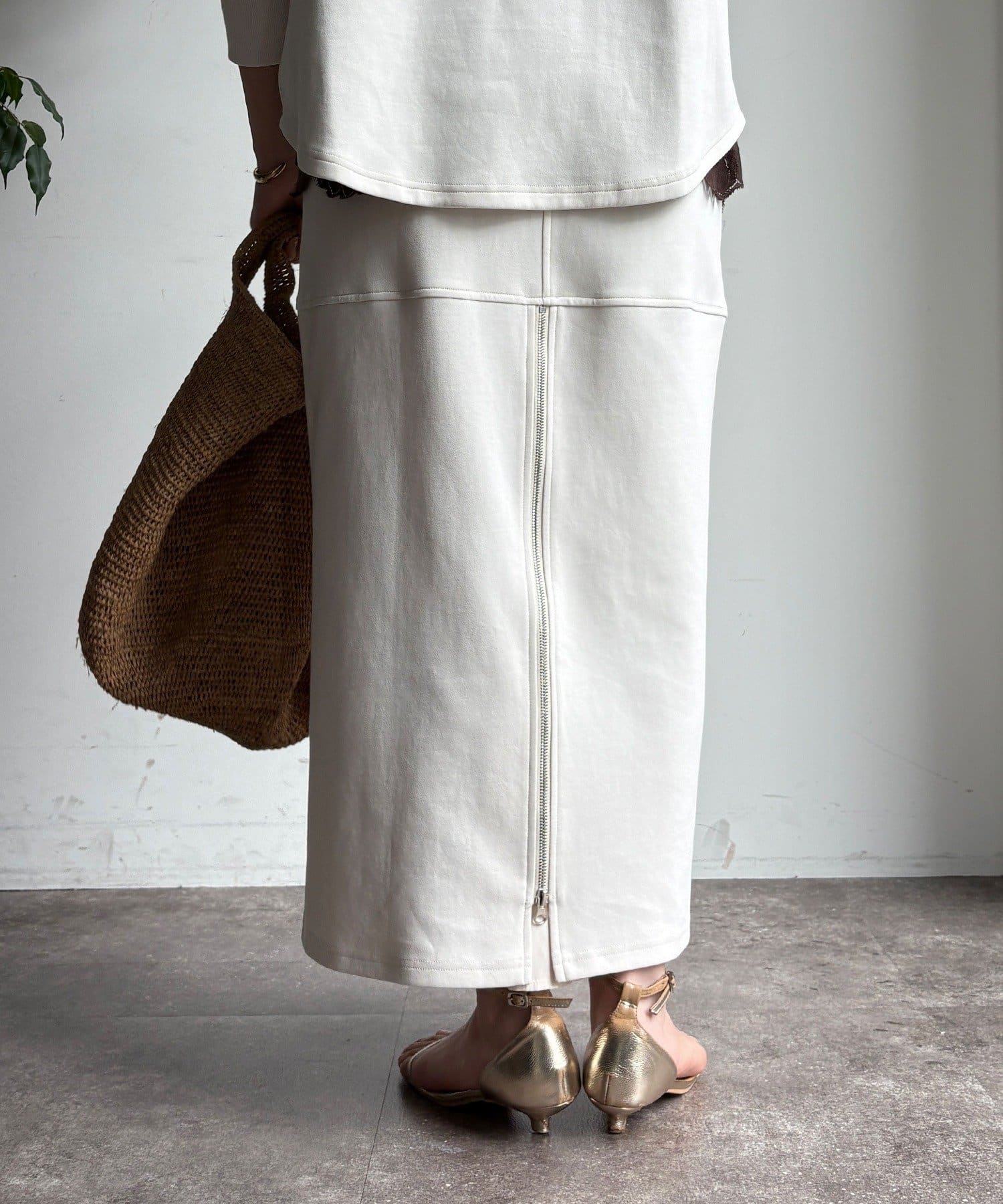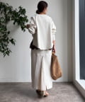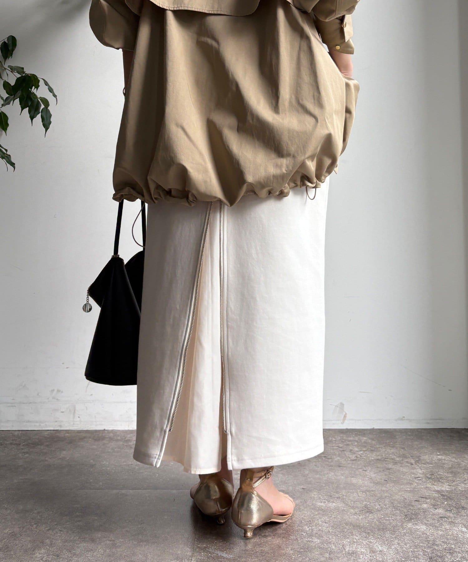 都会的な抜け感を演出。ポンチバックフレアスカート