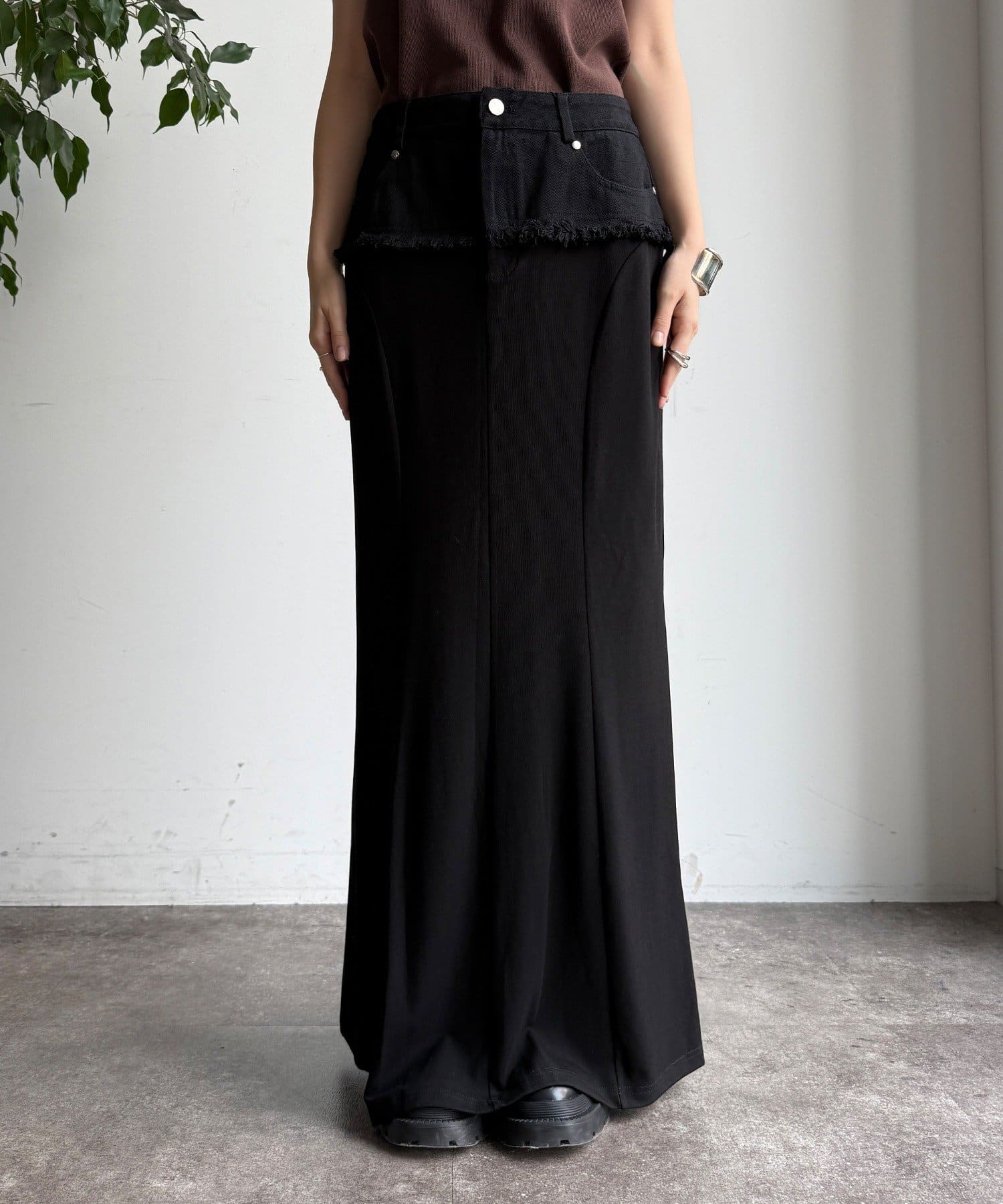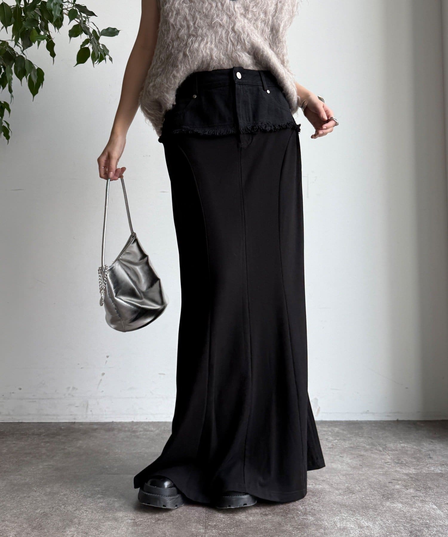 【WEB限定】 ウエストデニム切替マーメイドスカート