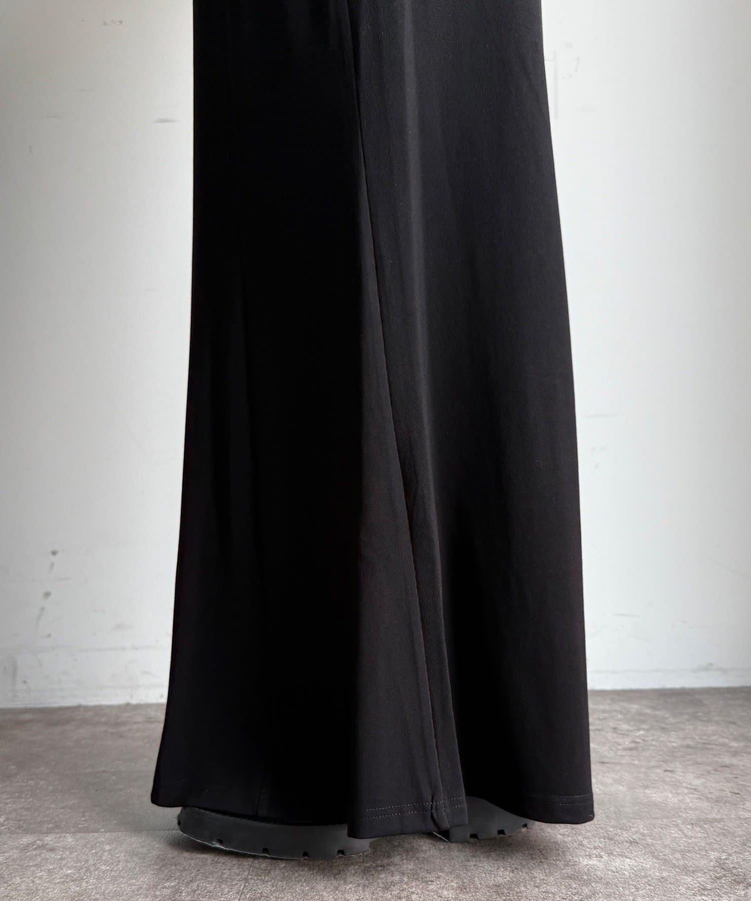 裾に向かって広がるマーメイドシルエットが魅力で、女性らしい曲線を強調し、スタイルアップ効果も期待できます。