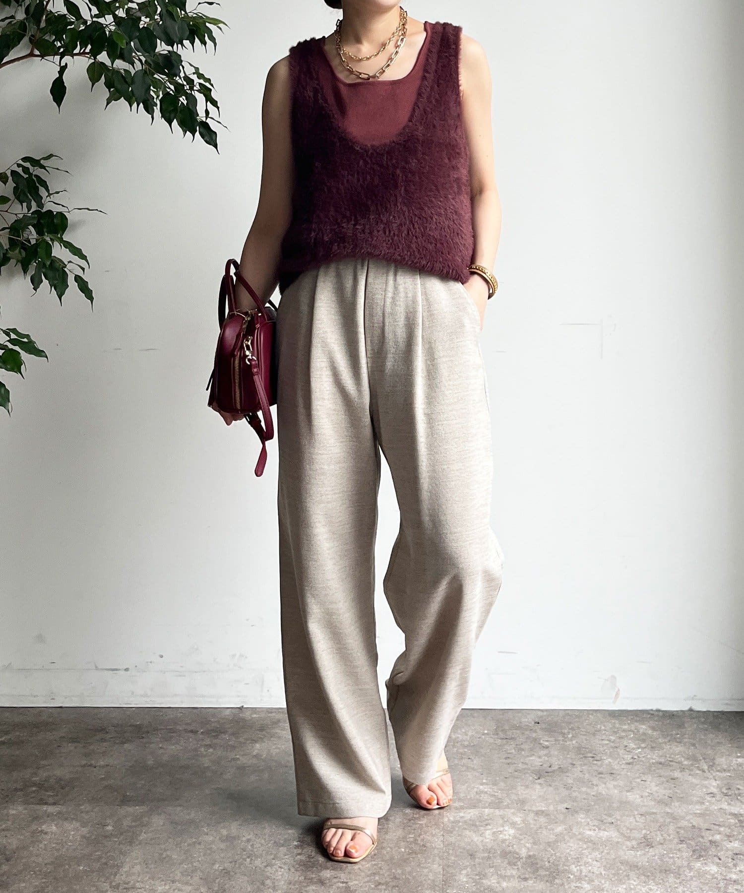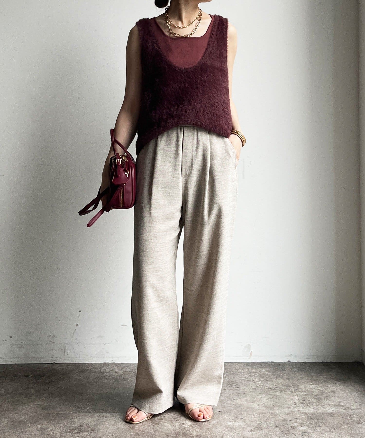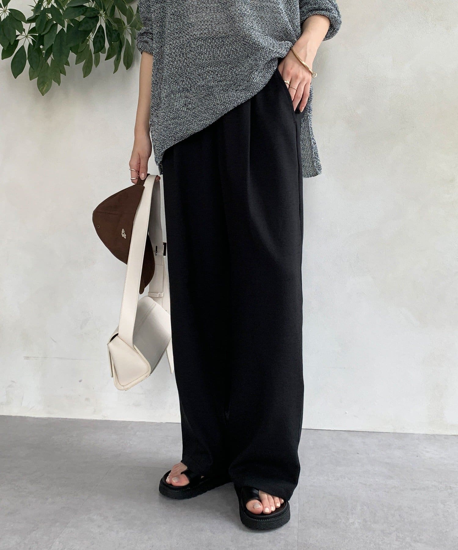 メランジスラブワイドパンツ
