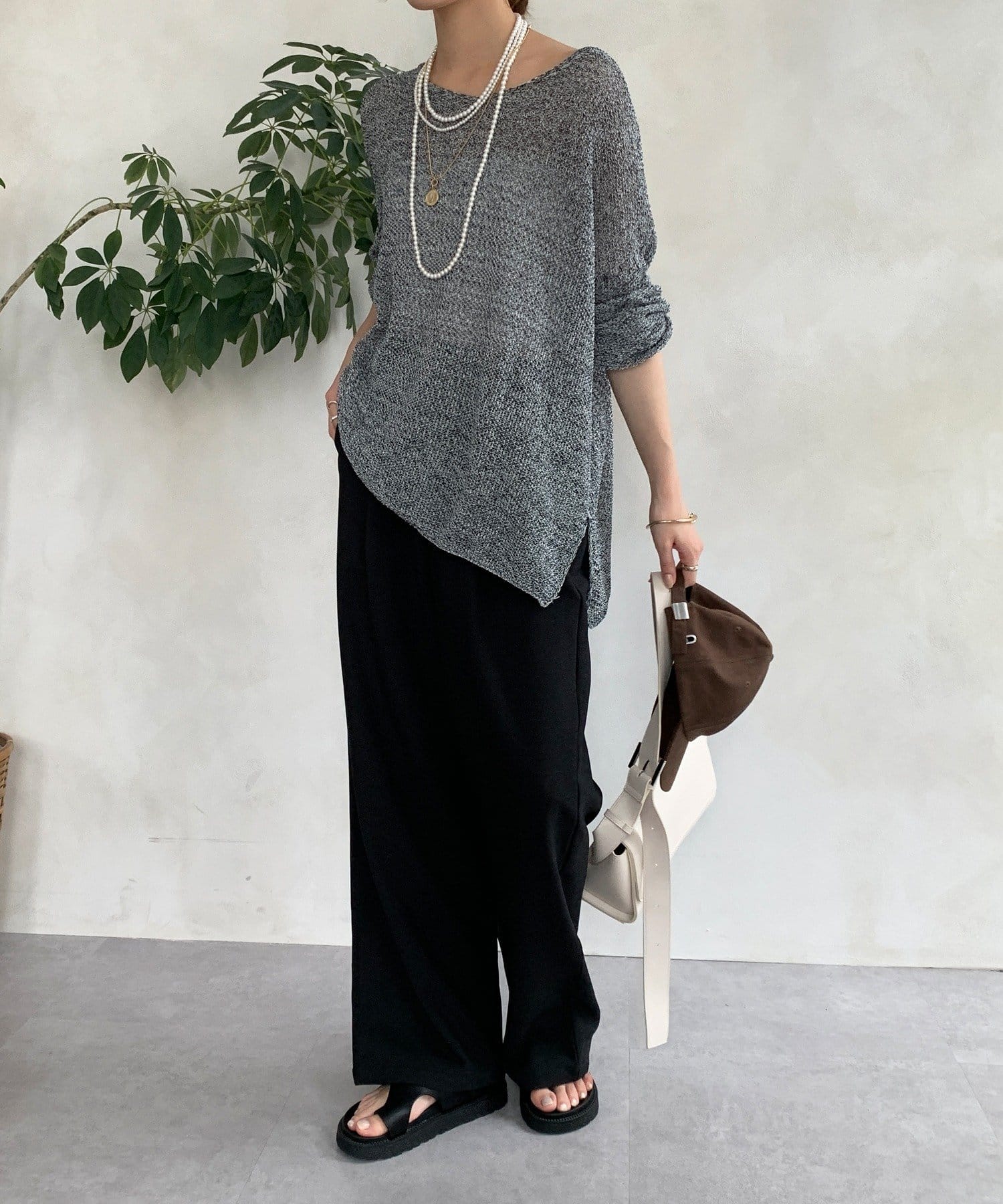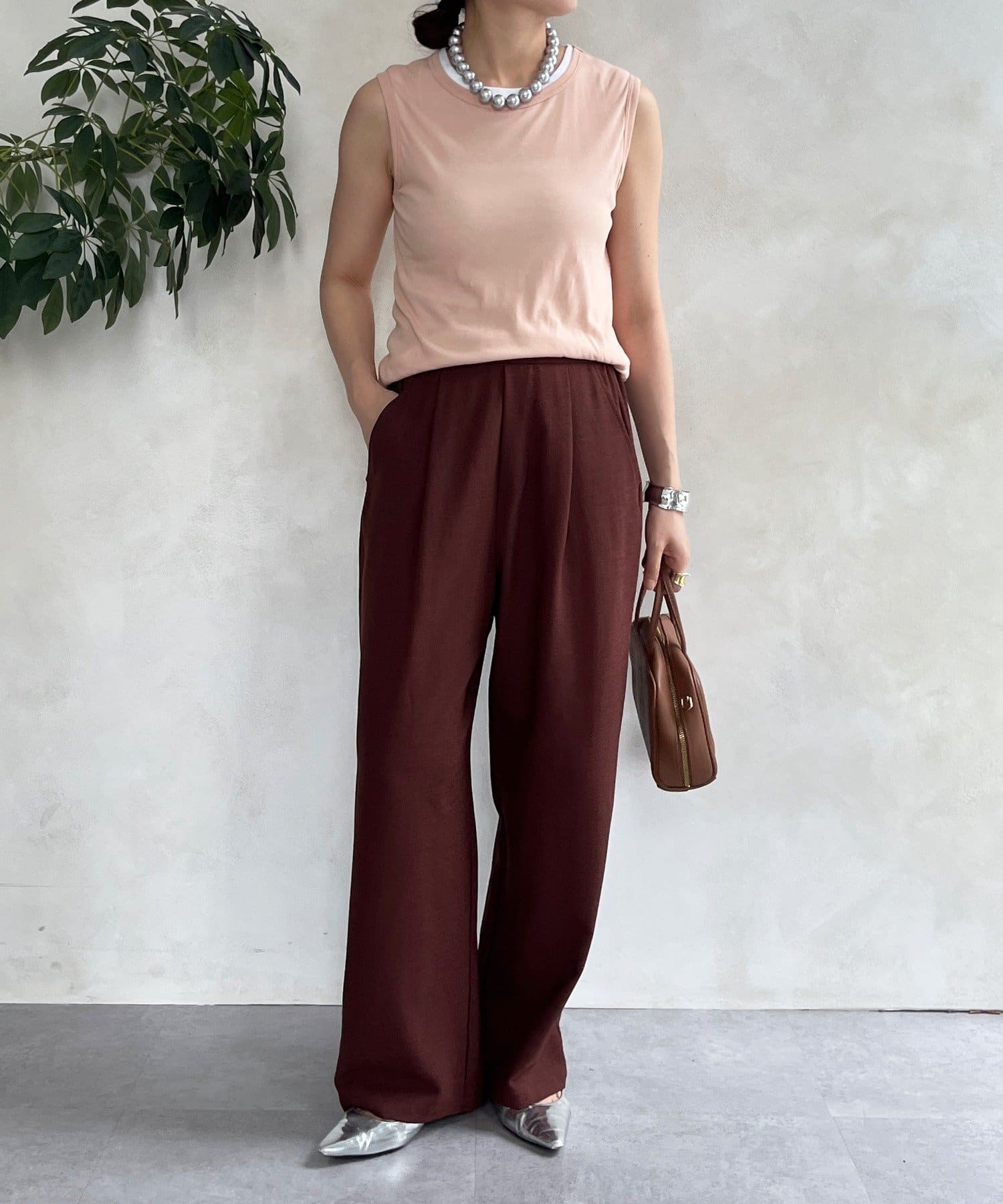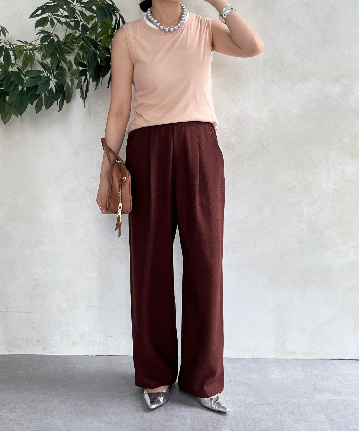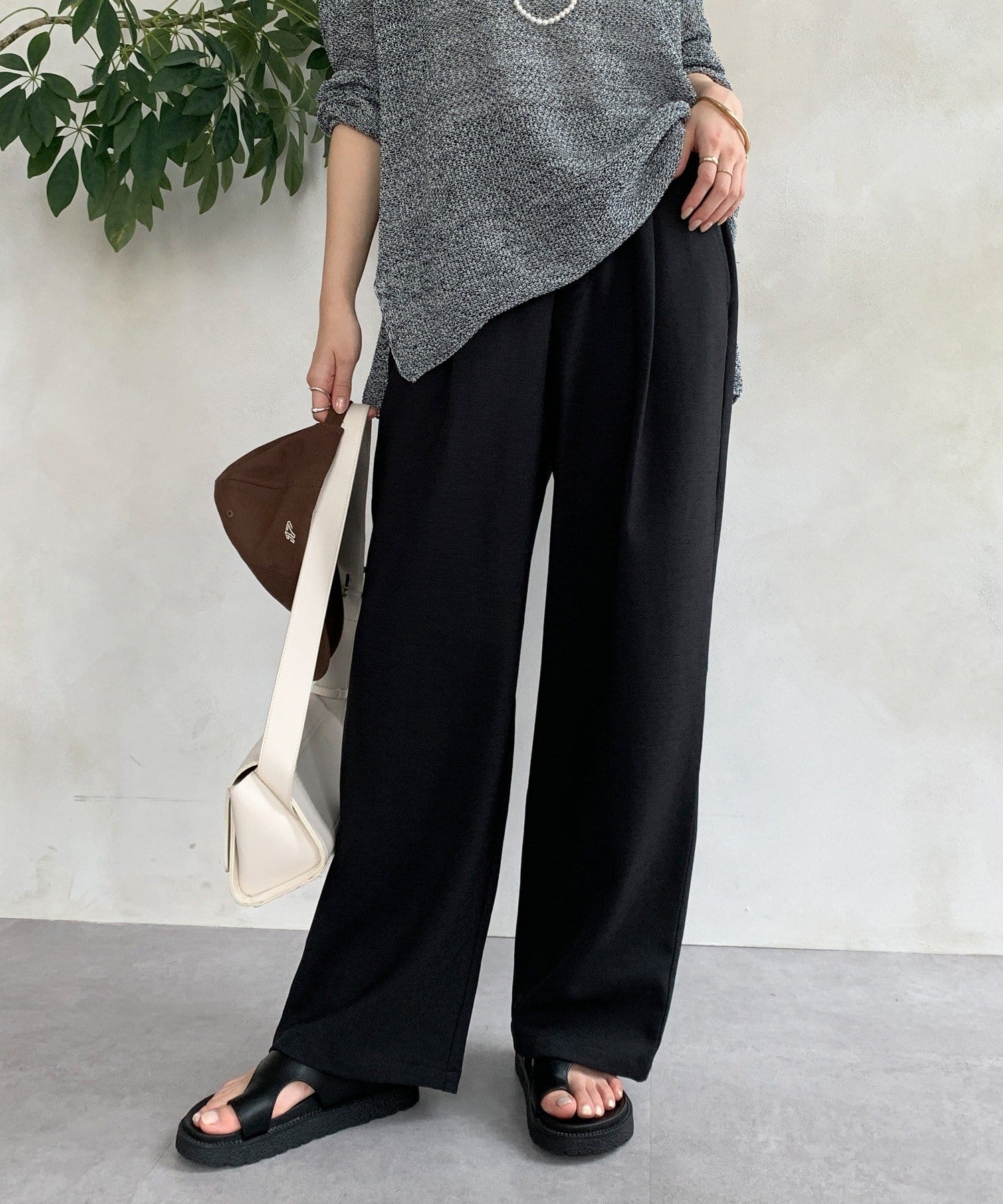 メランジスラブワイドパンツ