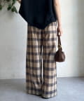 【DouDou】シアーチェックワイドパンツ