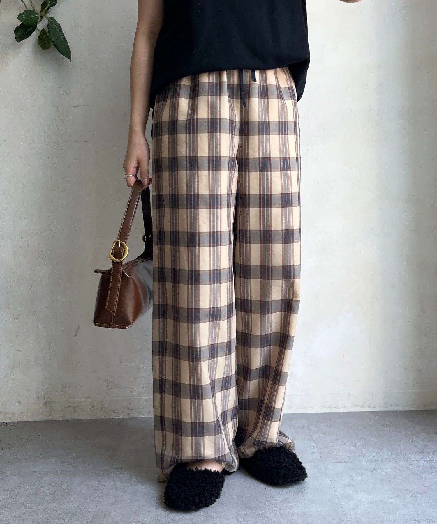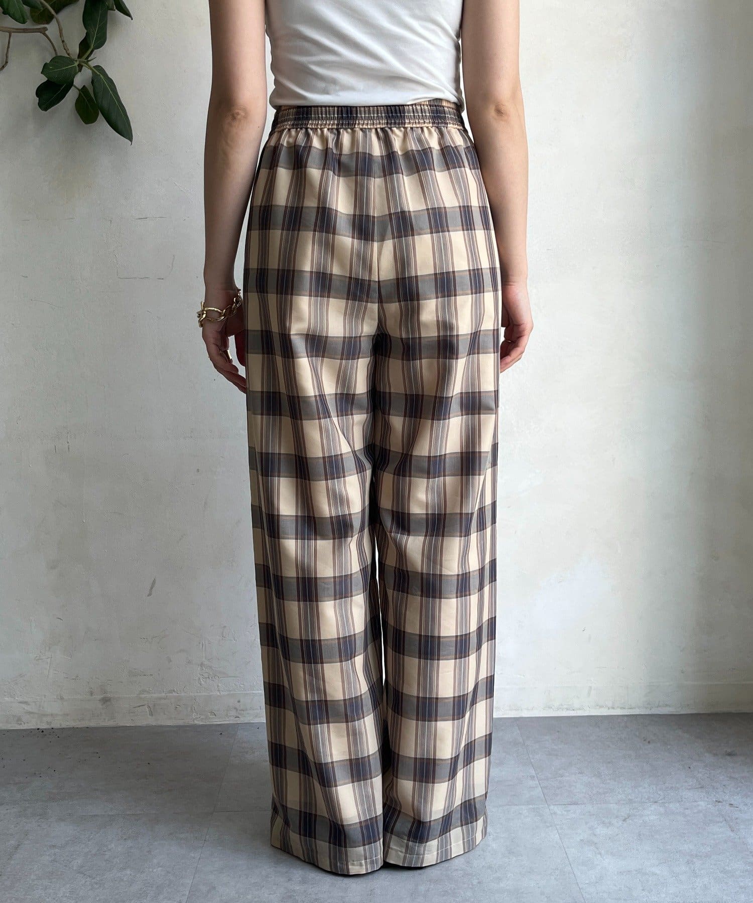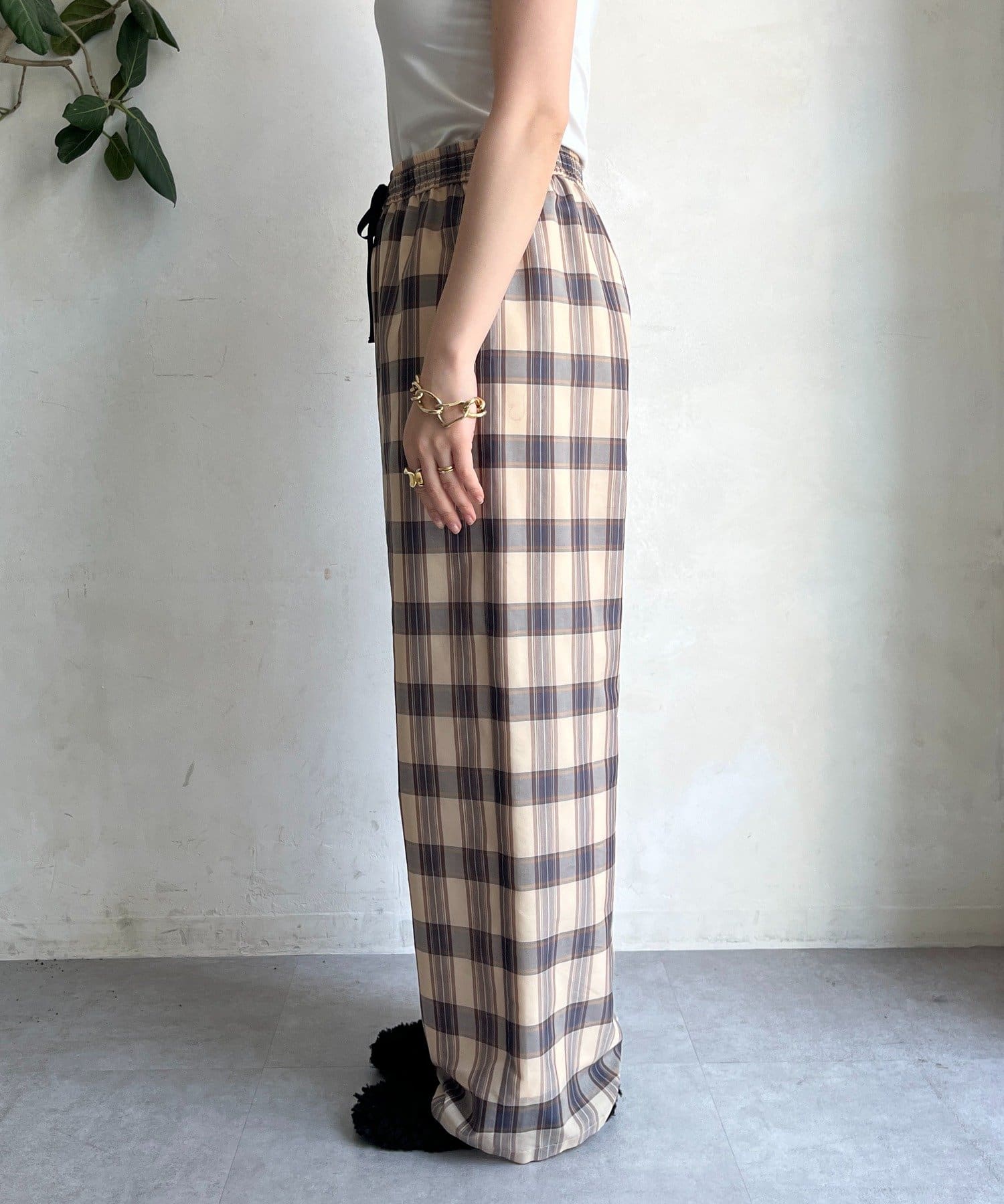 大人のためのシアーチェックワイドパンツ