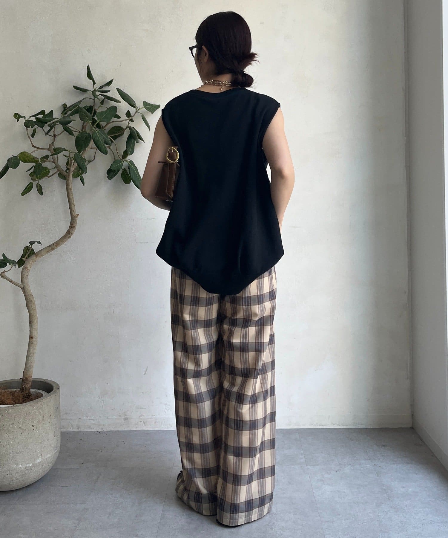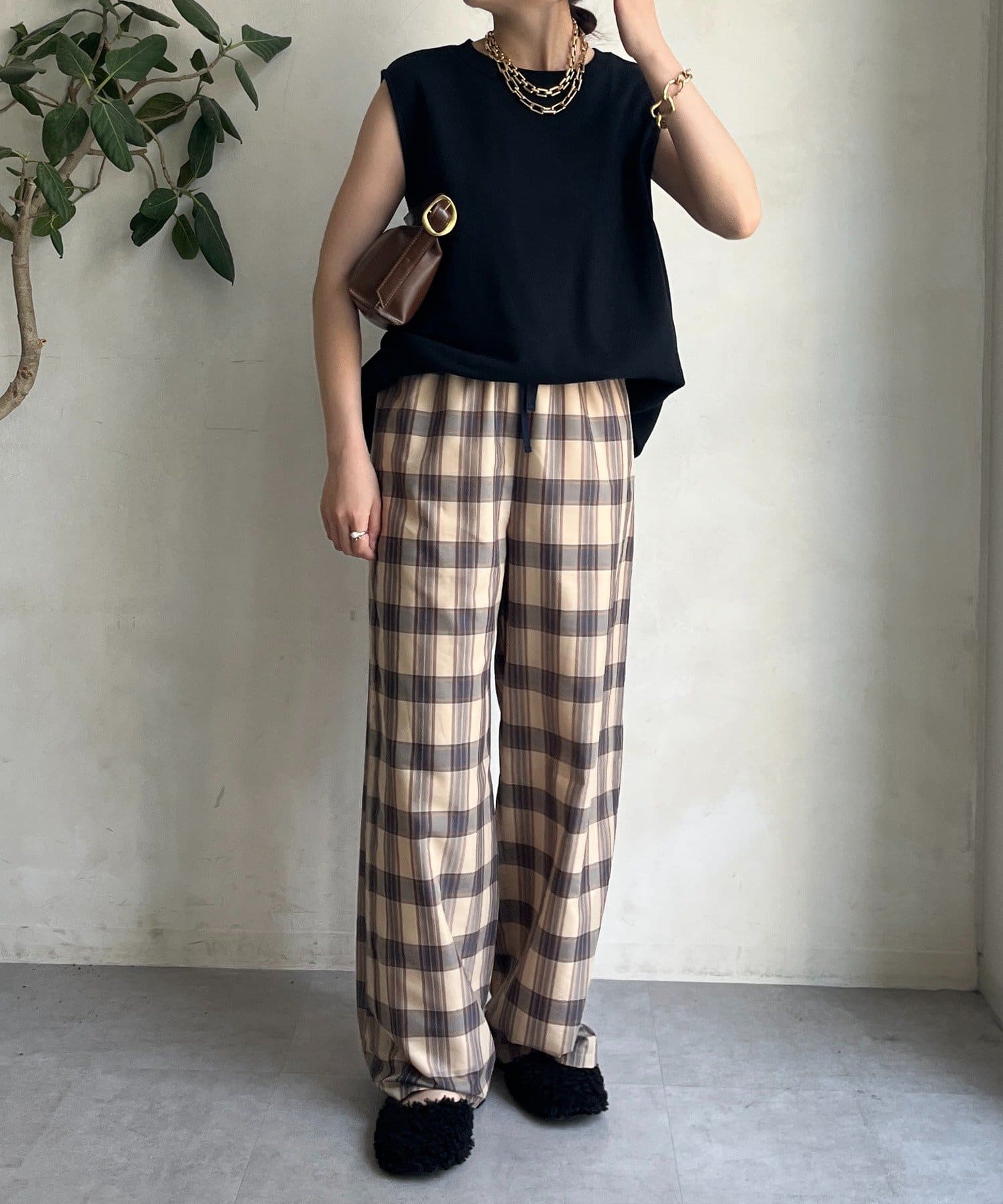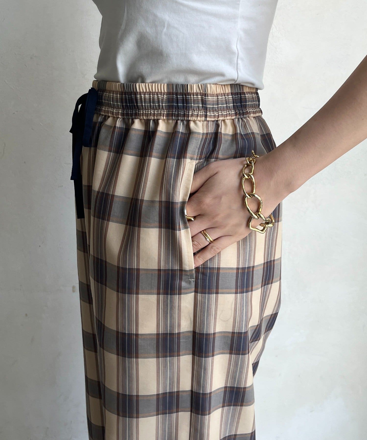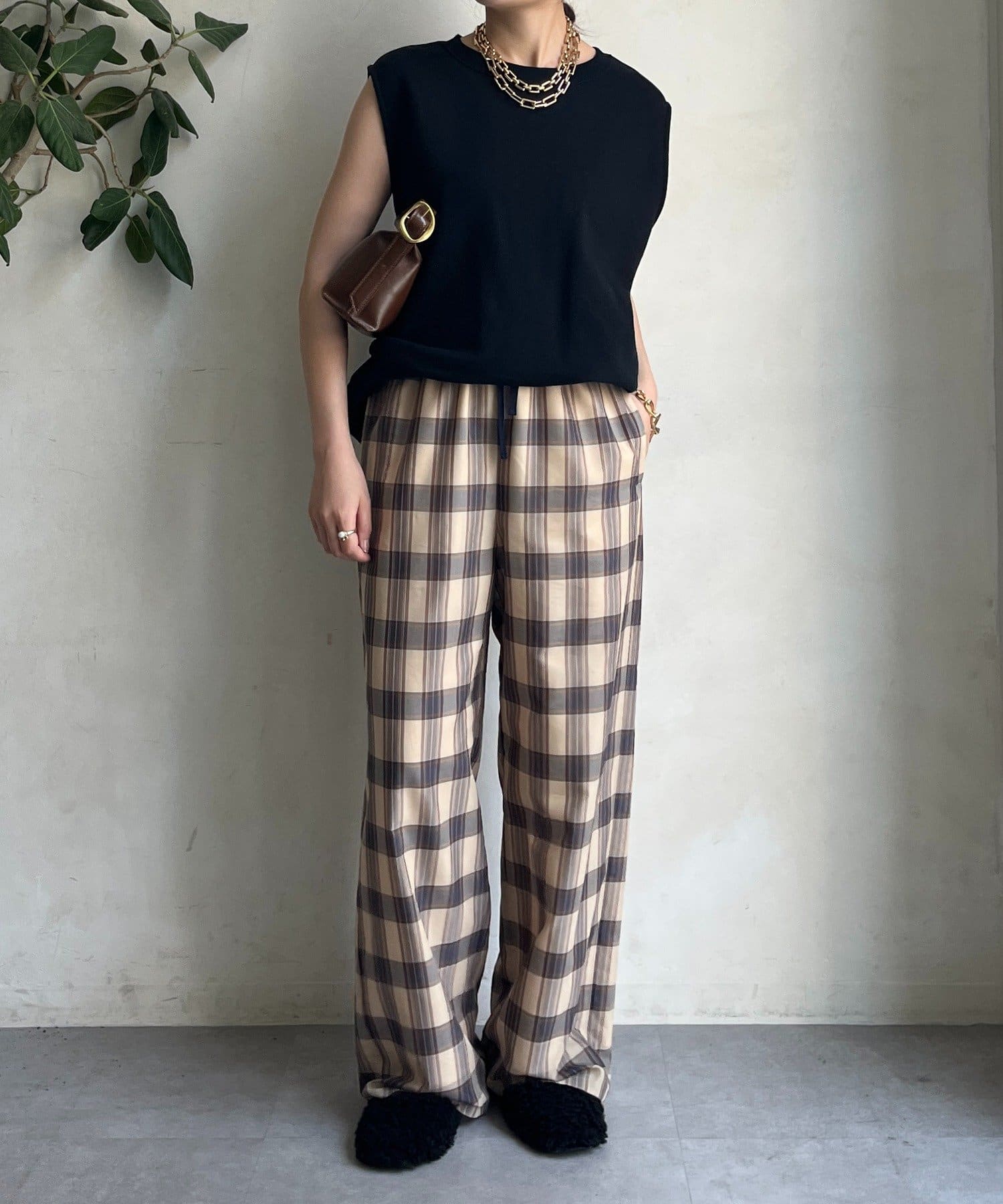 大人のためのシアーチェックワイドパンツ