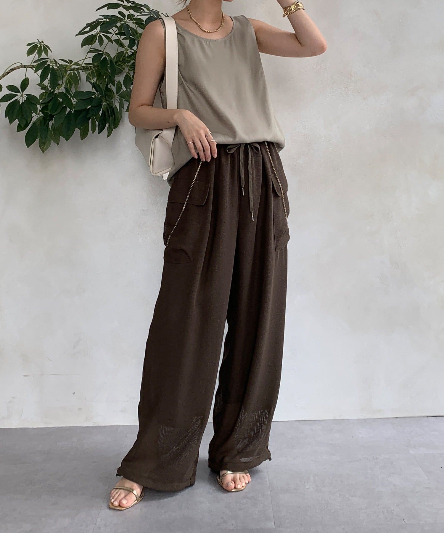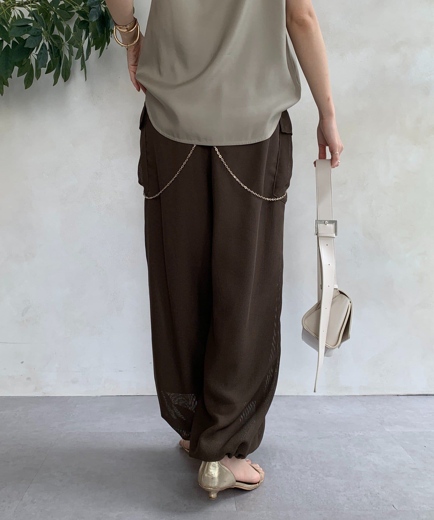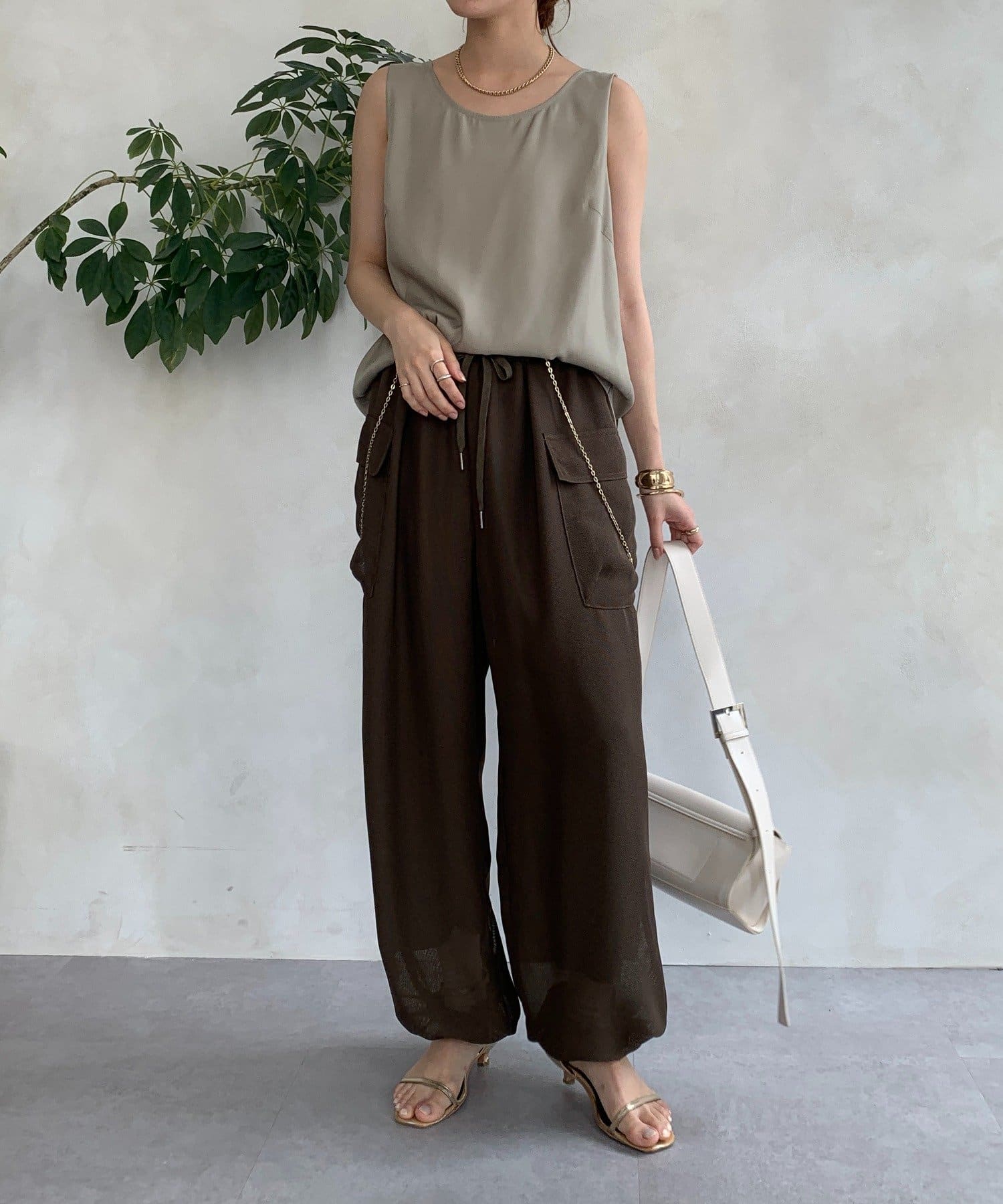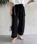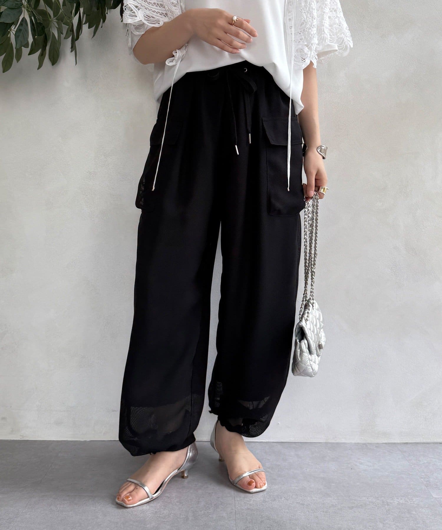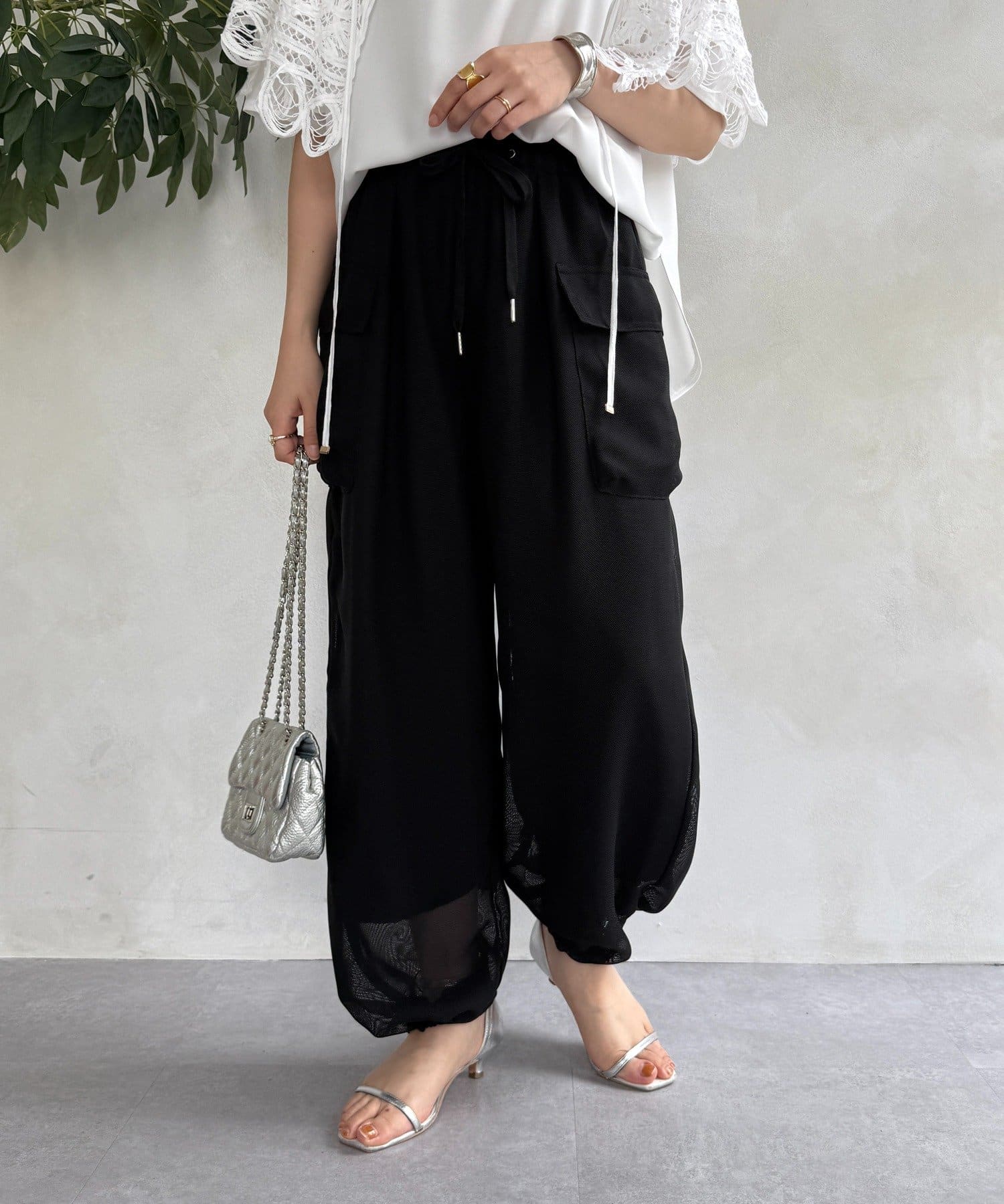 裾が絞れる仕様によりシルエットを調整可能で、スタイリングの幅が広がる。