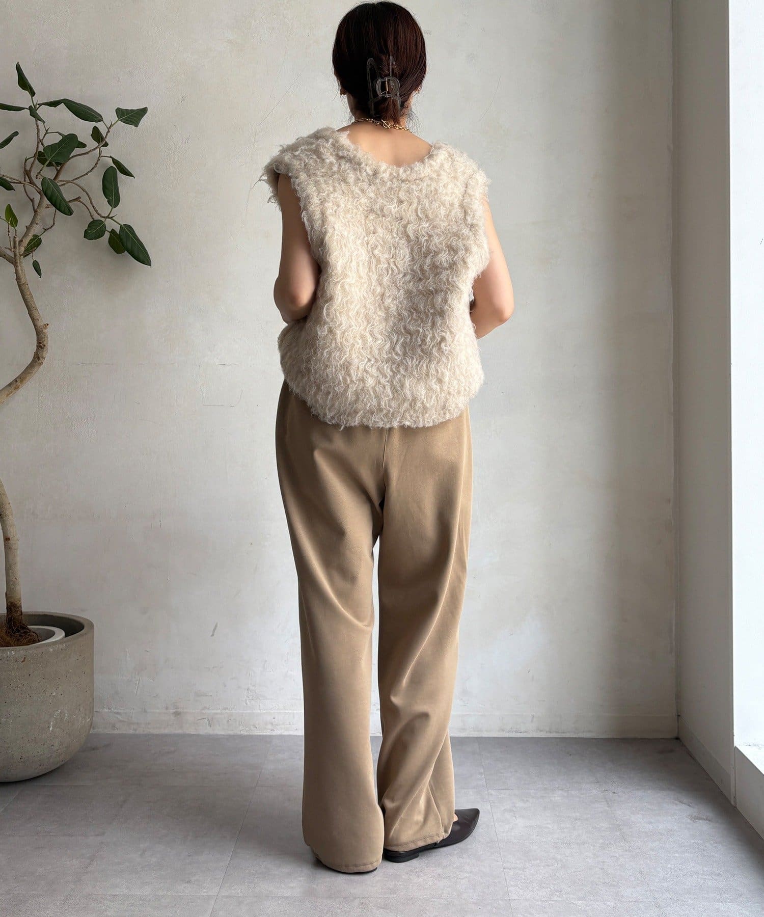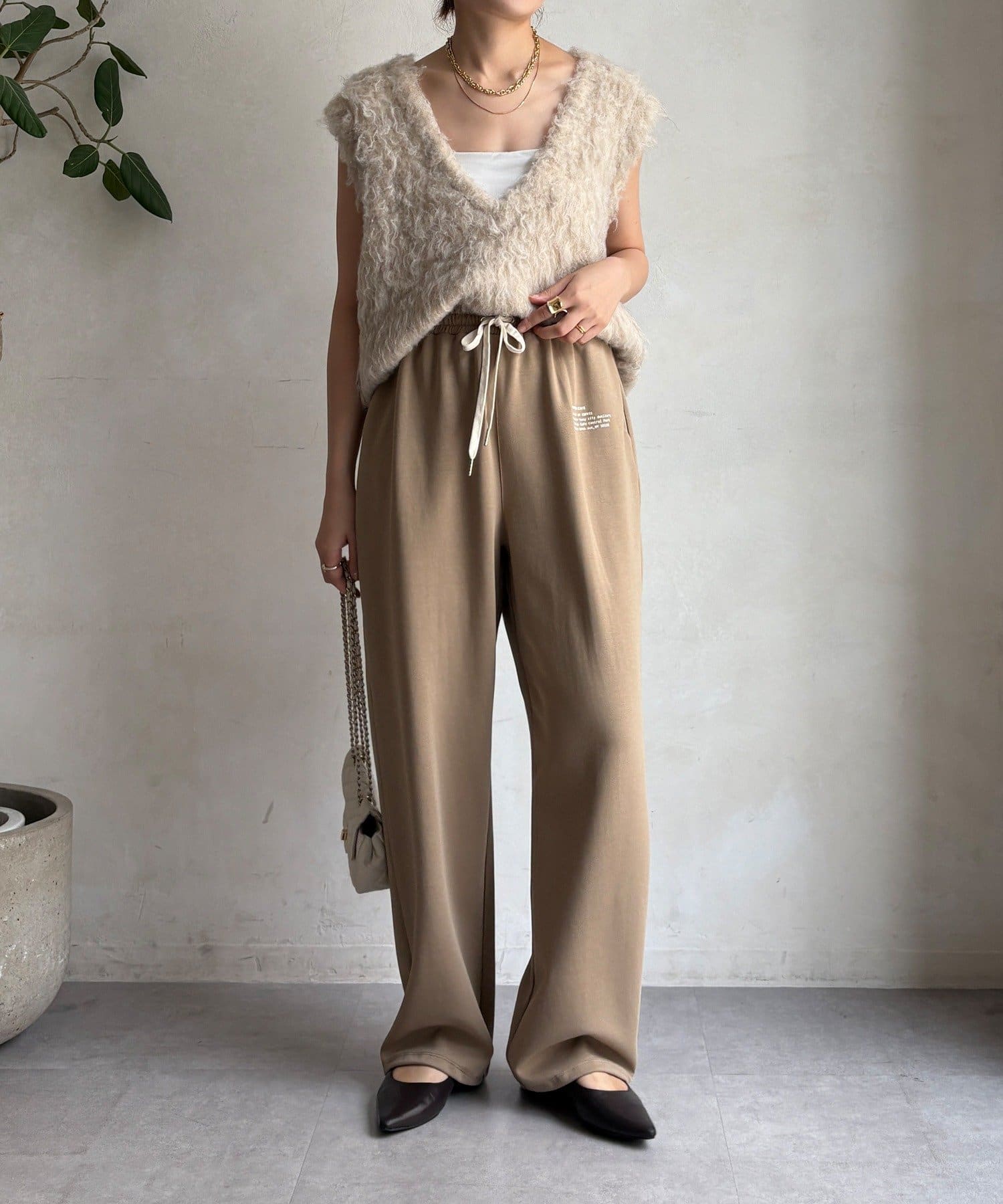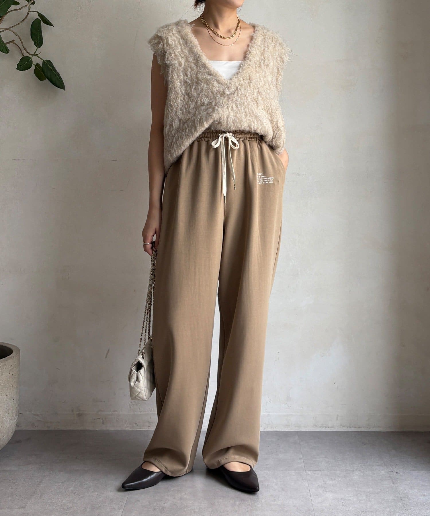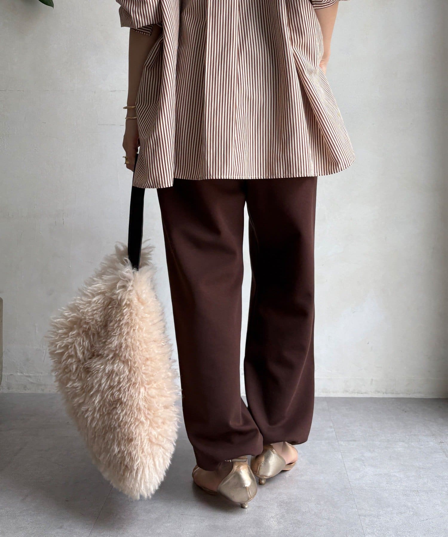 ウエストはゴム仕様でストレスフリーな履き心地で、頑張りすぎない、でもお洒落が叶います。