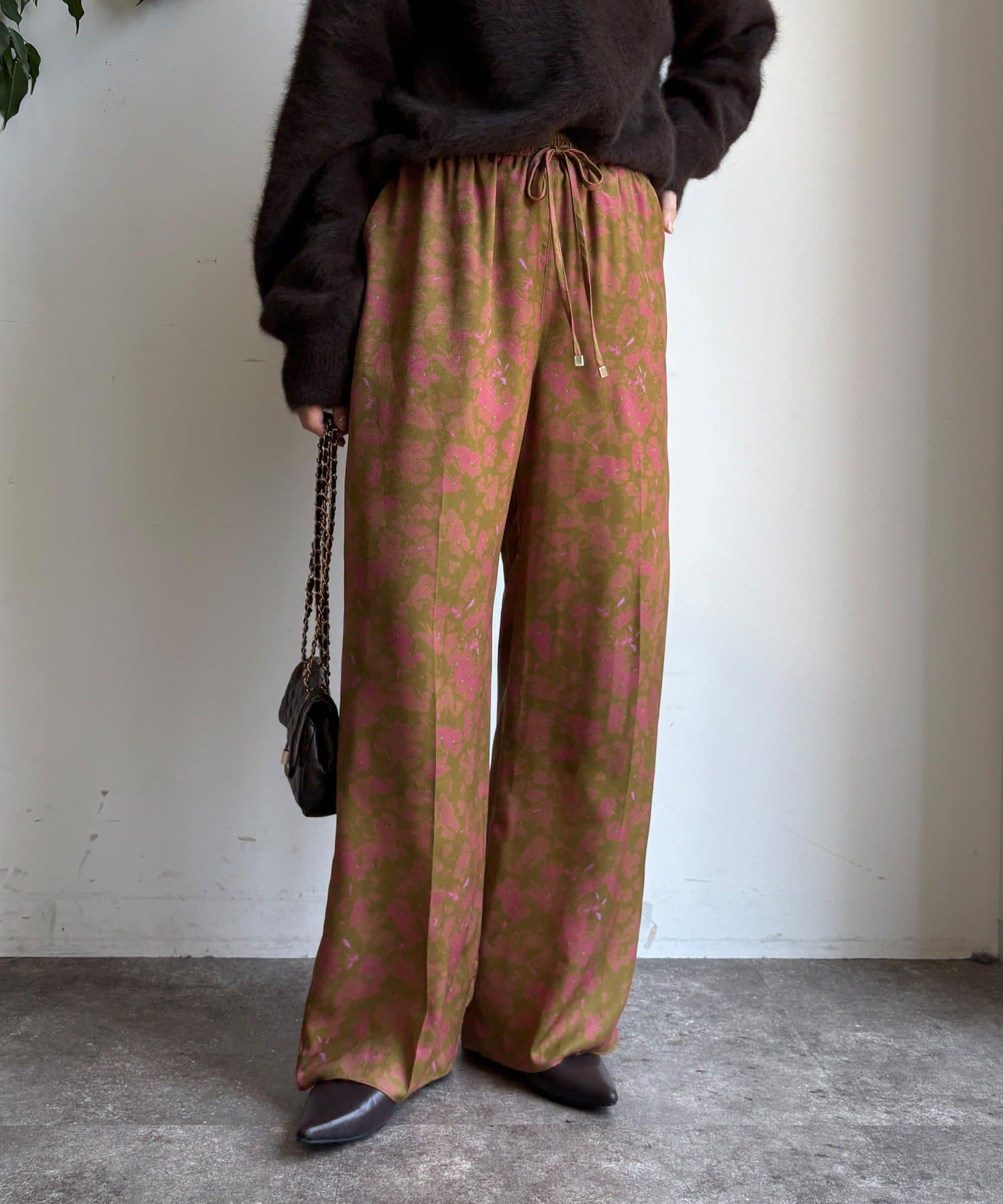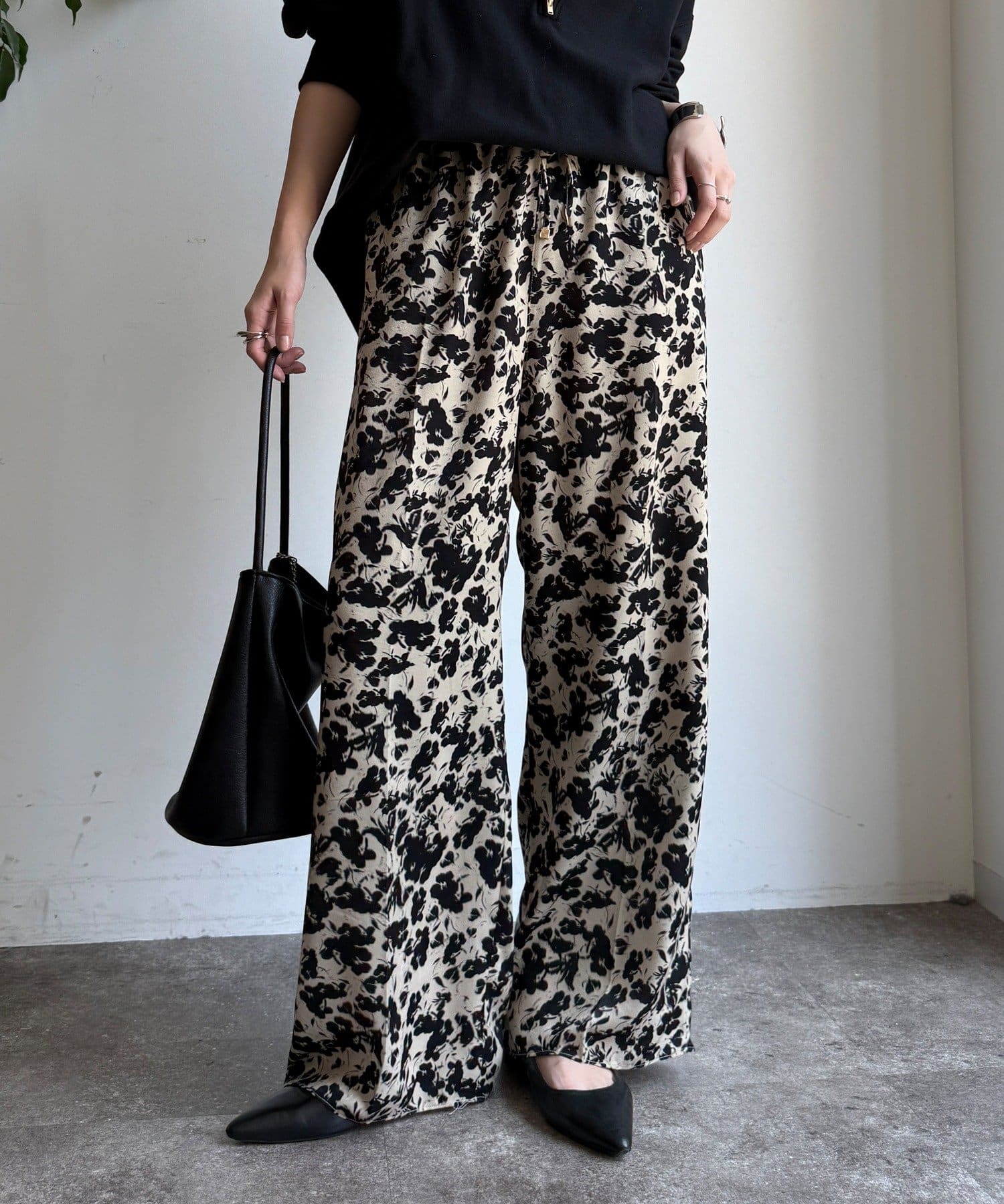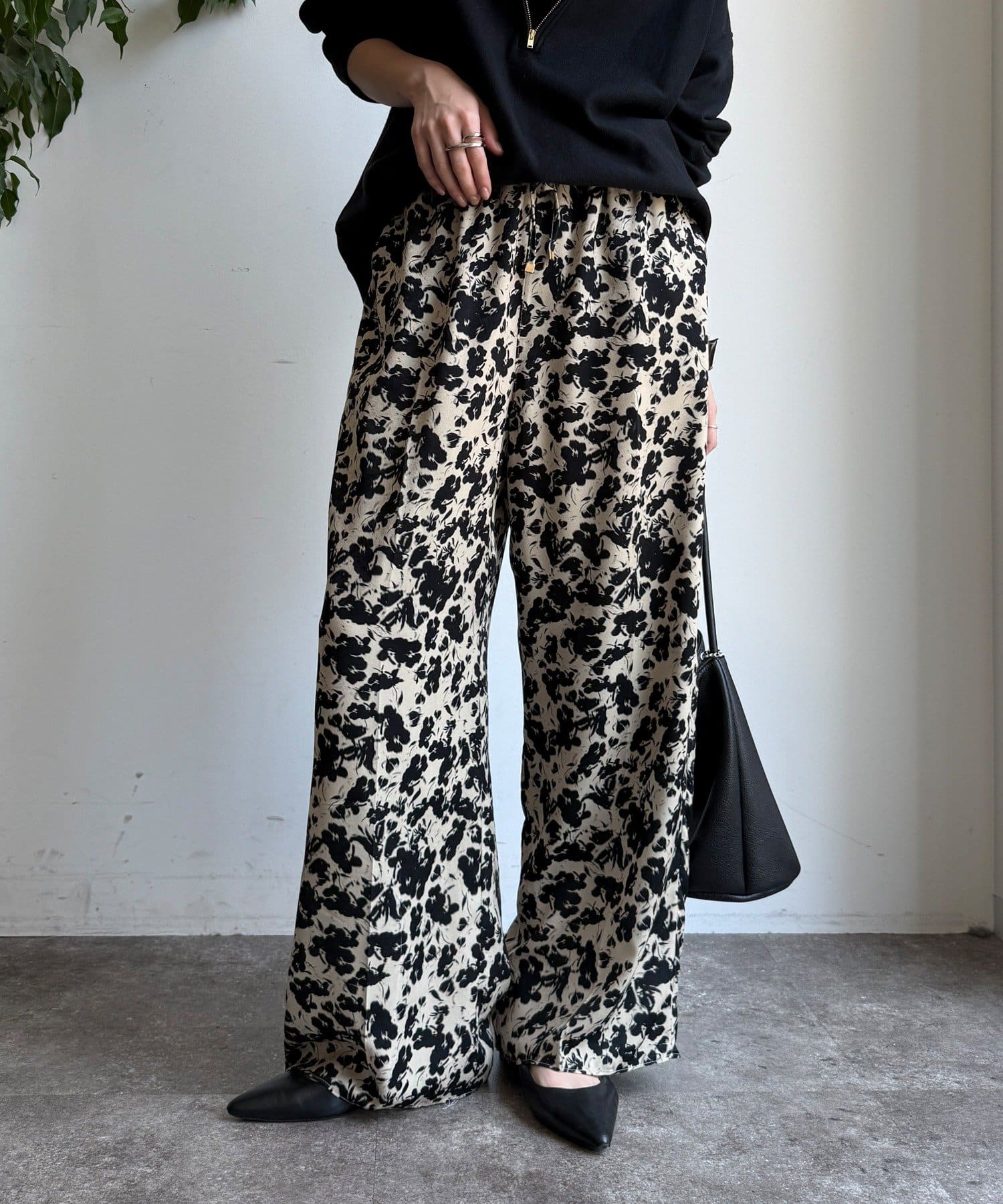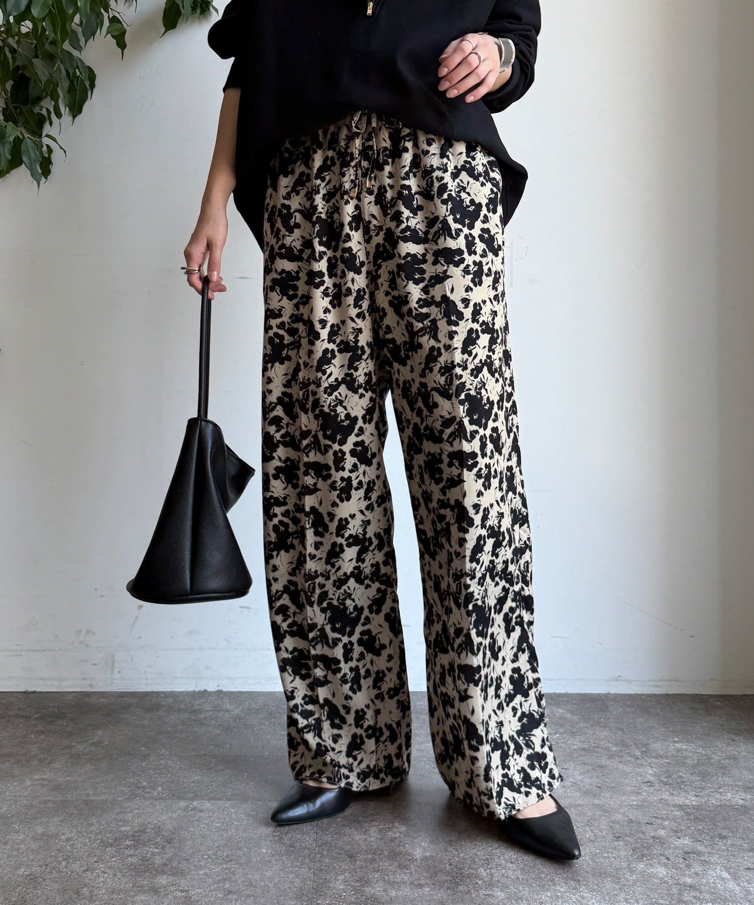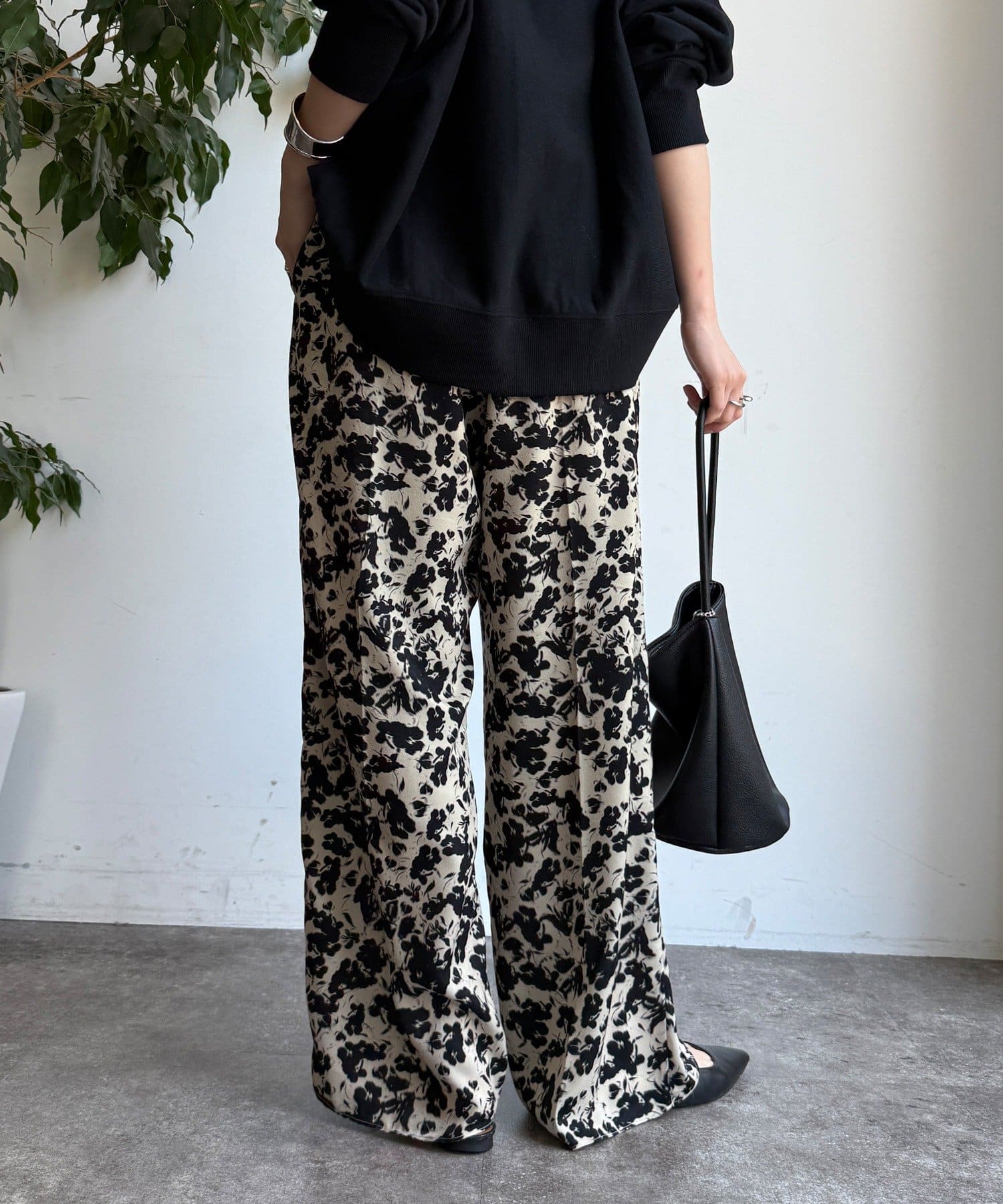 上品なフラワープリントが目を惹く、リラックス感漂うワイドパンツ。