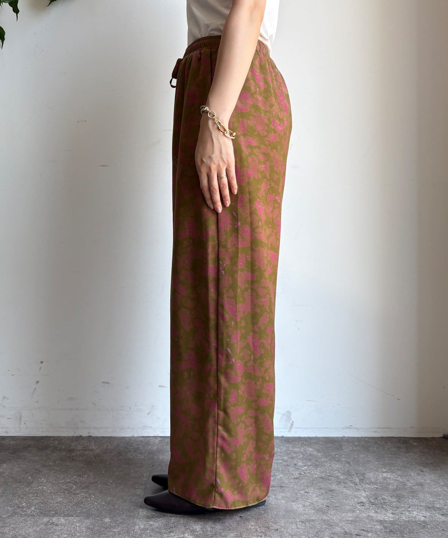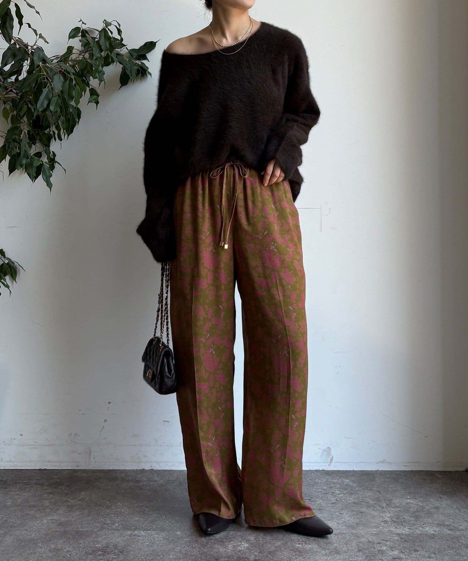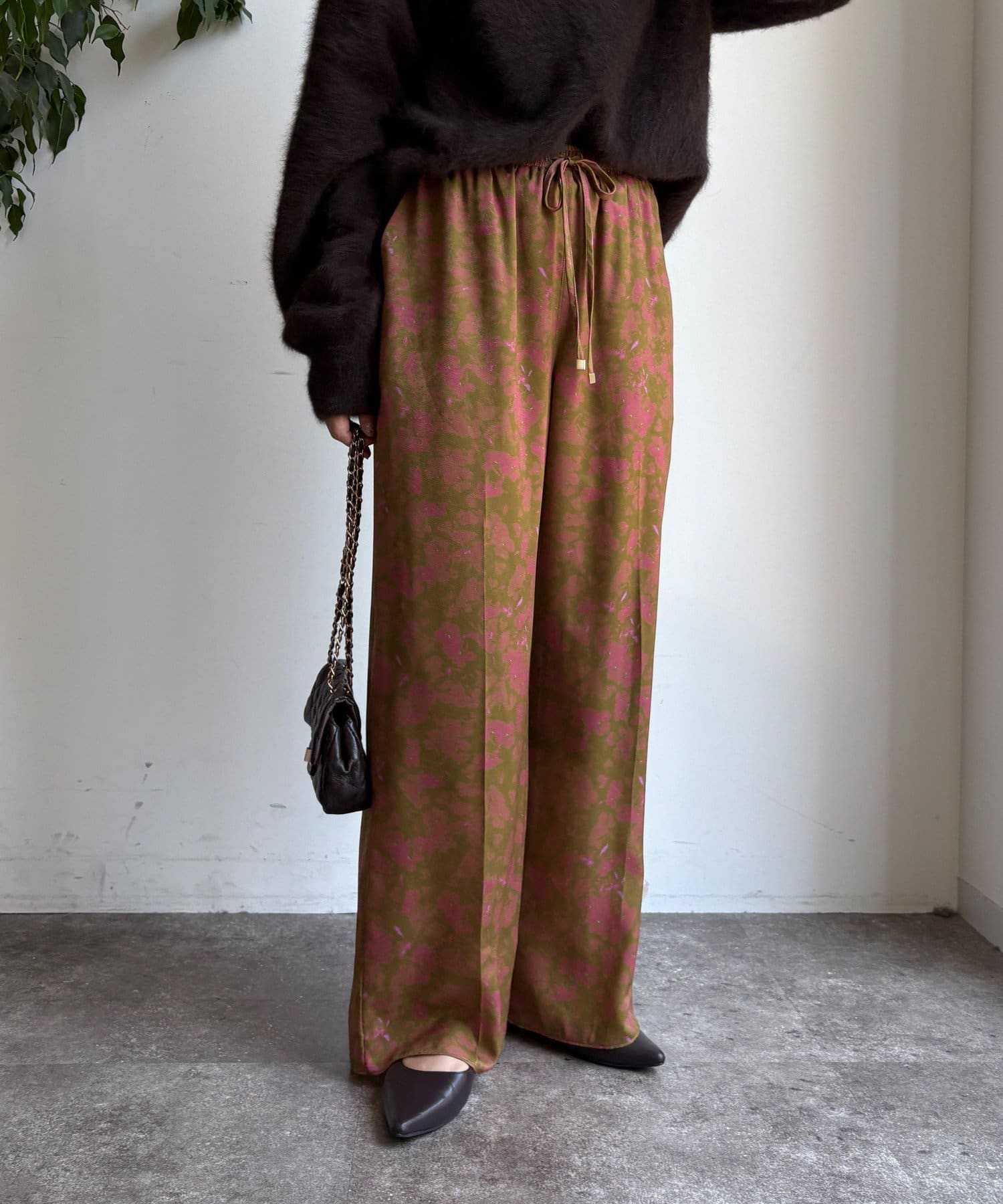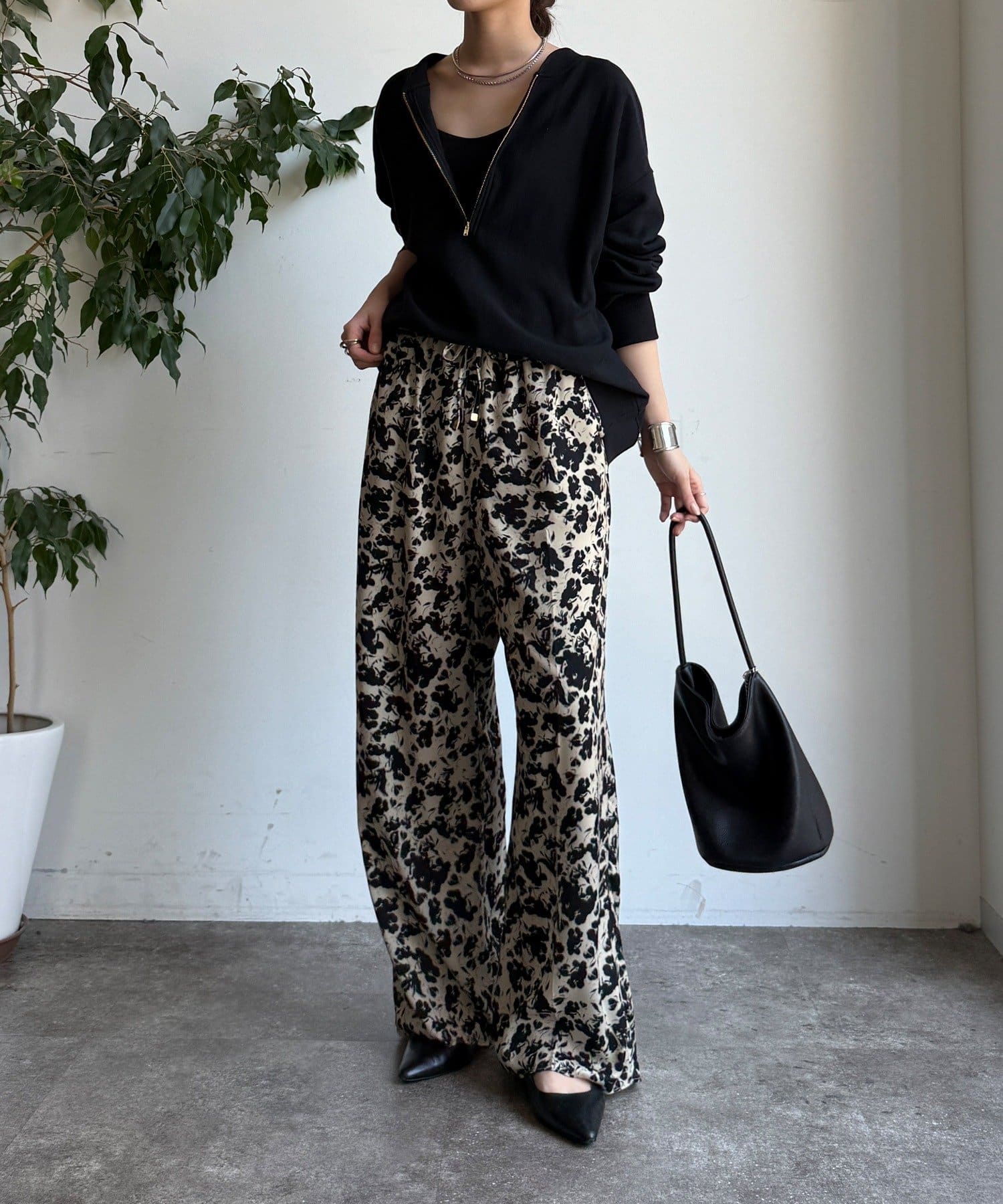 上品なフラワープリントが目を惹く、リラックス感漂うワイドパンツ。