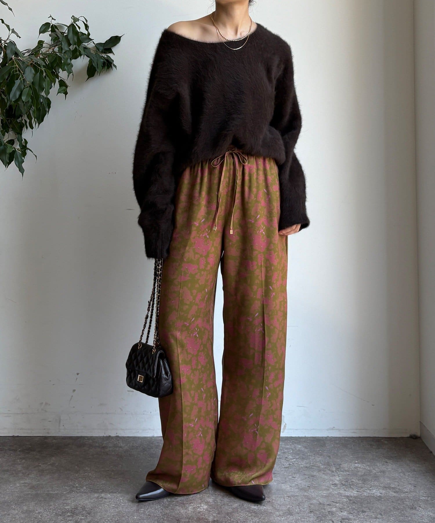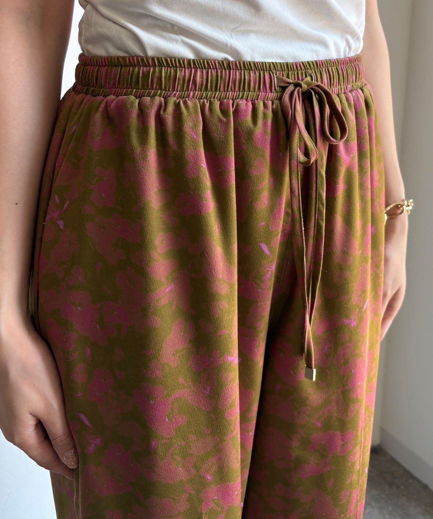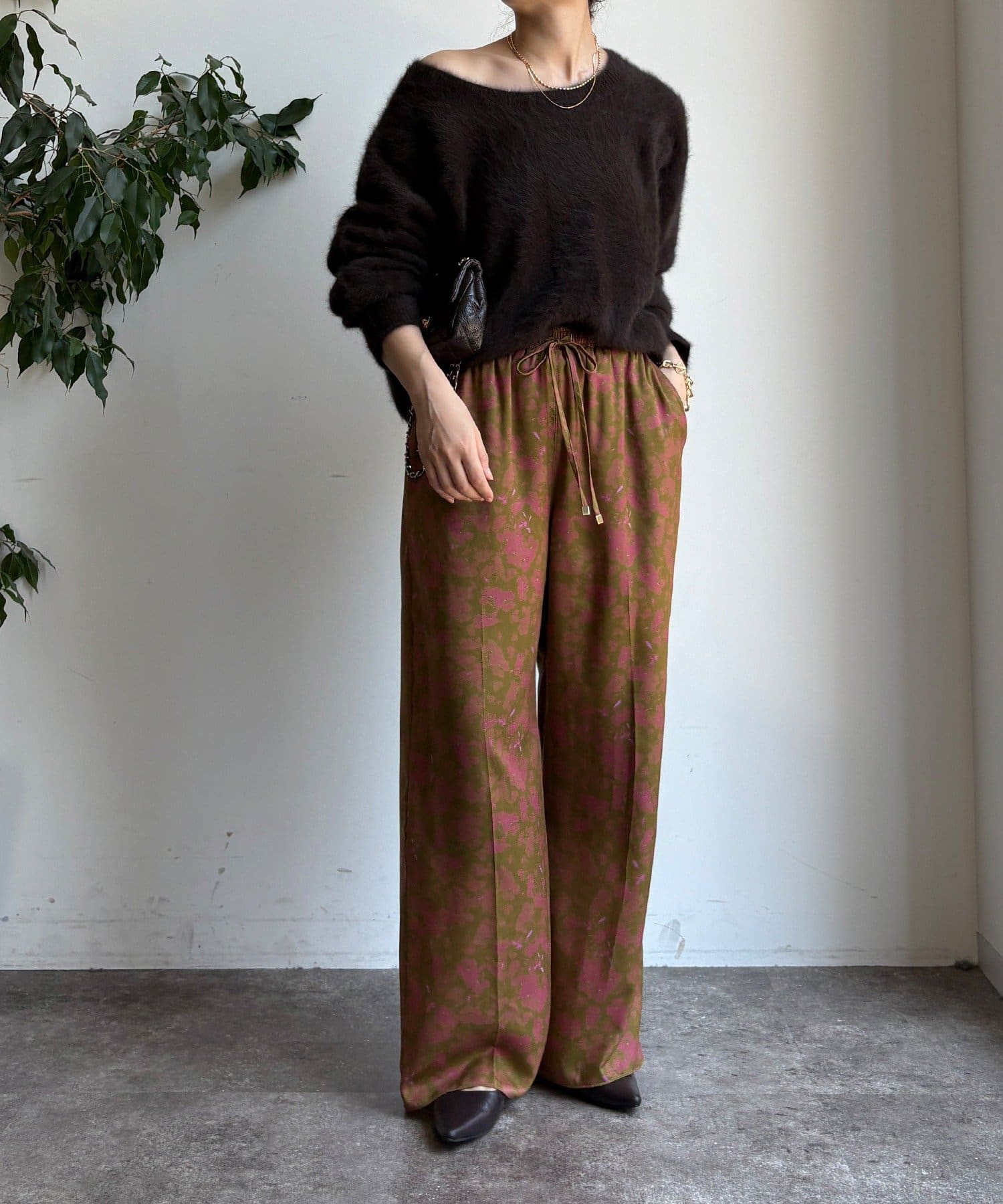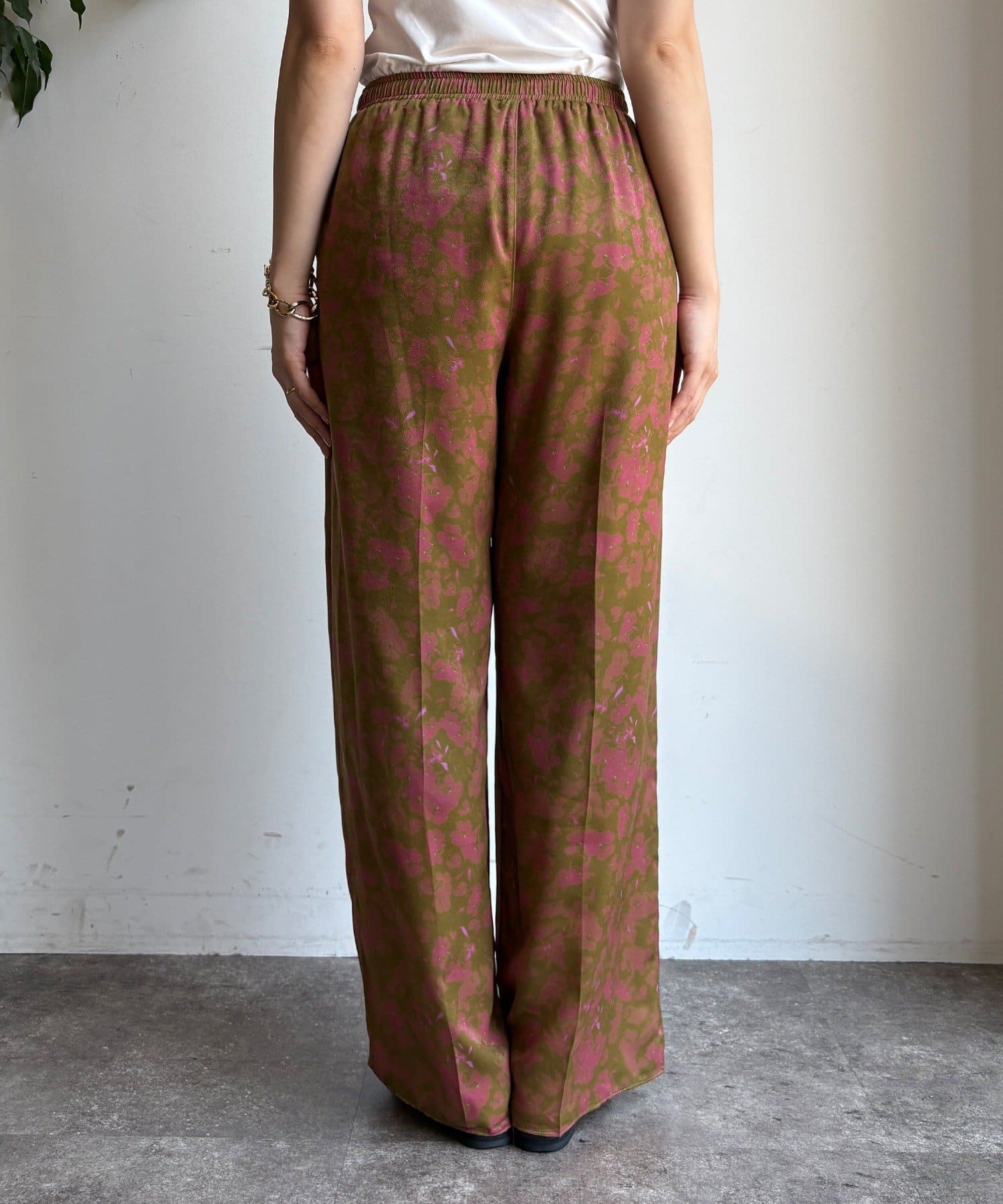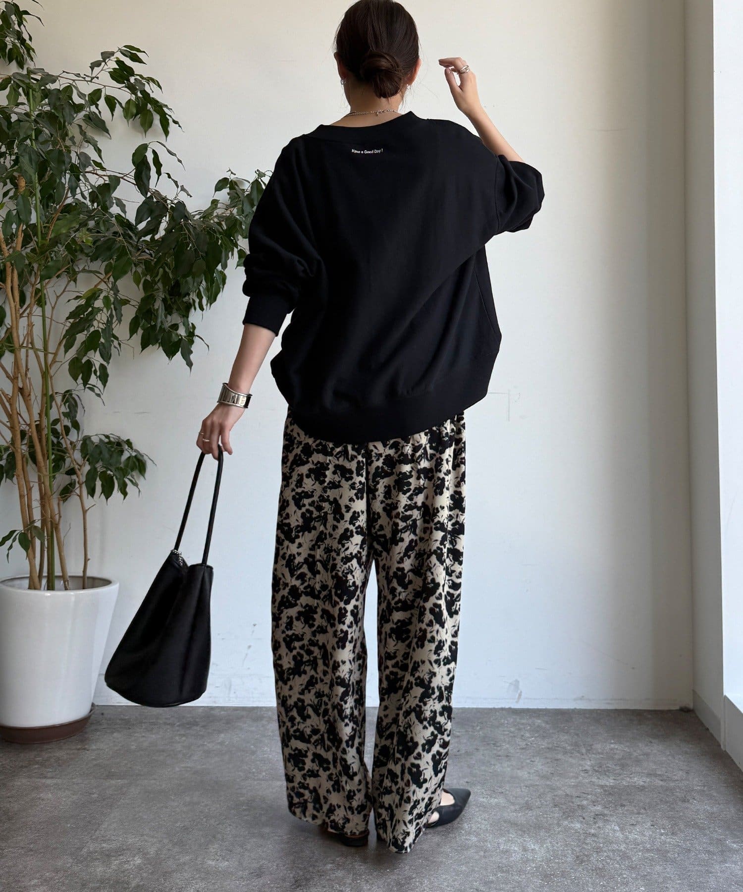 上品なフラワープリントが目を惹く、リラックス感漂うワイドパンツ。