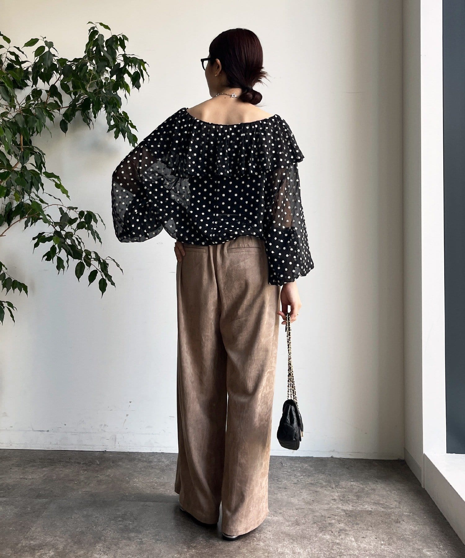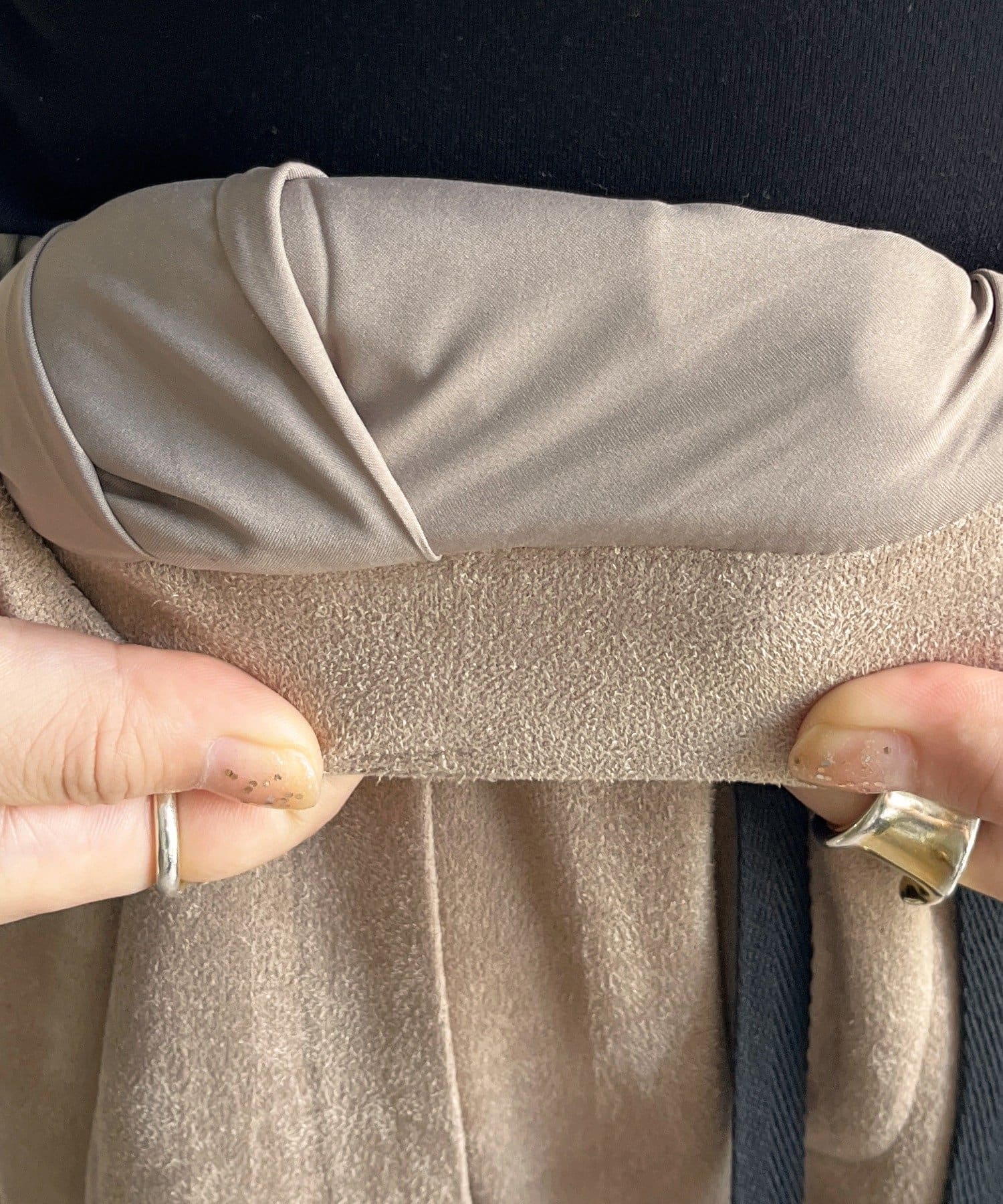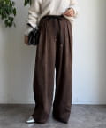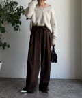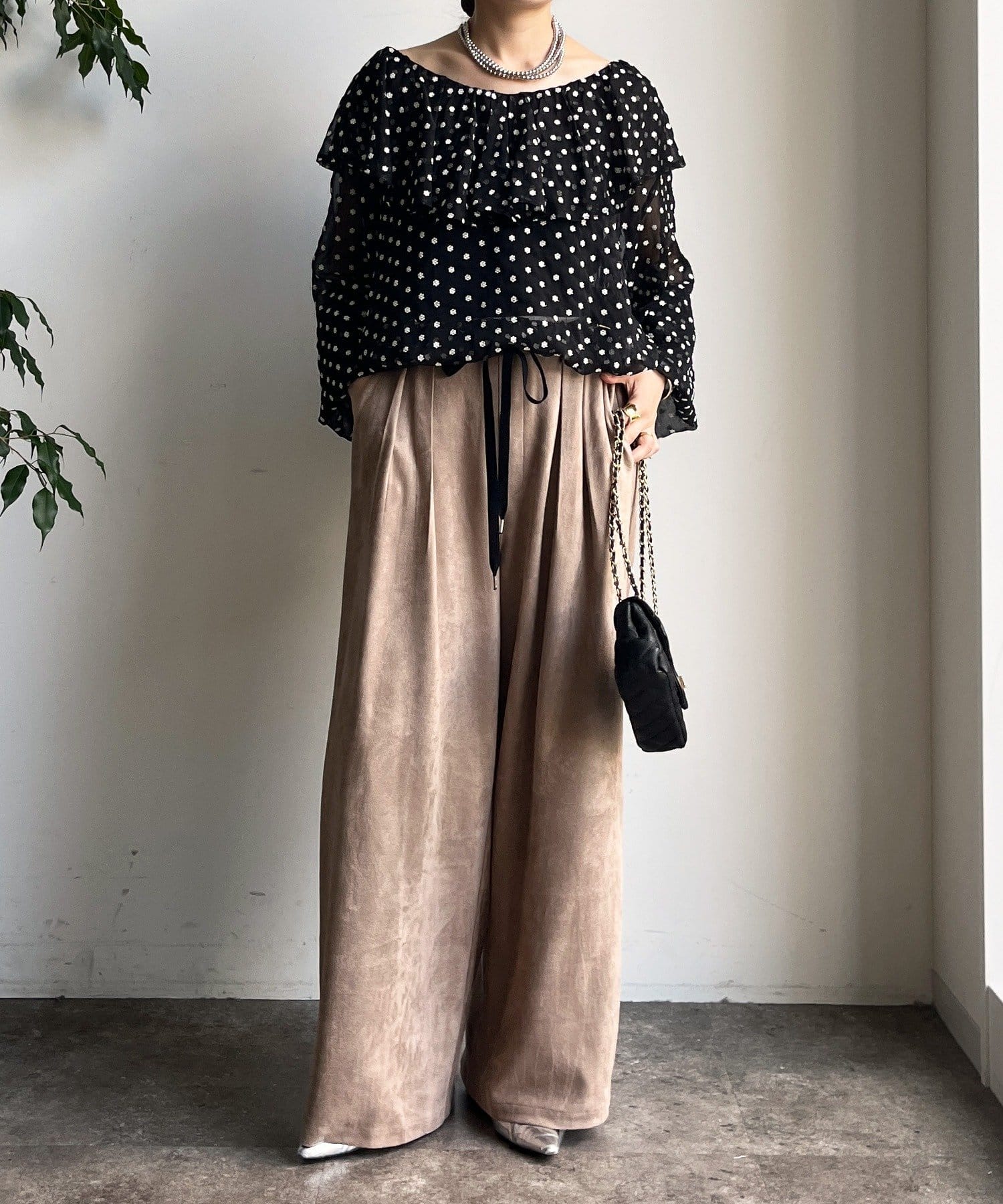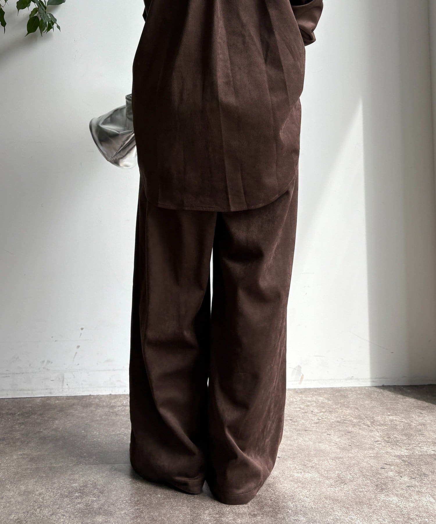今季トレンドのスウェード素材を使用したタックパンツ。