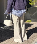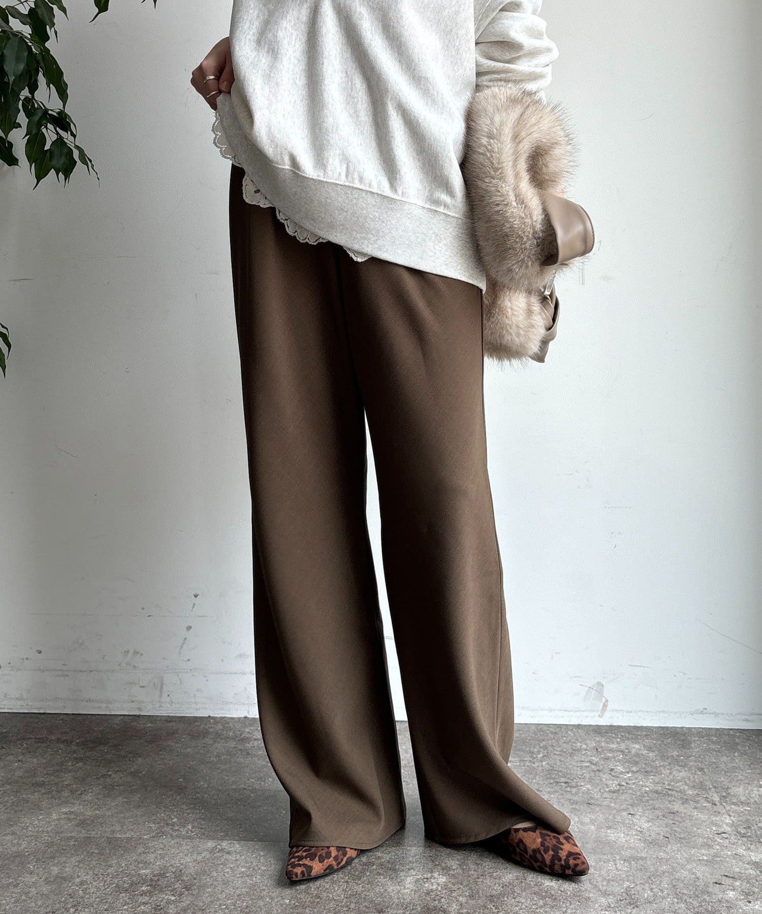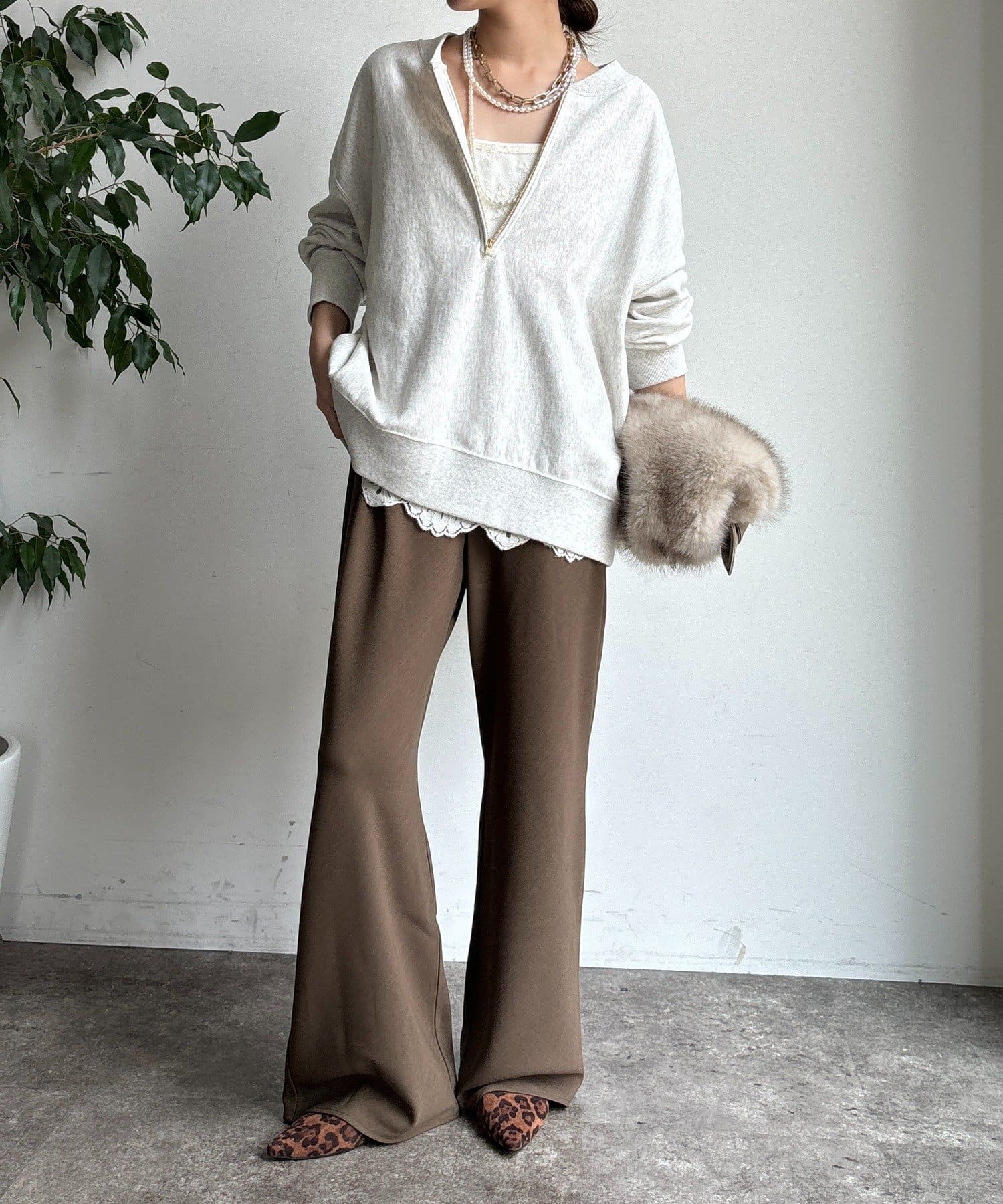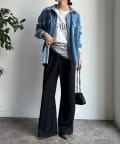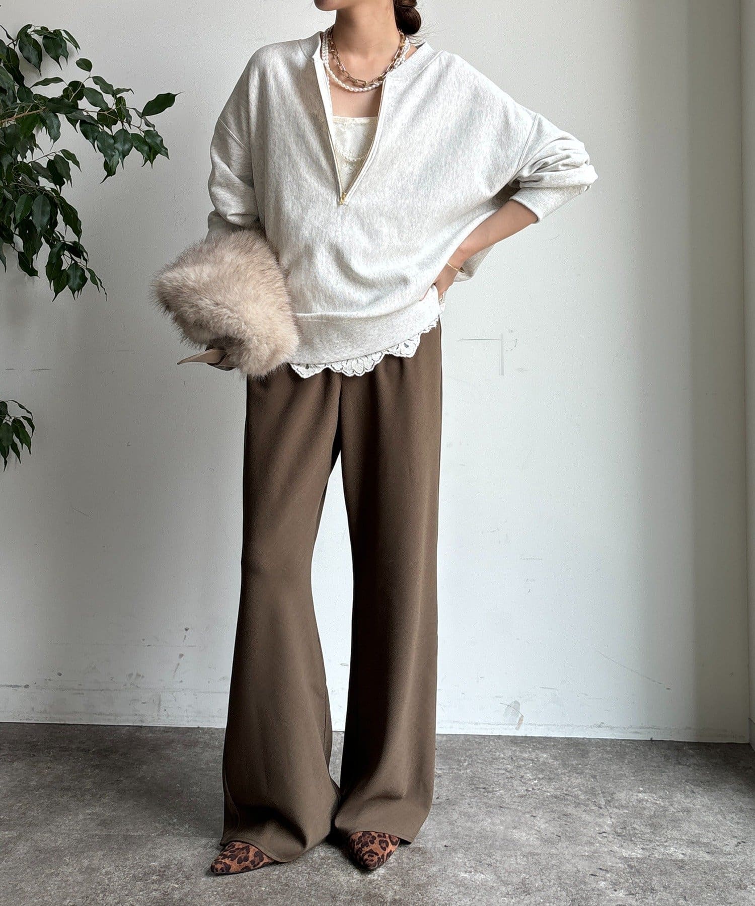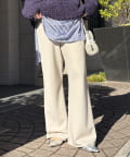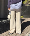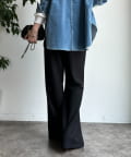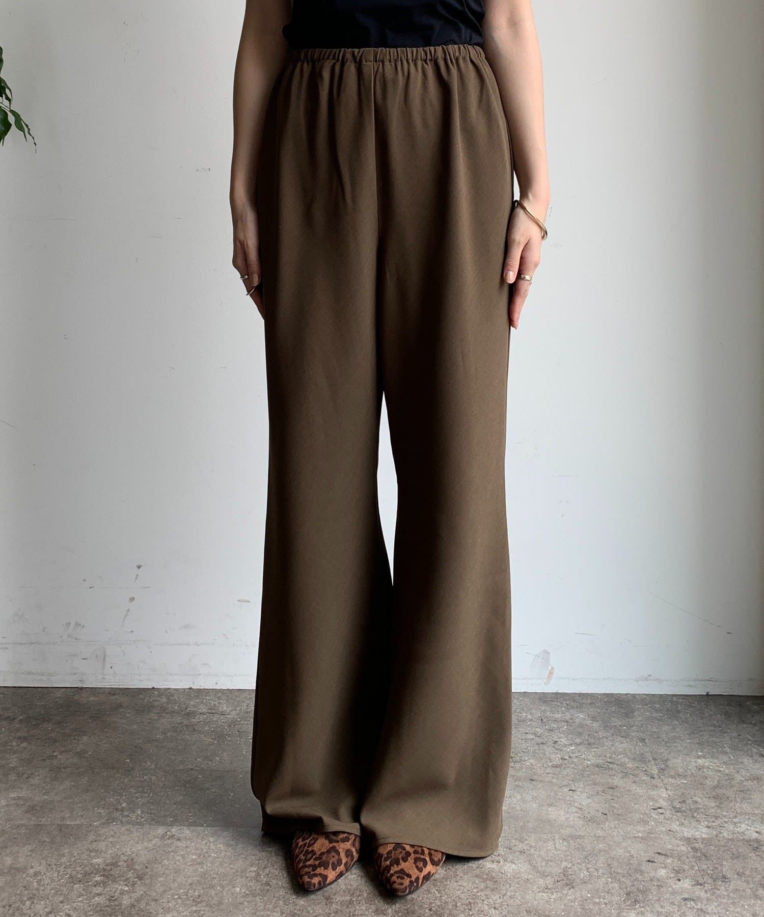 フレアに広がるシルエットで、細見えが叶うパンツ。