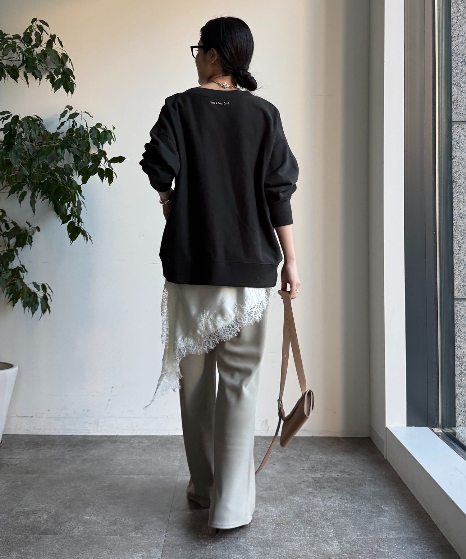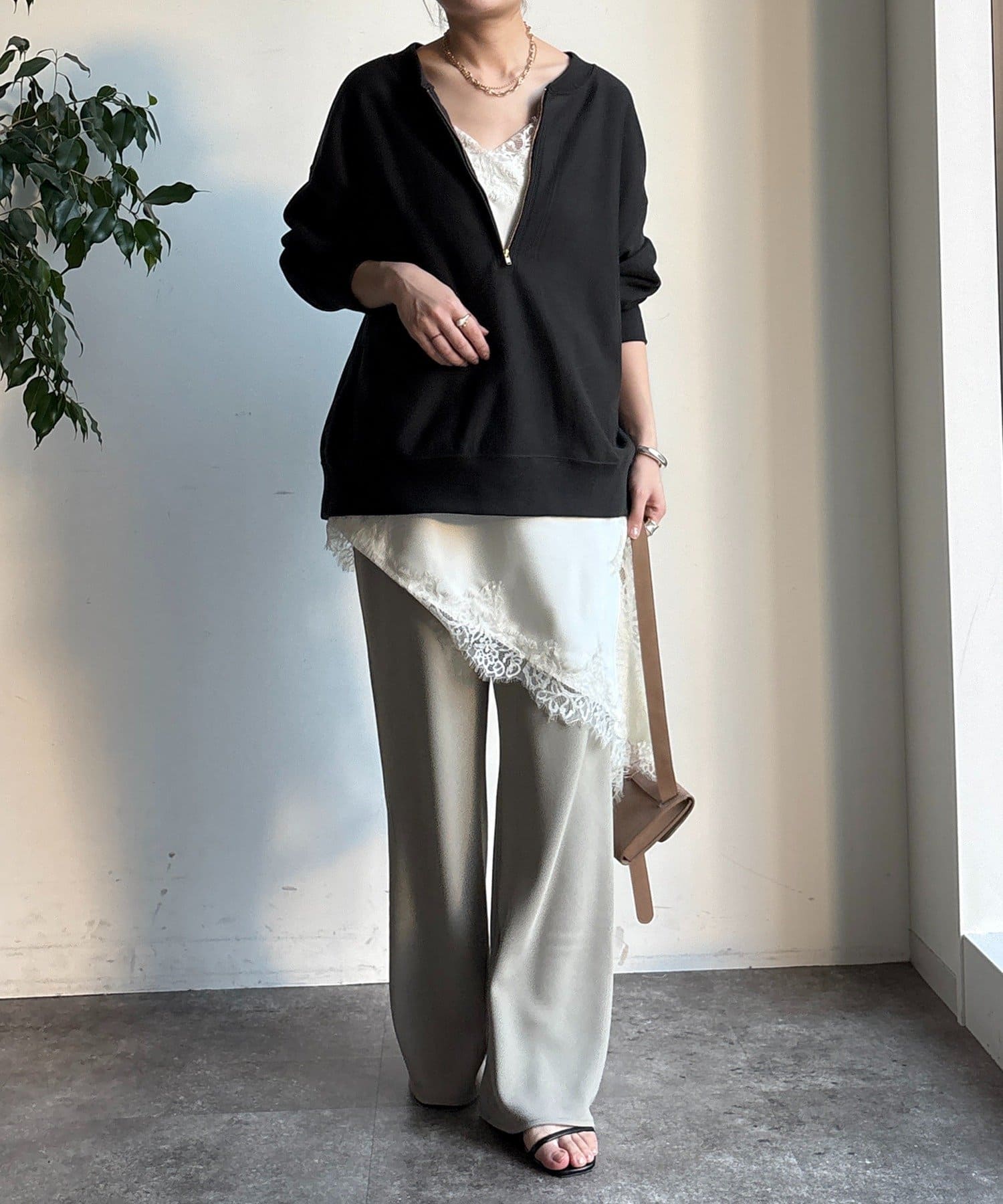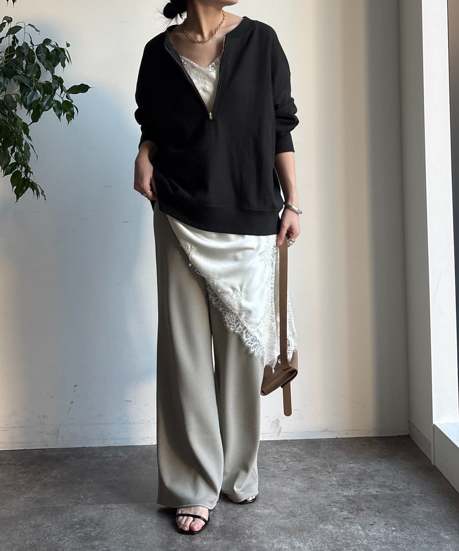 柔らかくて落ち感のある生地は履いていると程よく揺れ、綺麗見えします。