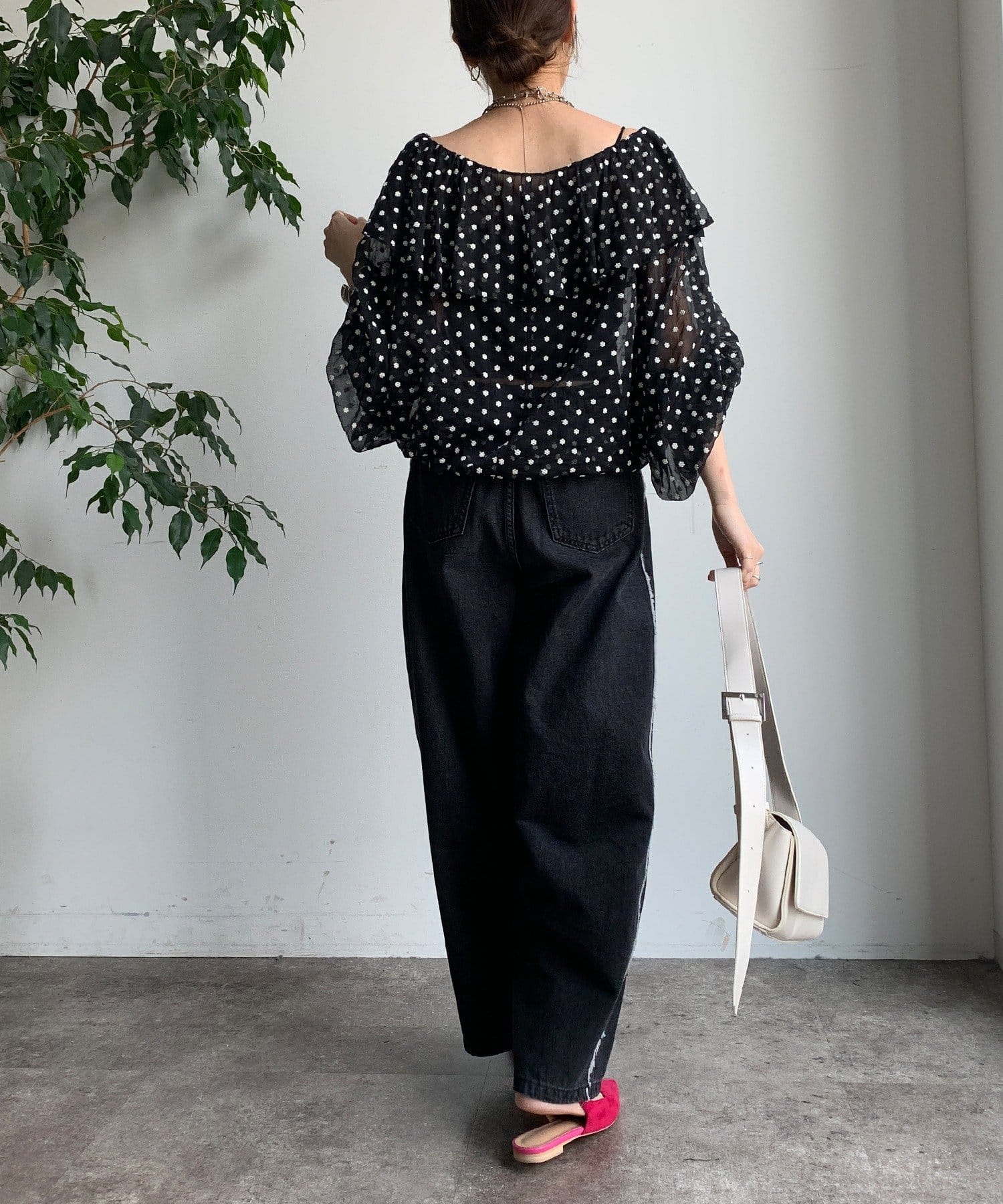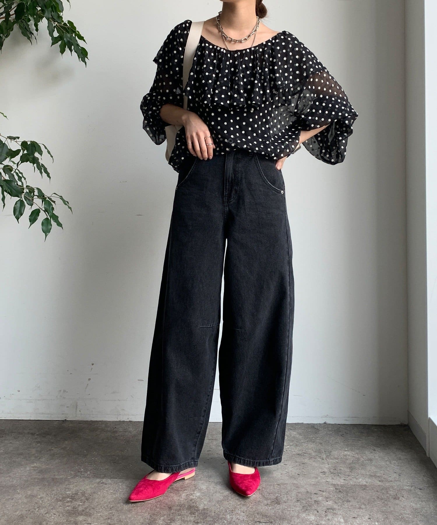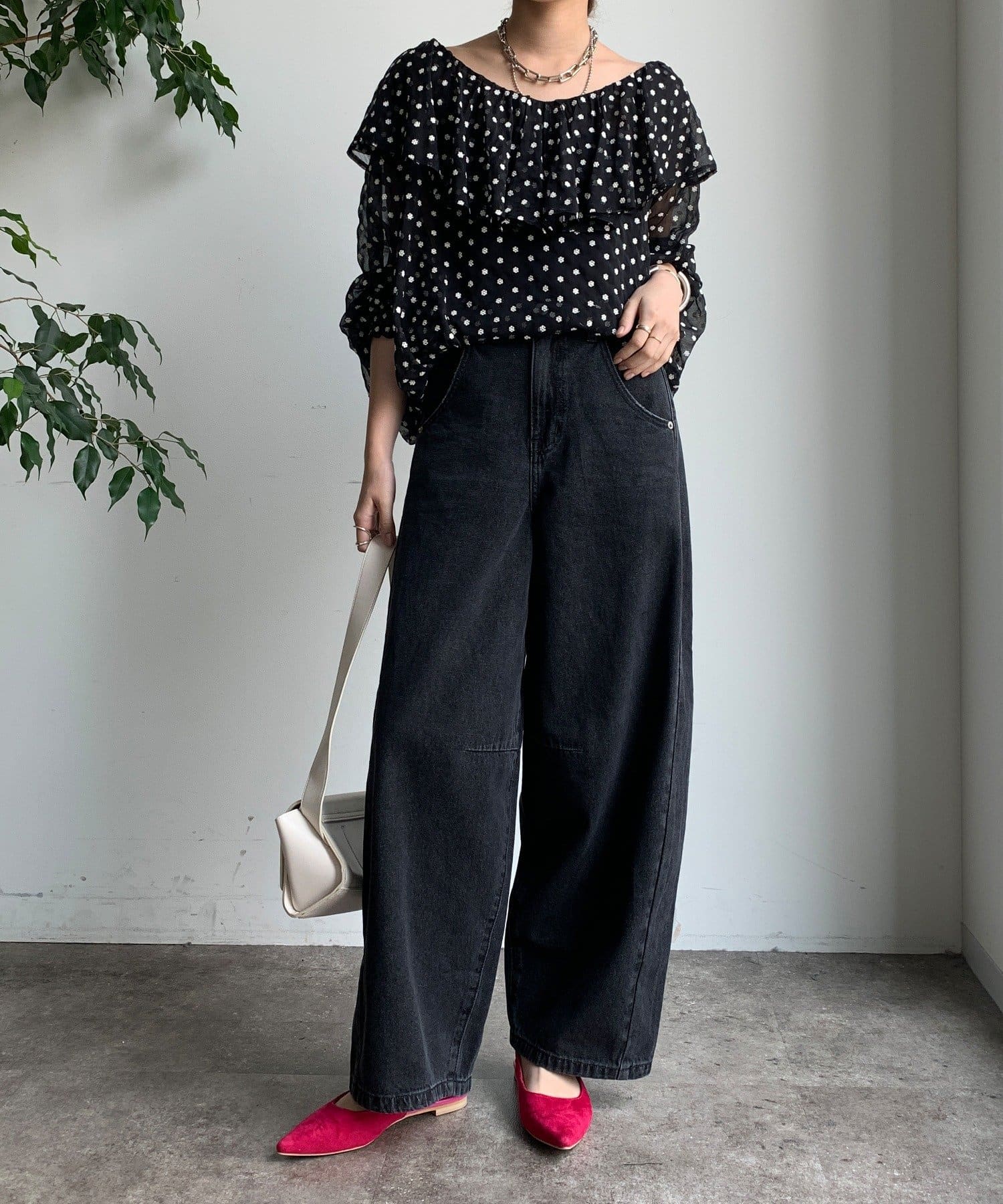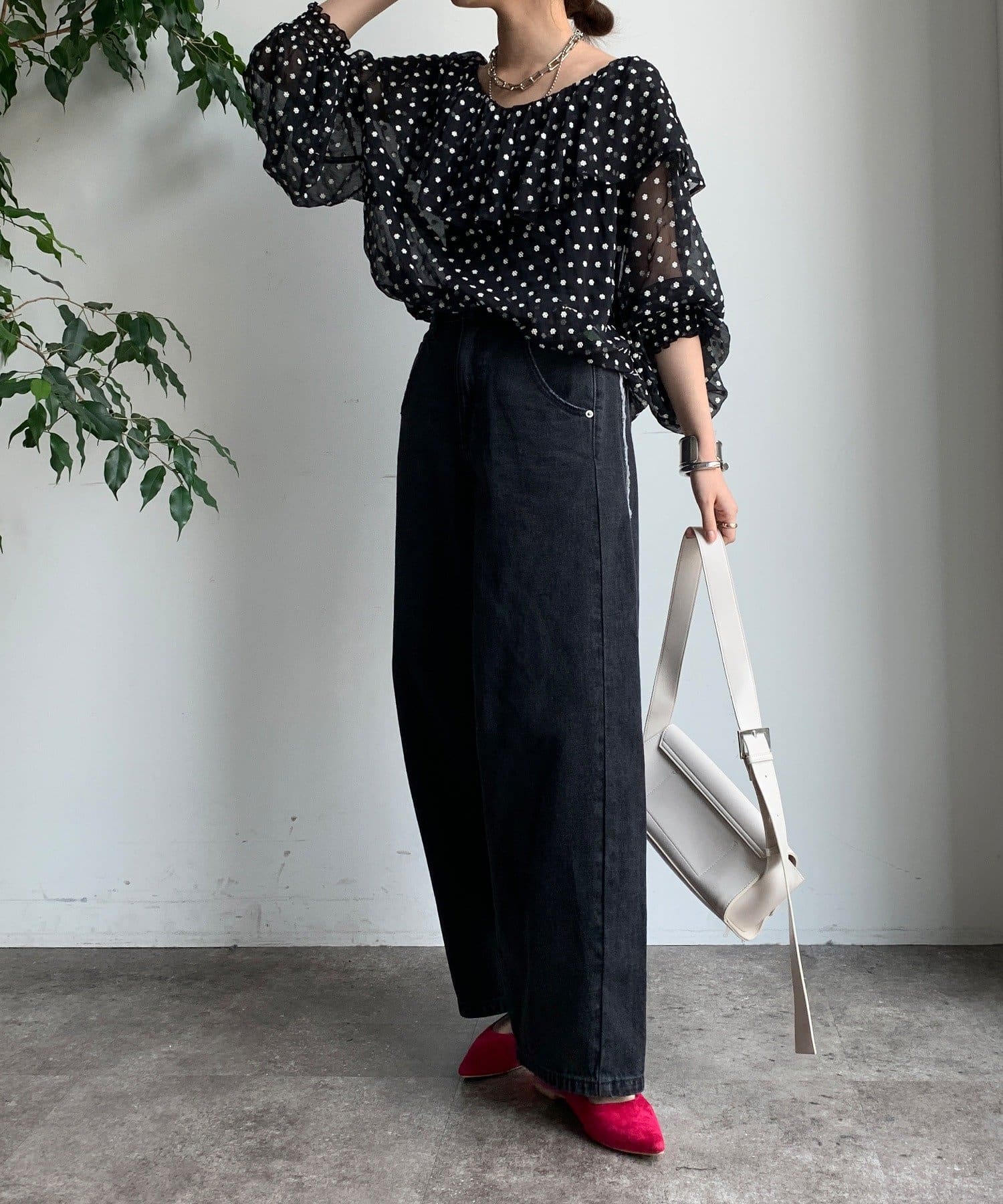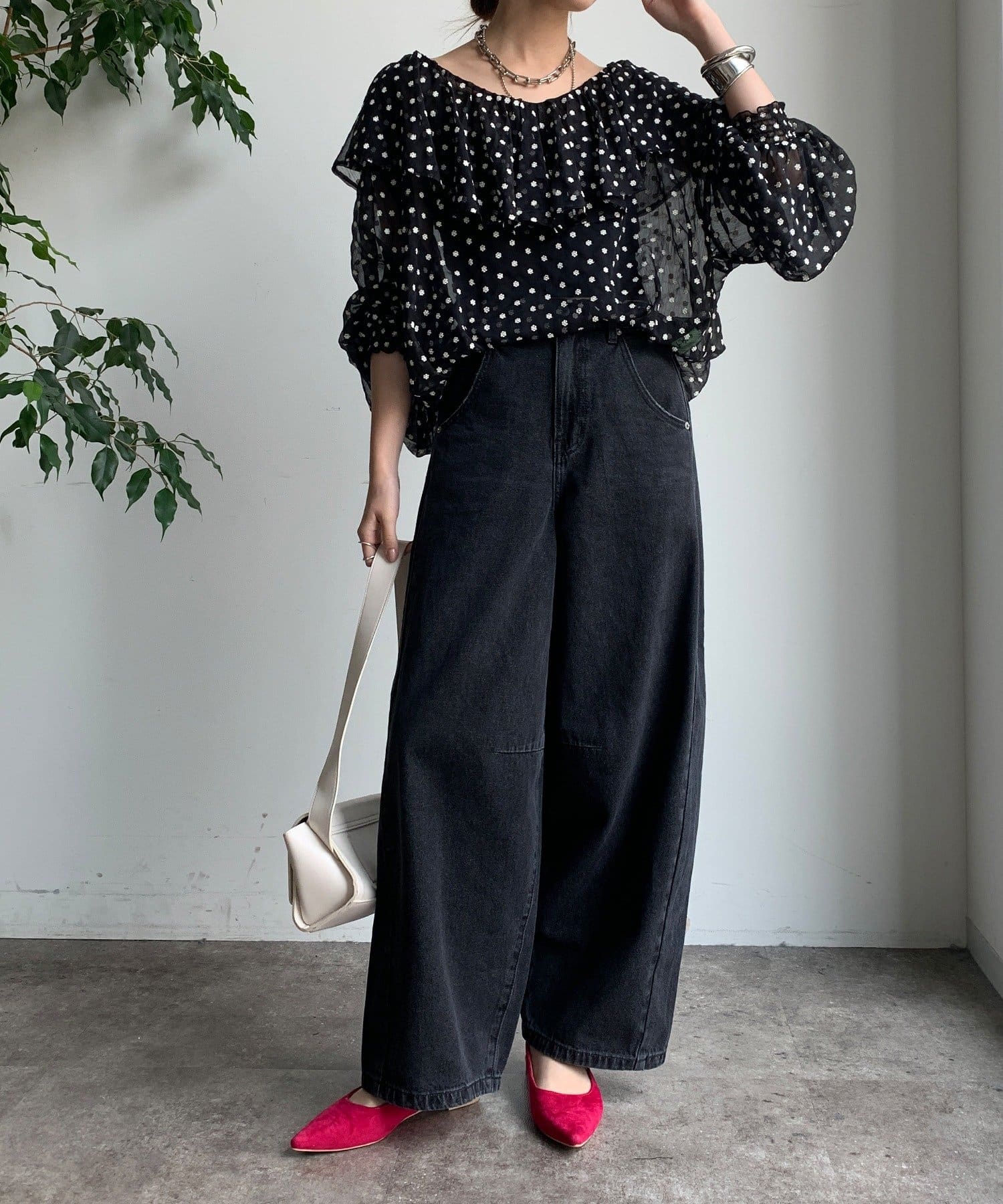 シンプルなトップスに合わせるだけで、こなれ感のあるスタイリングが完成します。