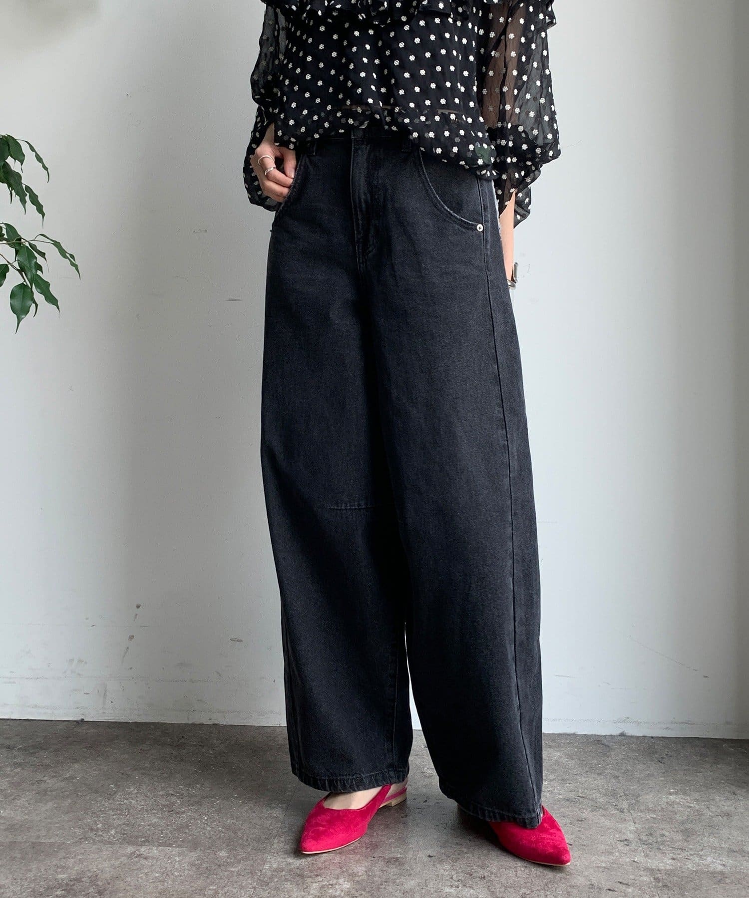 ワイドなシルエットで、リラックスした履き心地ながら、スタイルアップ効果も期待できます。