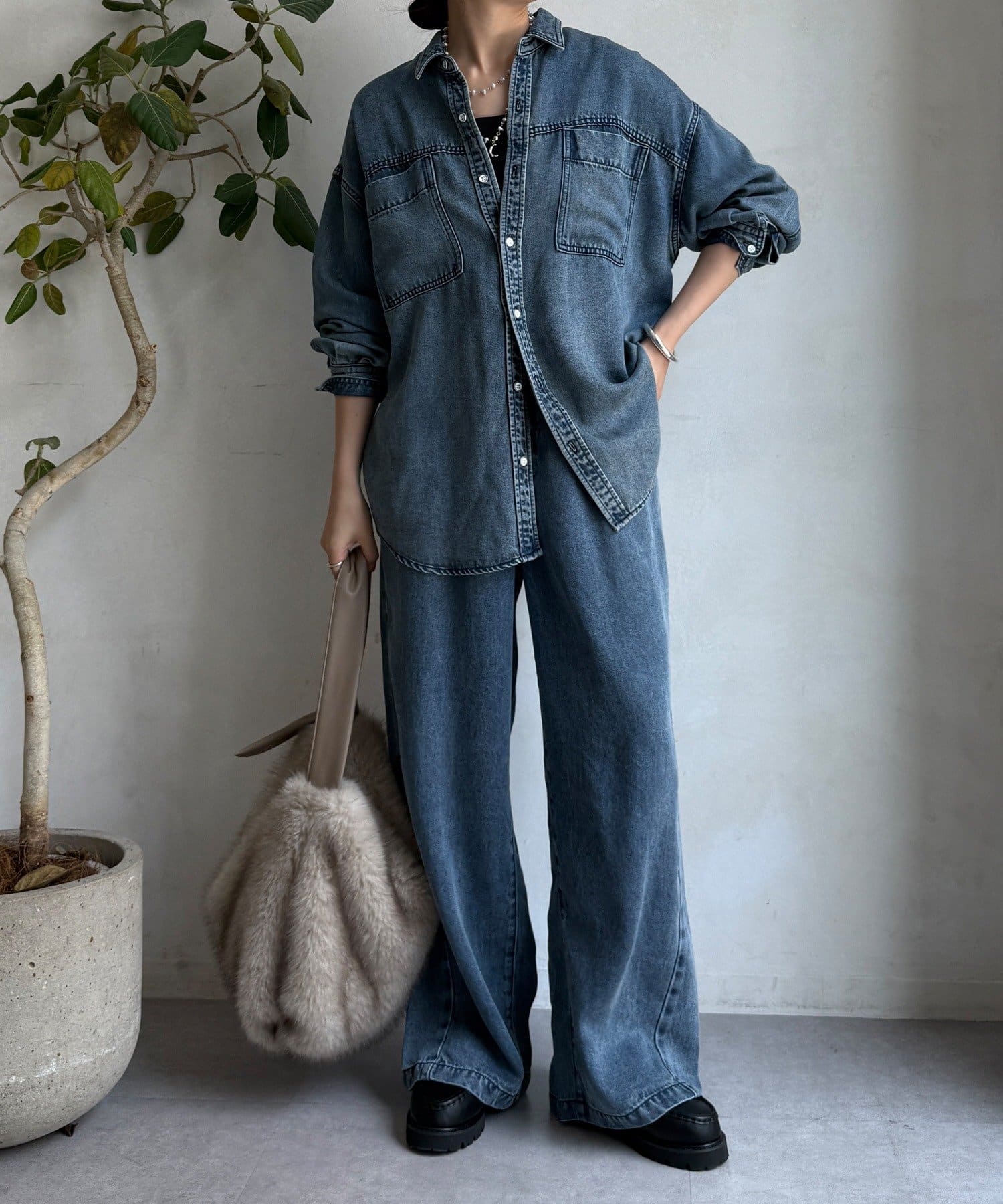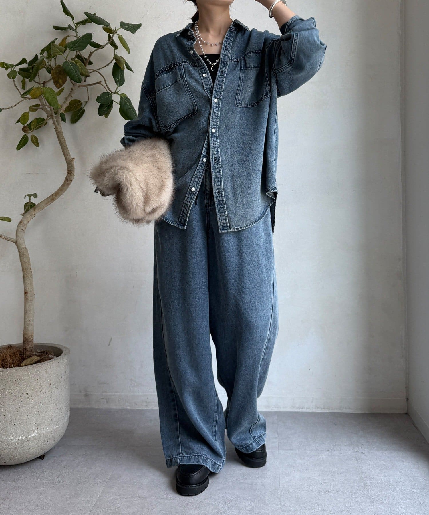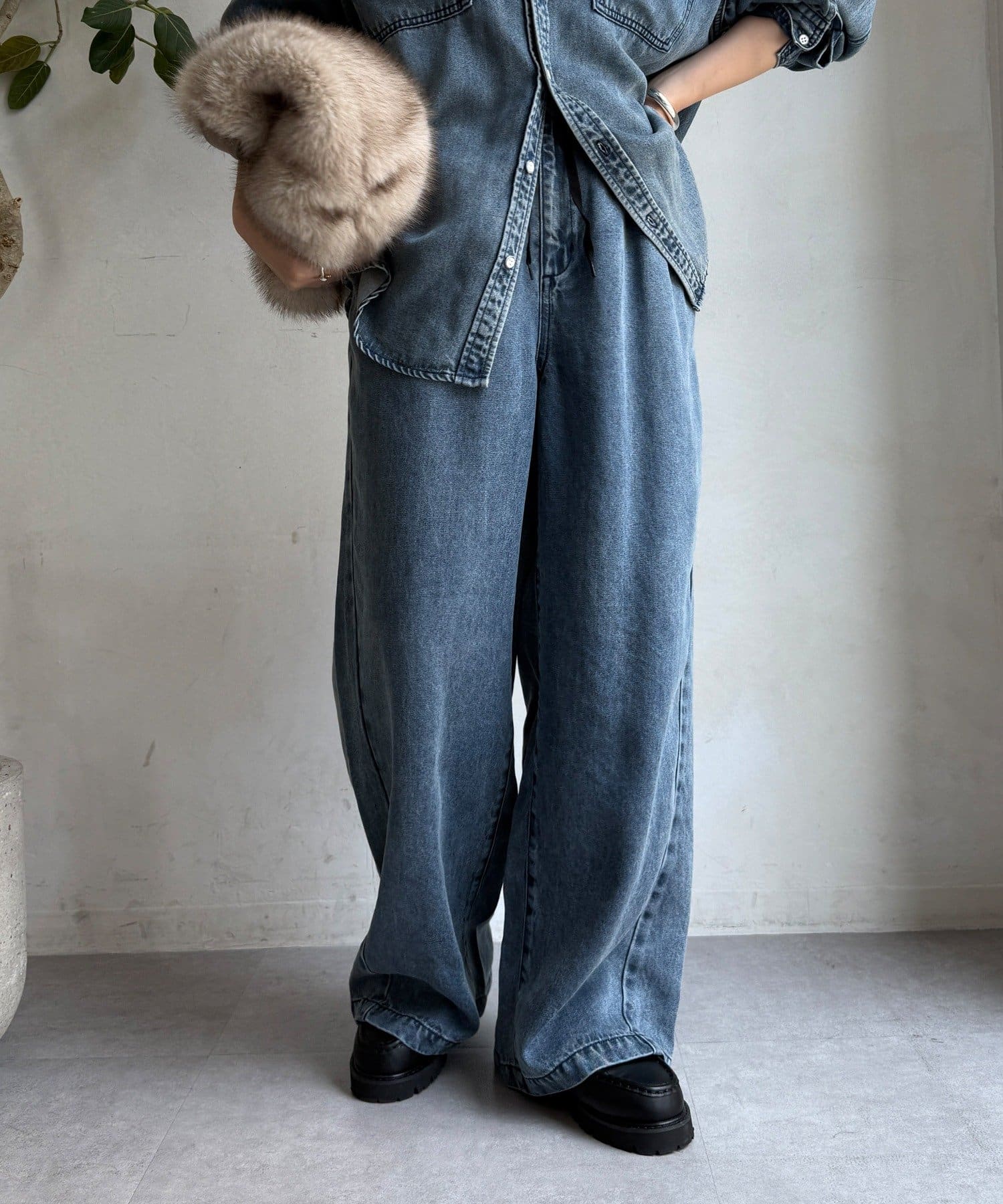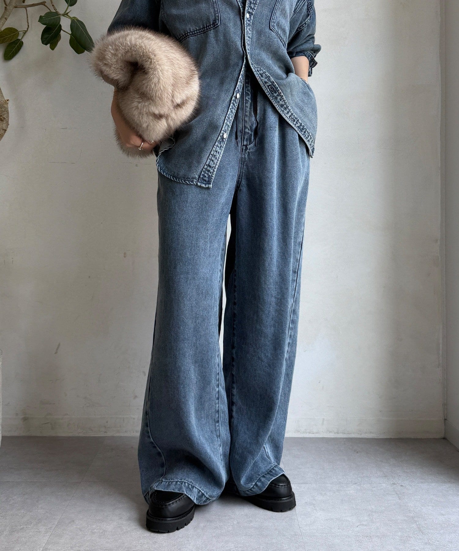 【セットアップ対応】リヨセルデニムワイドパンツ