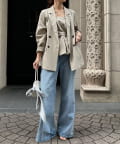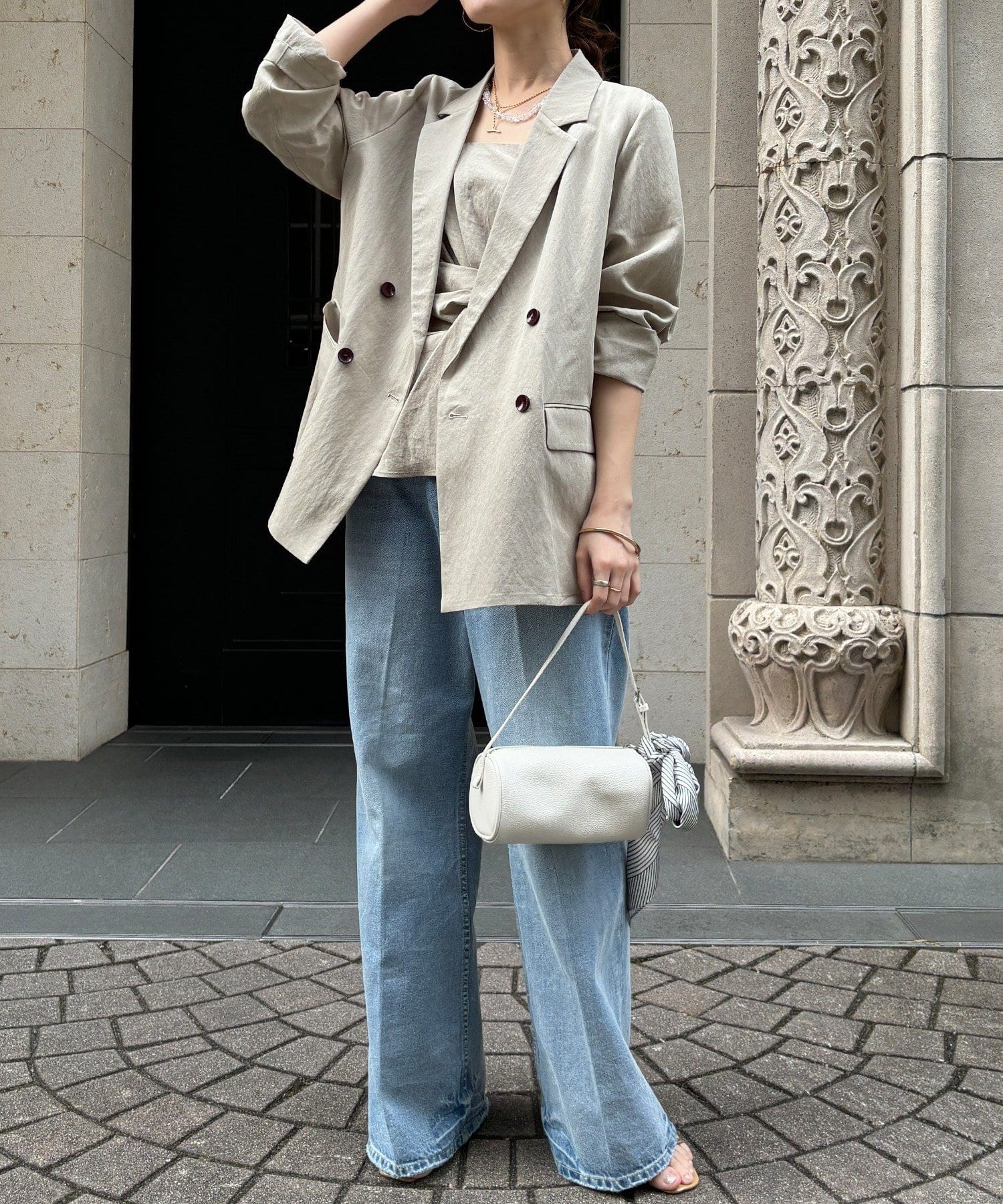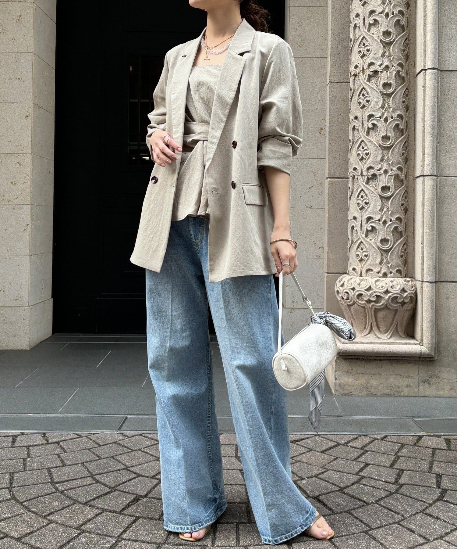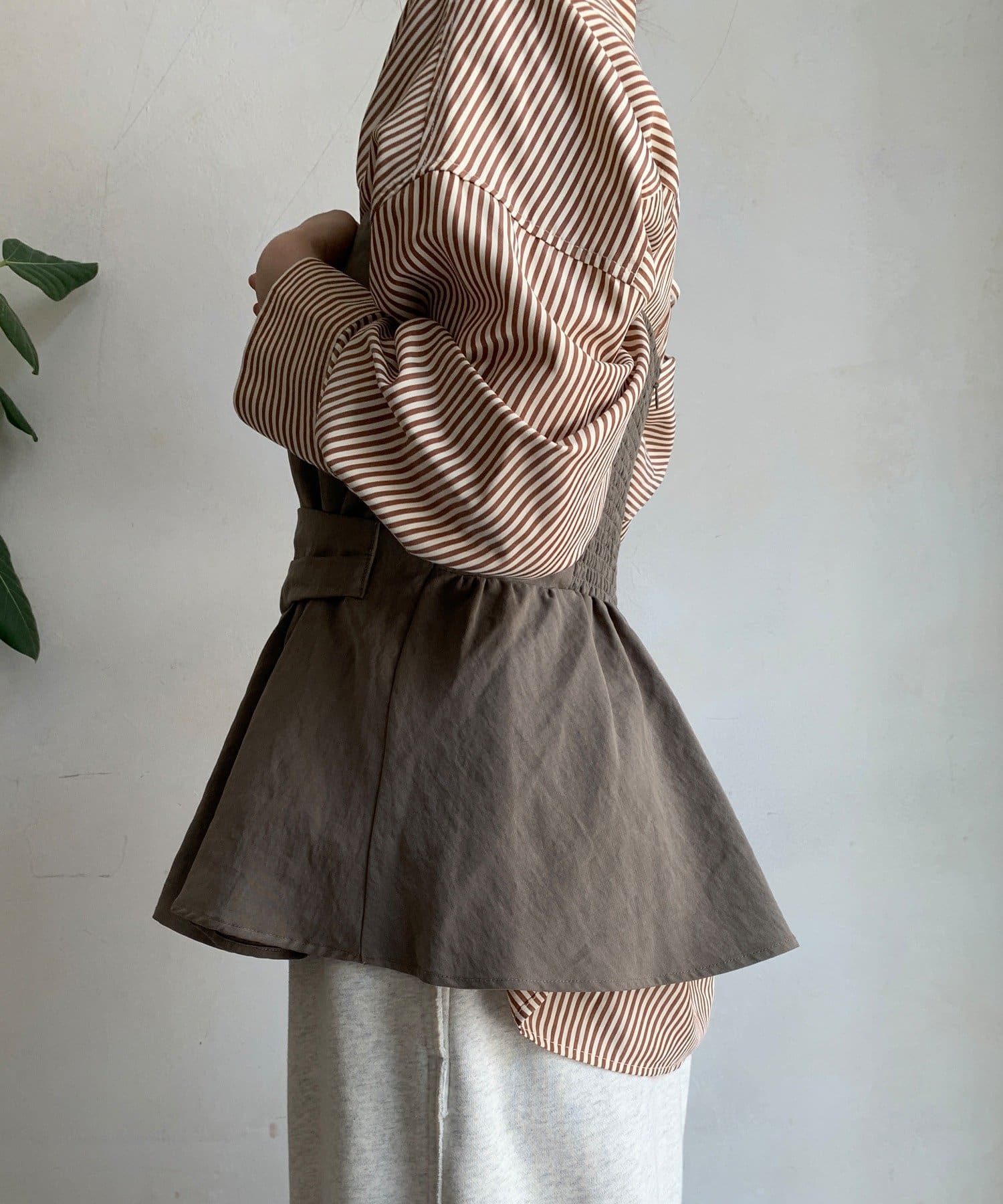 いつものトップスに重ねるだけで、こなれ感のあるレイヤードスタイルが完成するデザインビスチェ。