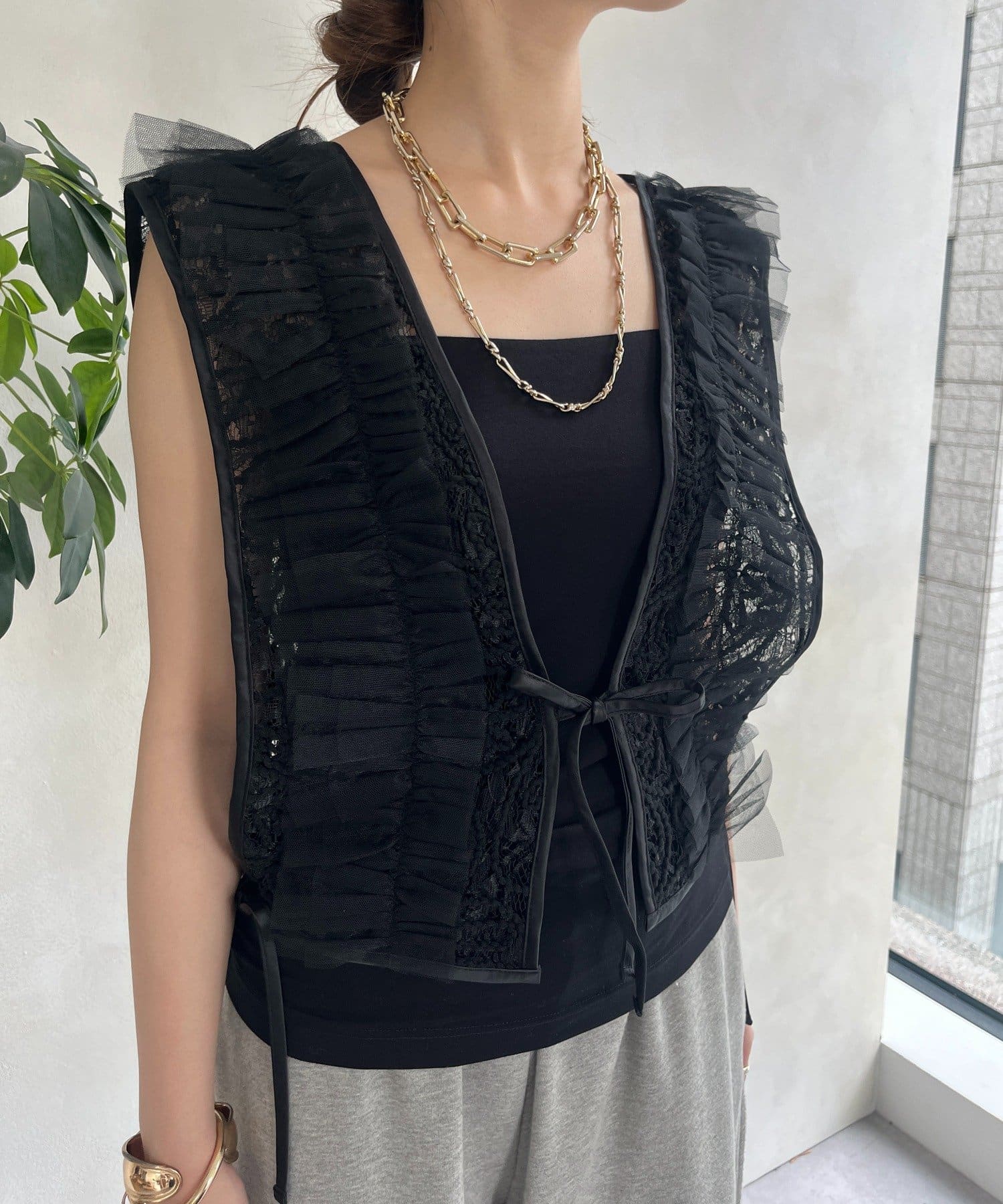 レース×チュールで華やかに!2WAY万能ベスト