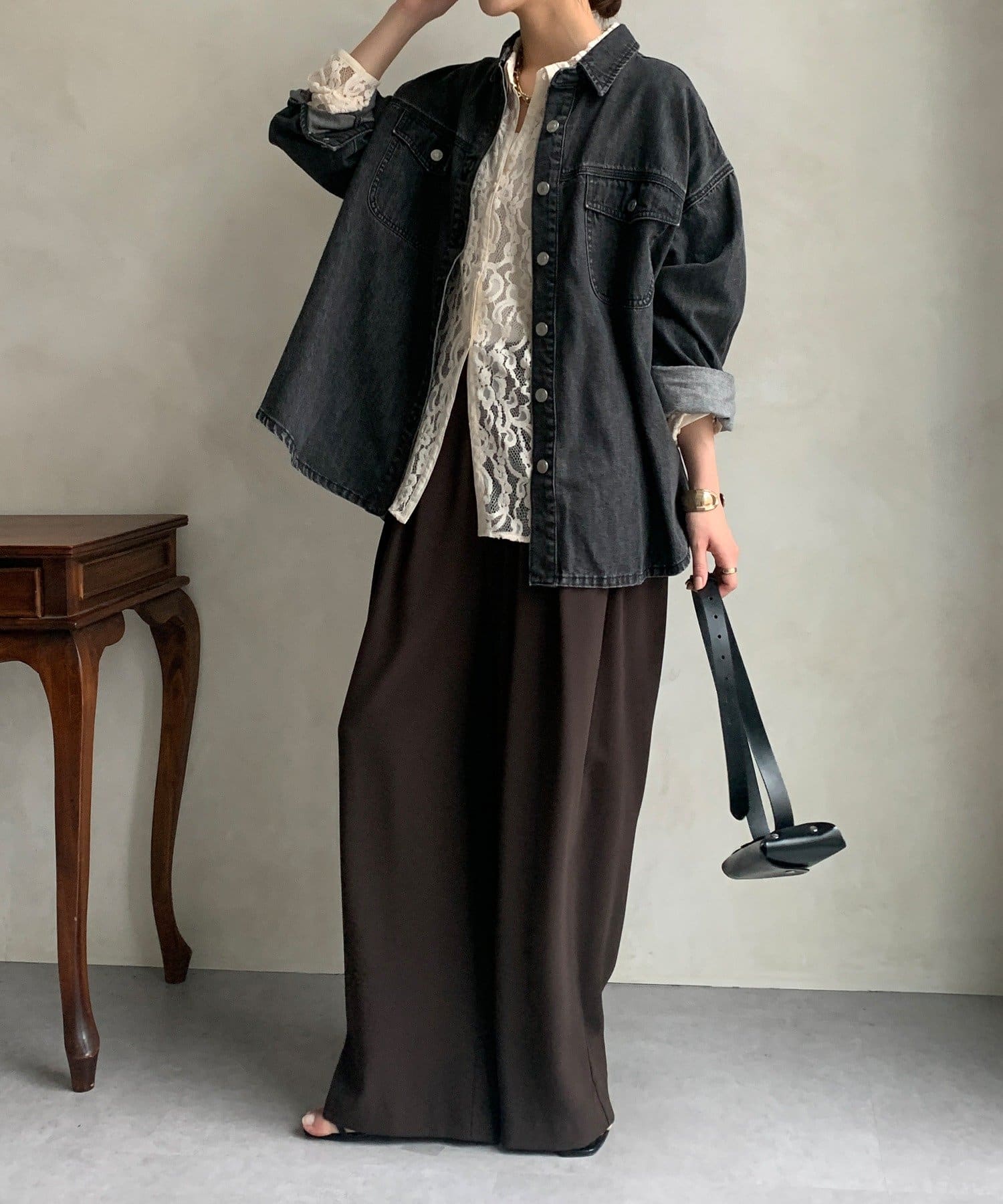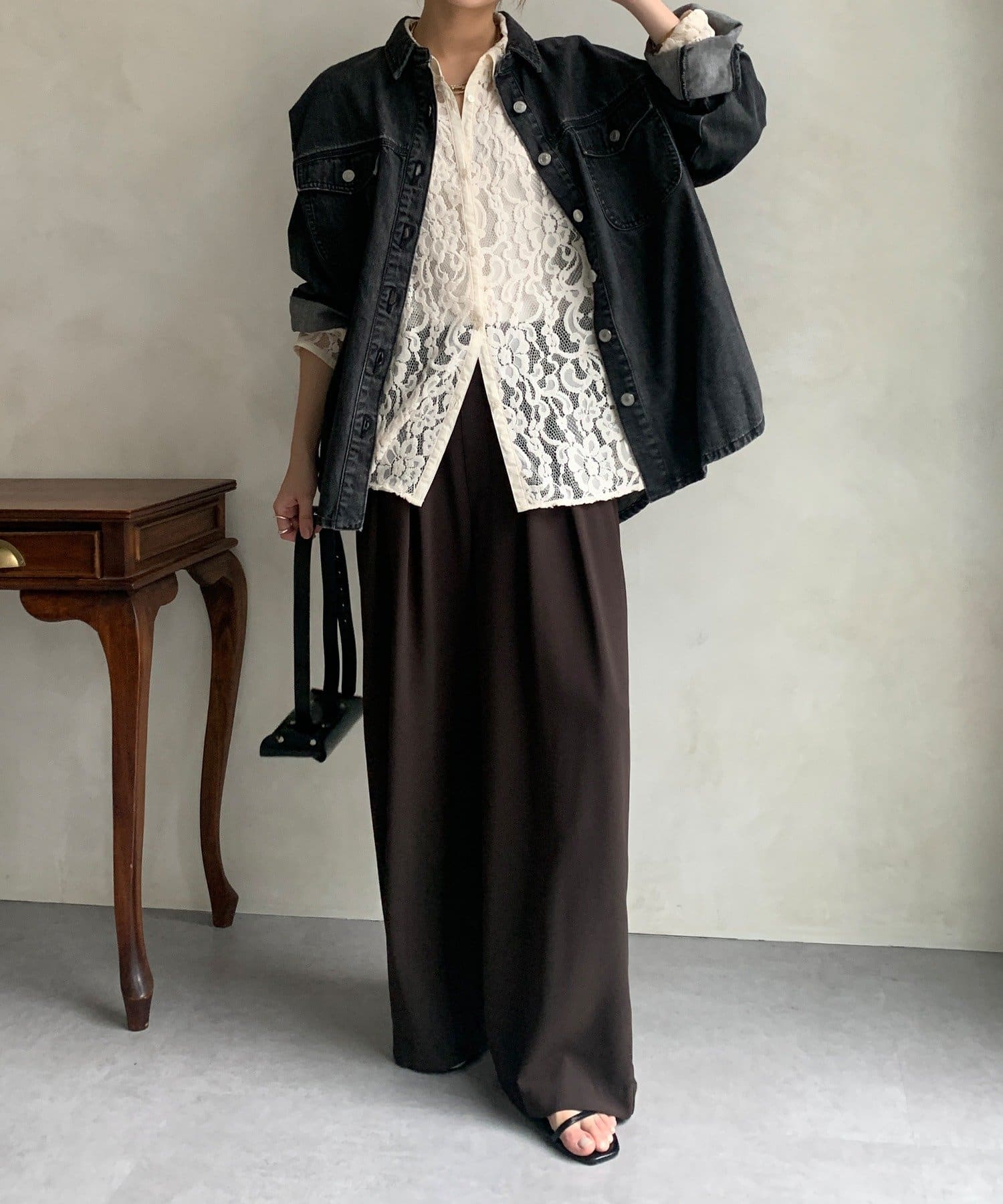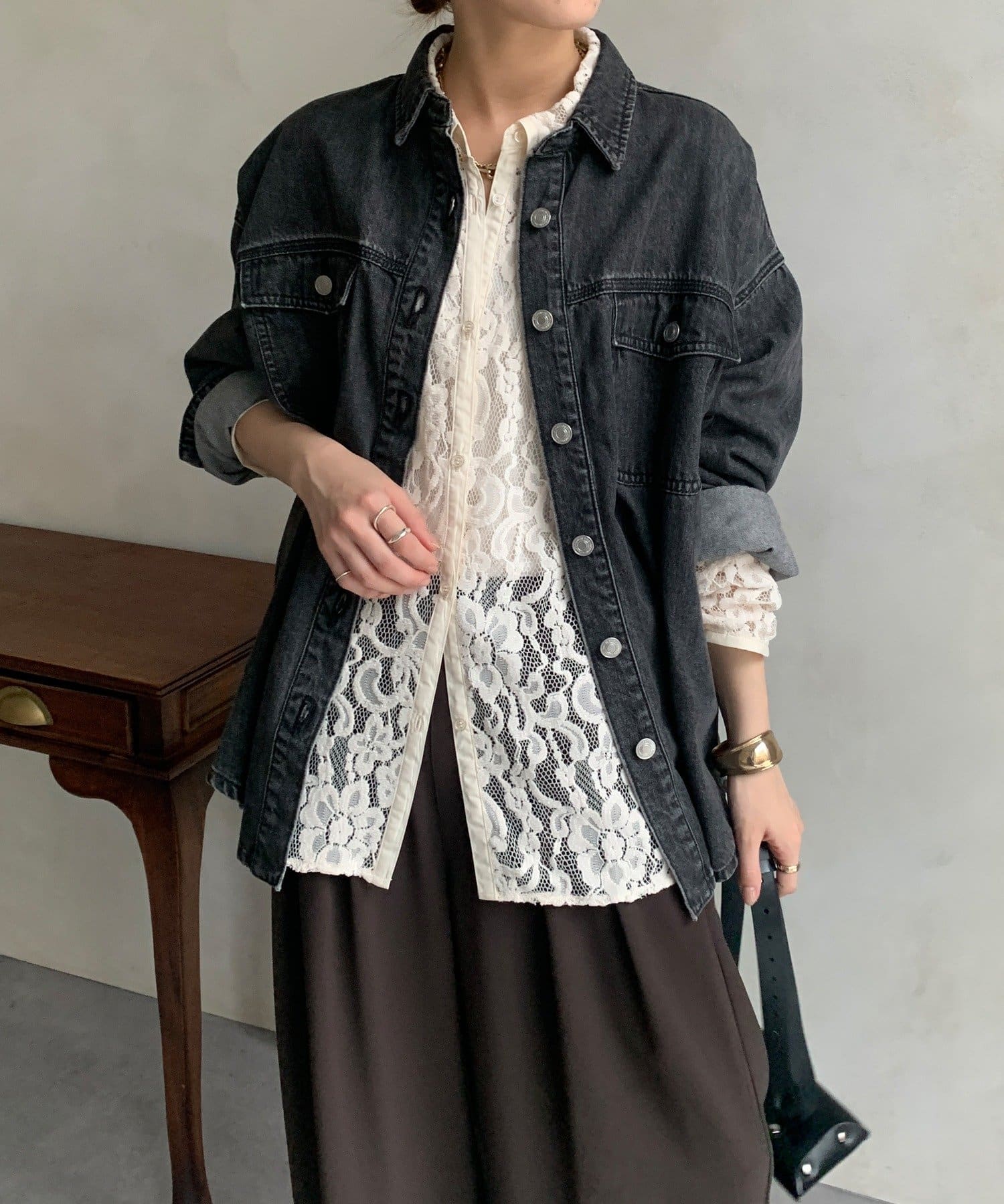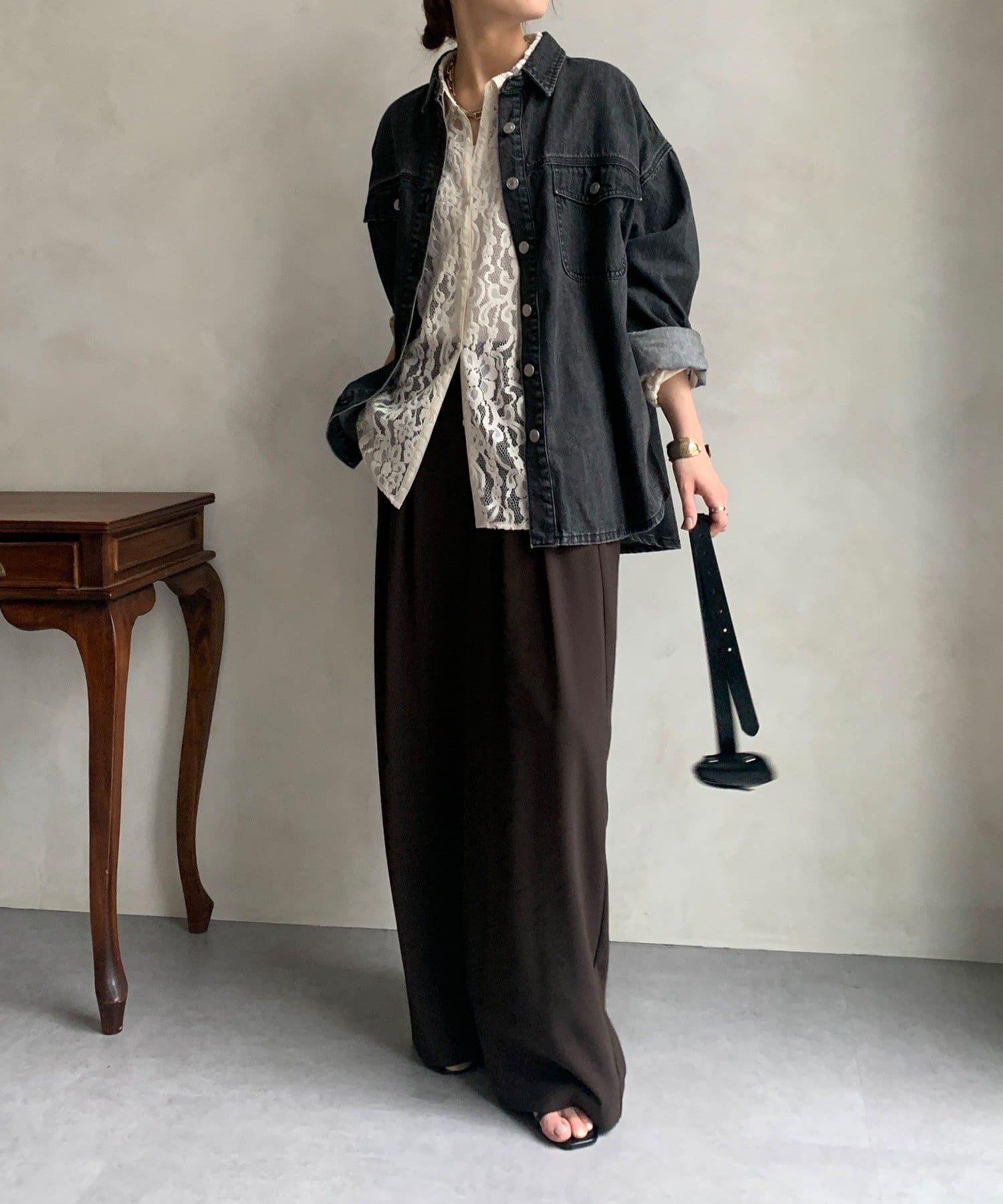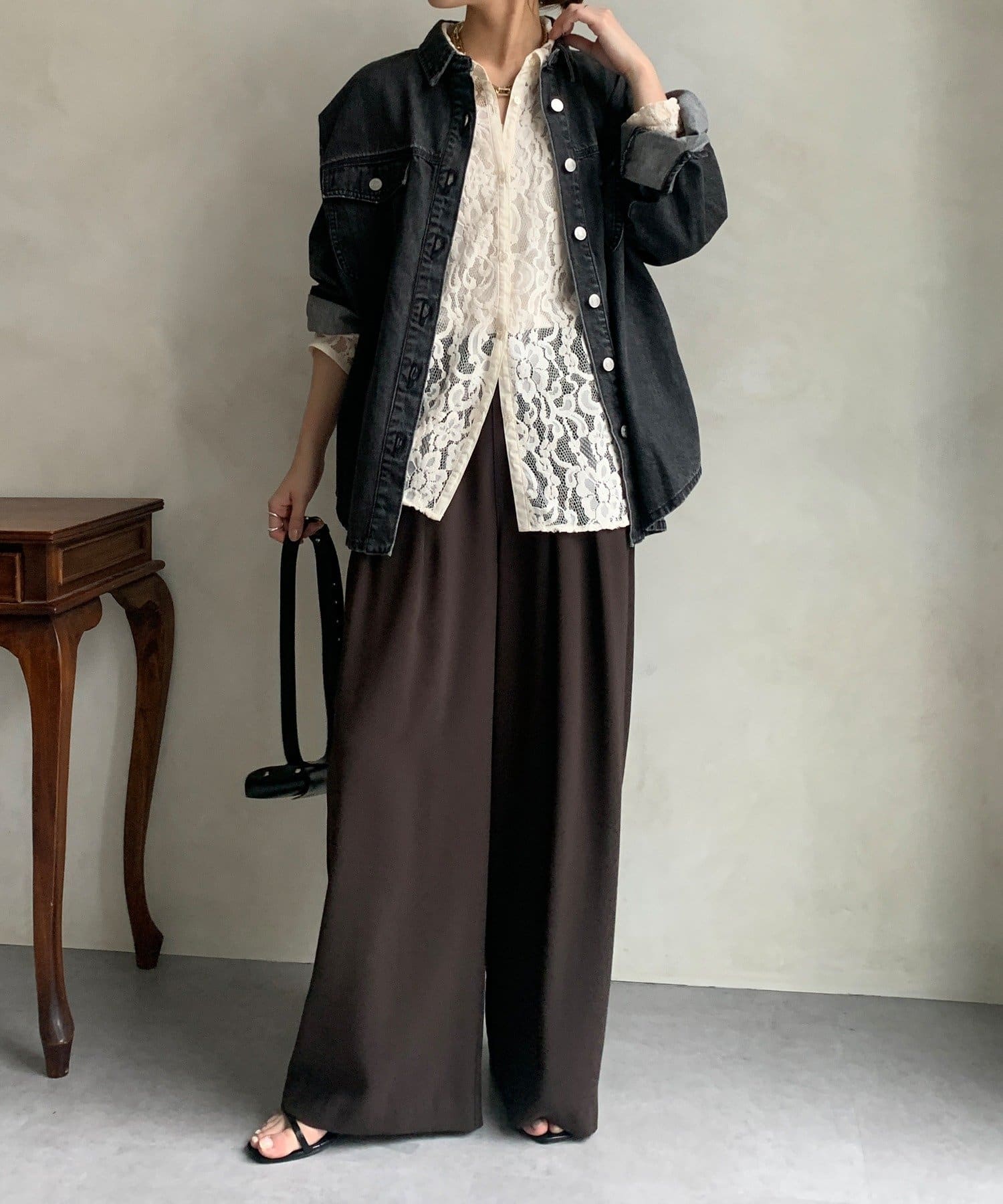 デニムのカジュアルさとレースのフェミニンさが好相性◎