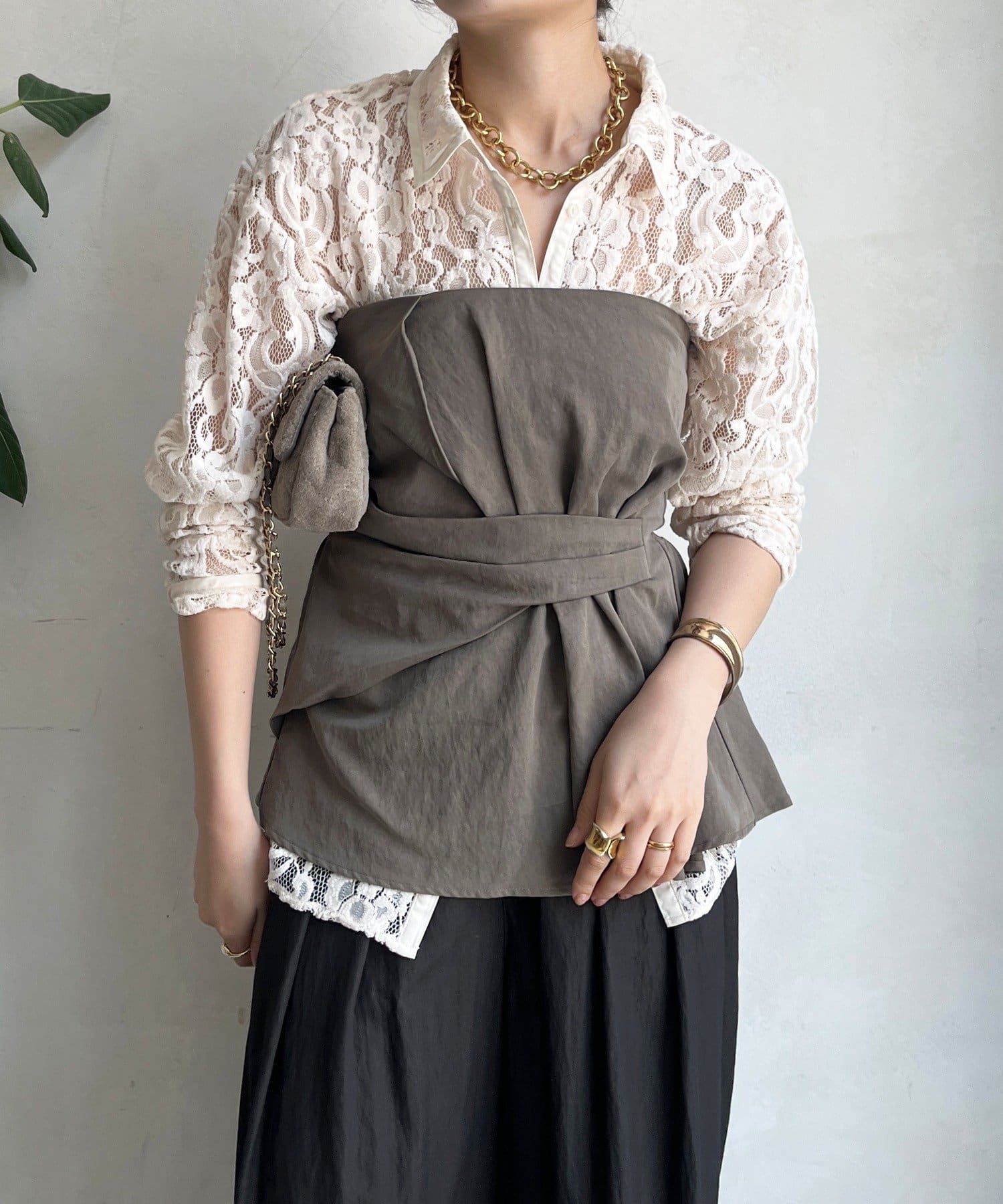 TOP > DOUDOU > レディース > トップス > シャツ/ブラウス(ボタン) > 【完売カラー再追加!】フロッキーレースシャツ