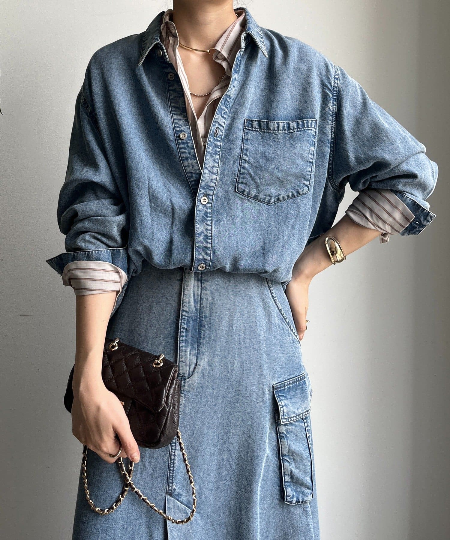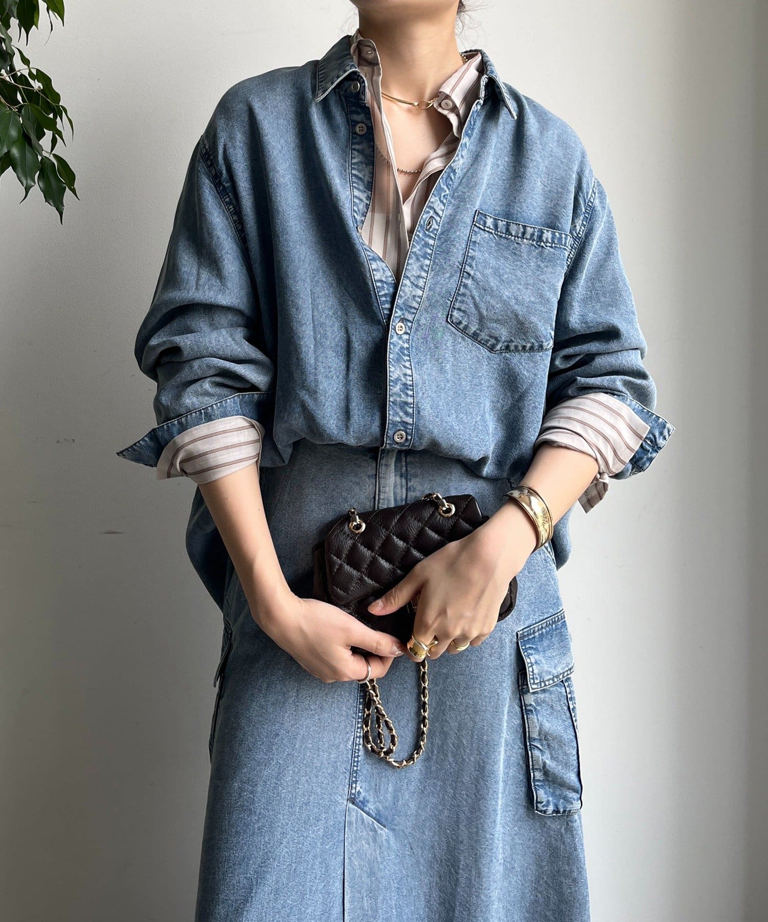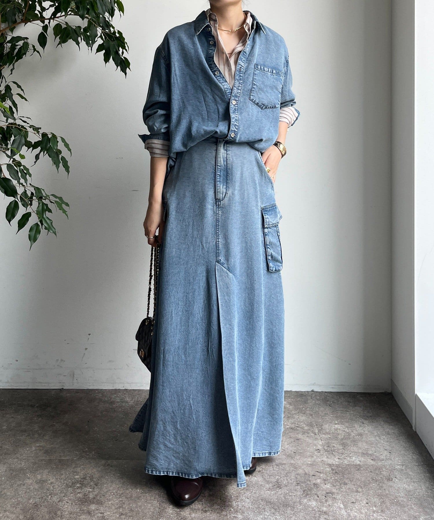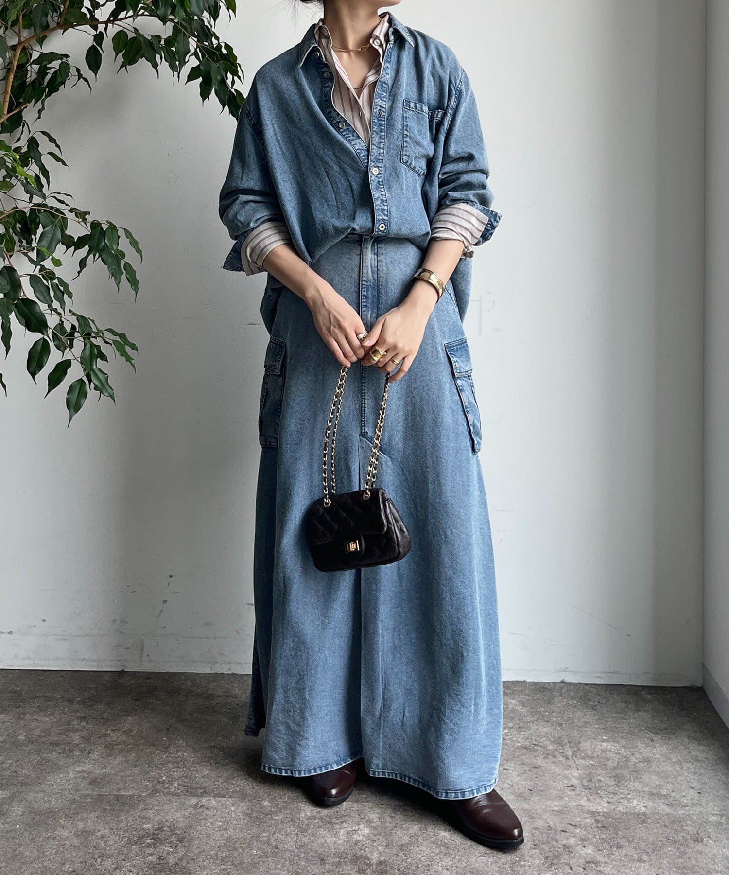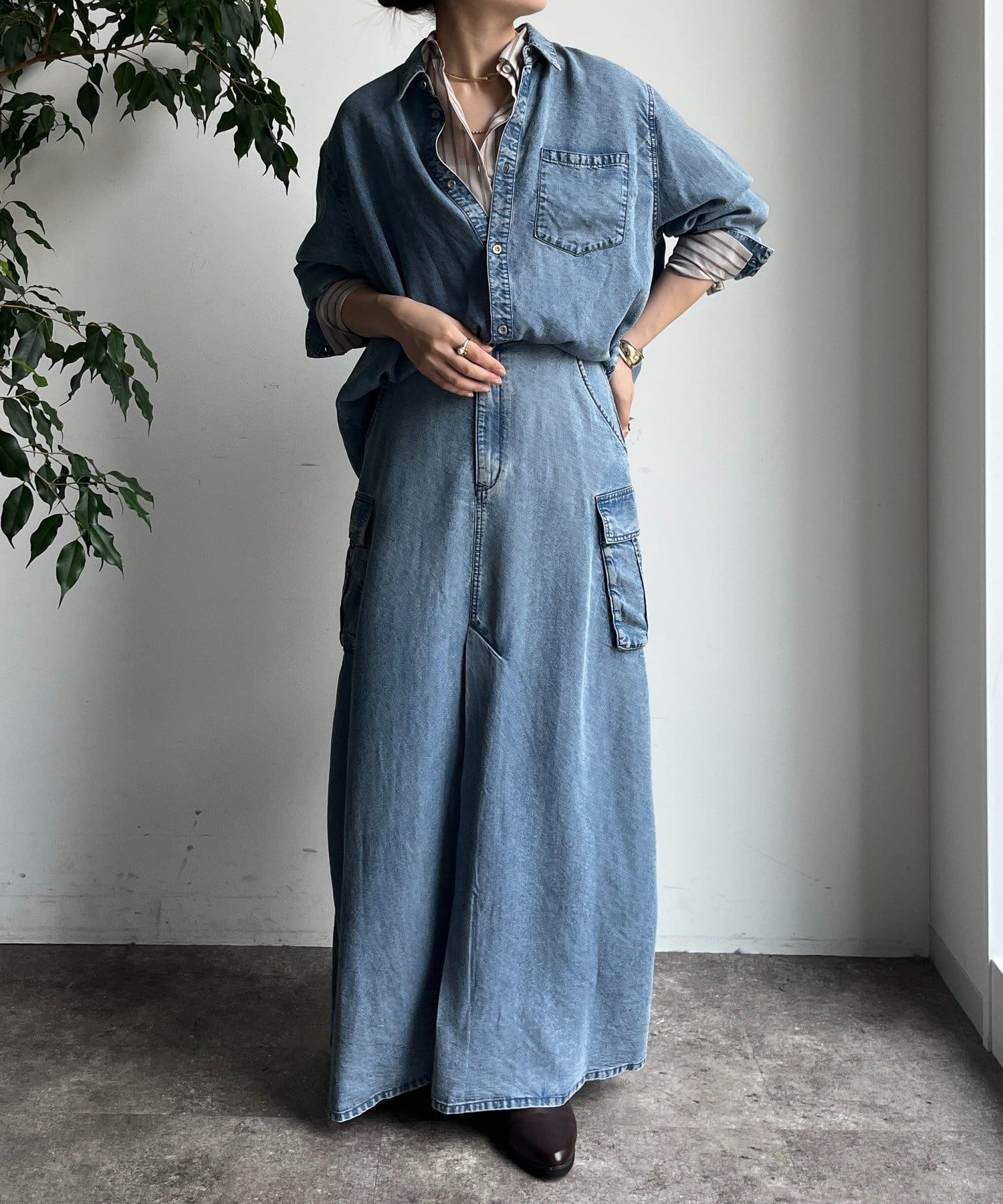 同素材の DDZ1052101A0011 / リヨセルデニムカーゴスカート とセットアップでの着用がおすすめですよ。