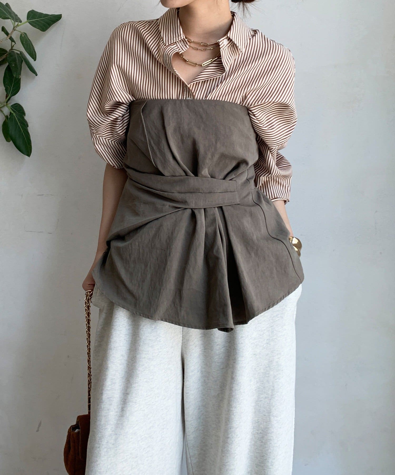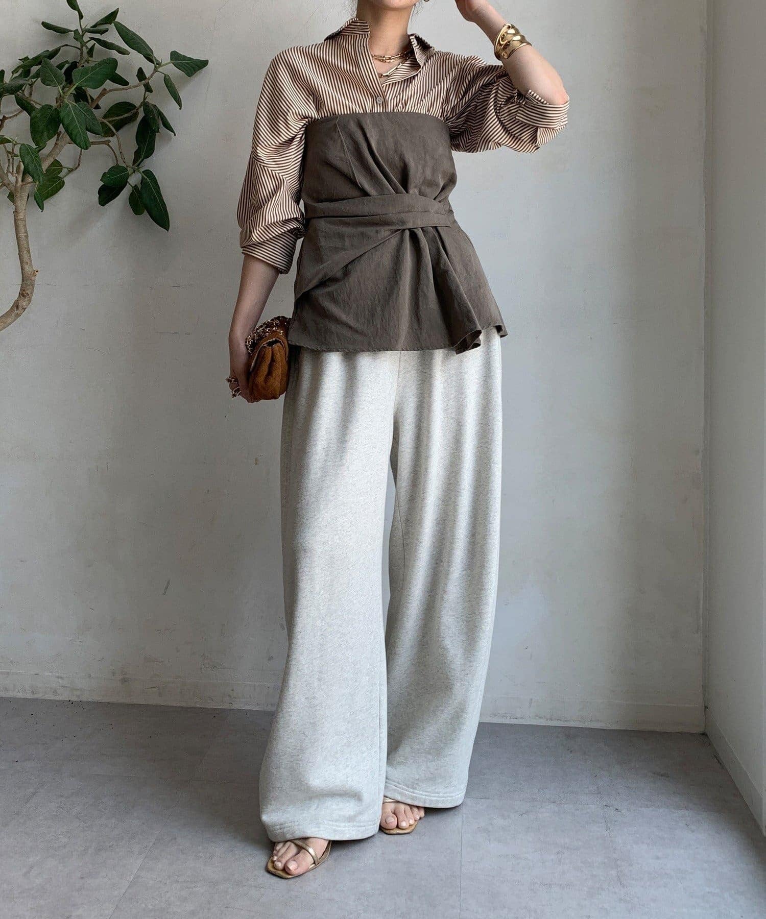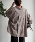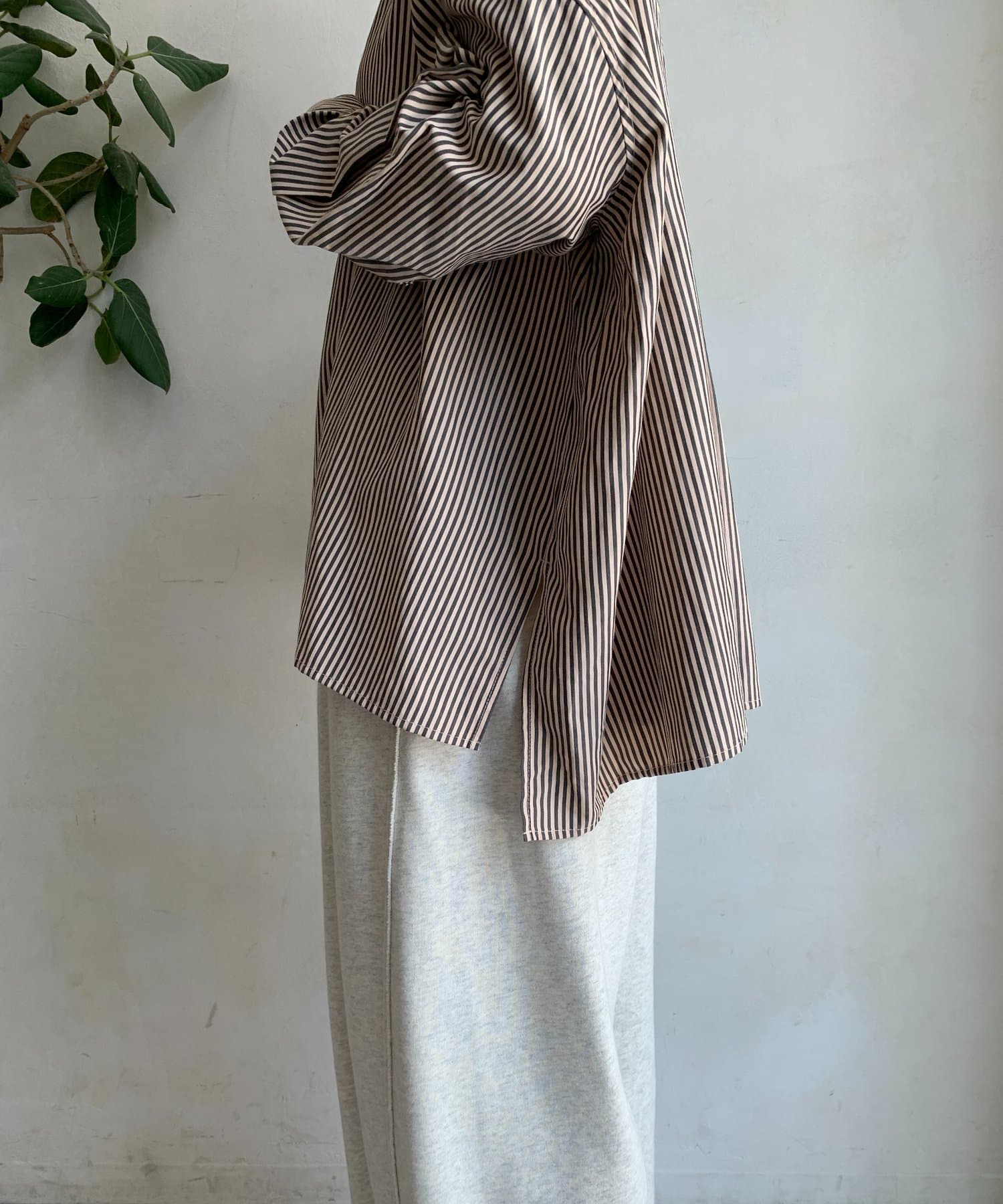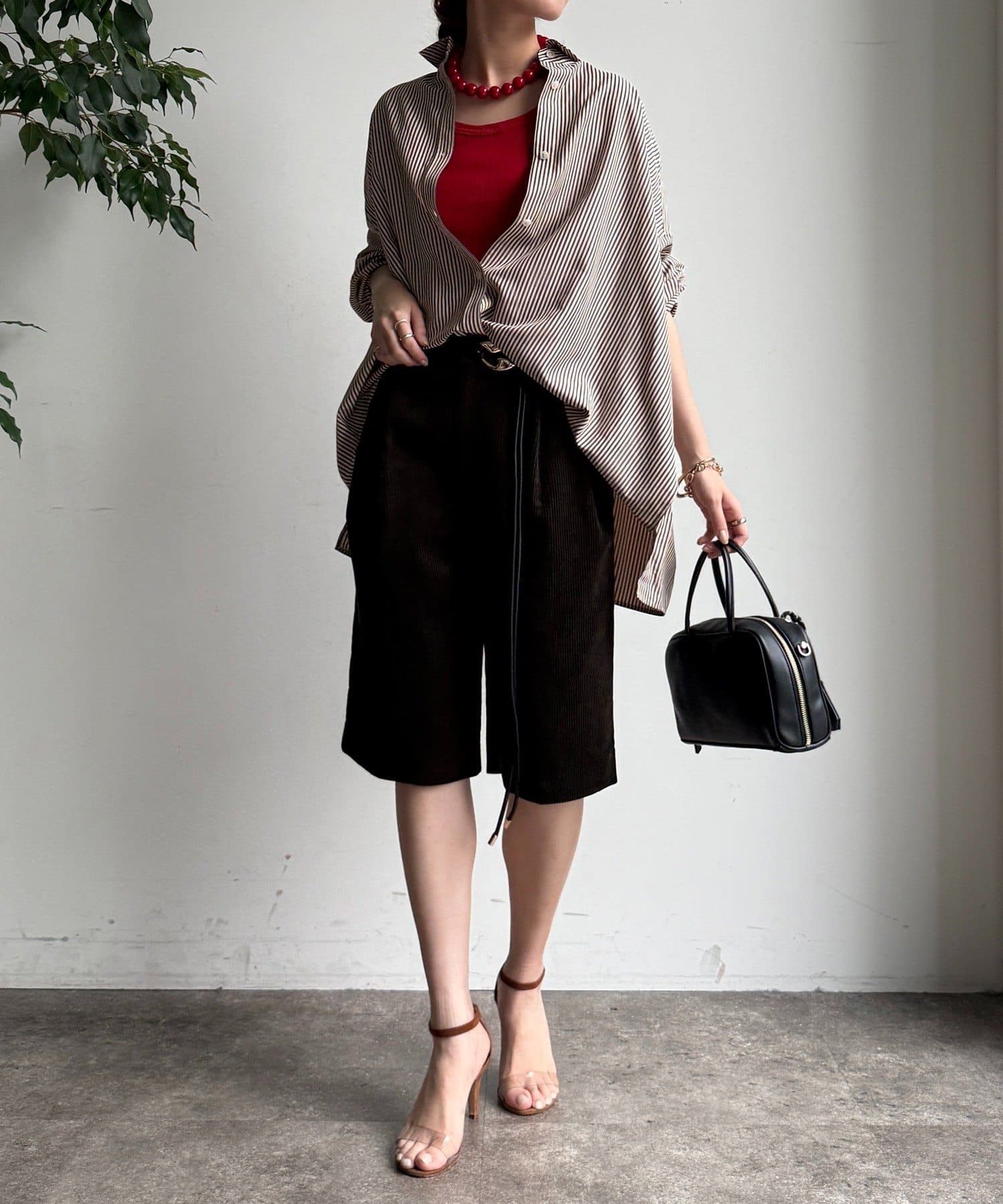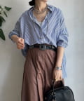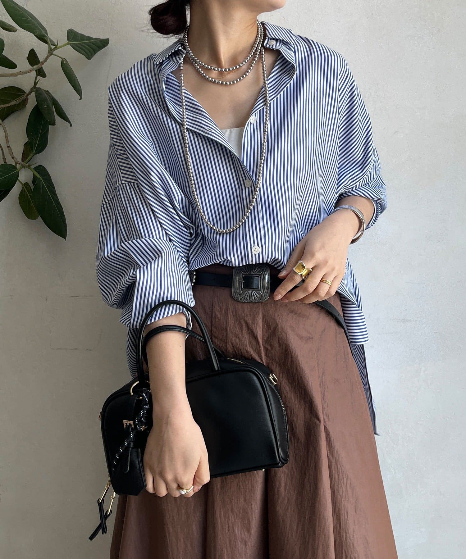 コーディネートに取り込みやすい細ストライプ柄がポイントとなってくれるシャツ。