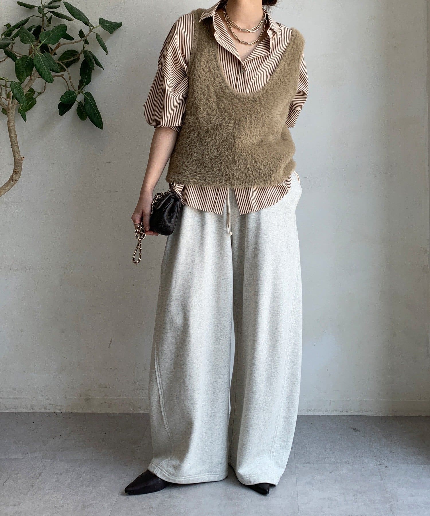 そして、ストライプのカラーリングにも注目。秋冬のスタイルに馴染む、大人カラーでスタイリングを上品にワンランクアップしてくれますよ。